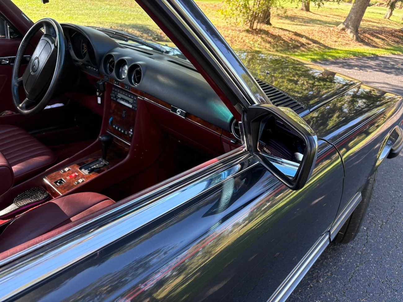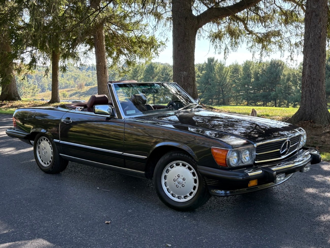 This 1986 Mercedes-Benz 560SL shows Pennsylvania registration history since 1993 and was reportedly sold new in Pennsylvania. Finished in Black Pearl Metallic (199) over Medium Red Leather (277), this SL is powered by a 5.5-liter M117 V8 and paired with a four-speed automatic transmission driving the rear wheels. Equipment includes a removable paint-matched hardtop, R134-converted air conditioning with automatic climate control, cruise control, an updated digital head unit, OEM red velour floor mats and 15” Gullideckel wheels. The SL has reportedly been well-maintained and kept but service records have been misplaced. This 560SL is being offered for sale in Coraopolis, Pennsylvania with 39k miles, manufacturer’s literature, two factory keys, an included Carfax report and a clean Pennsylvania title.