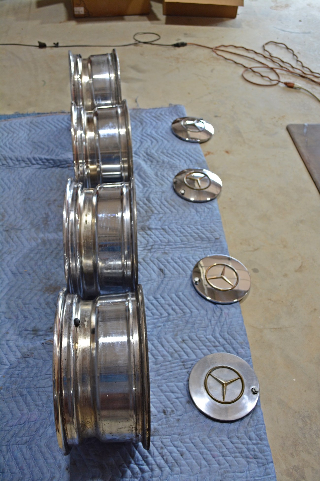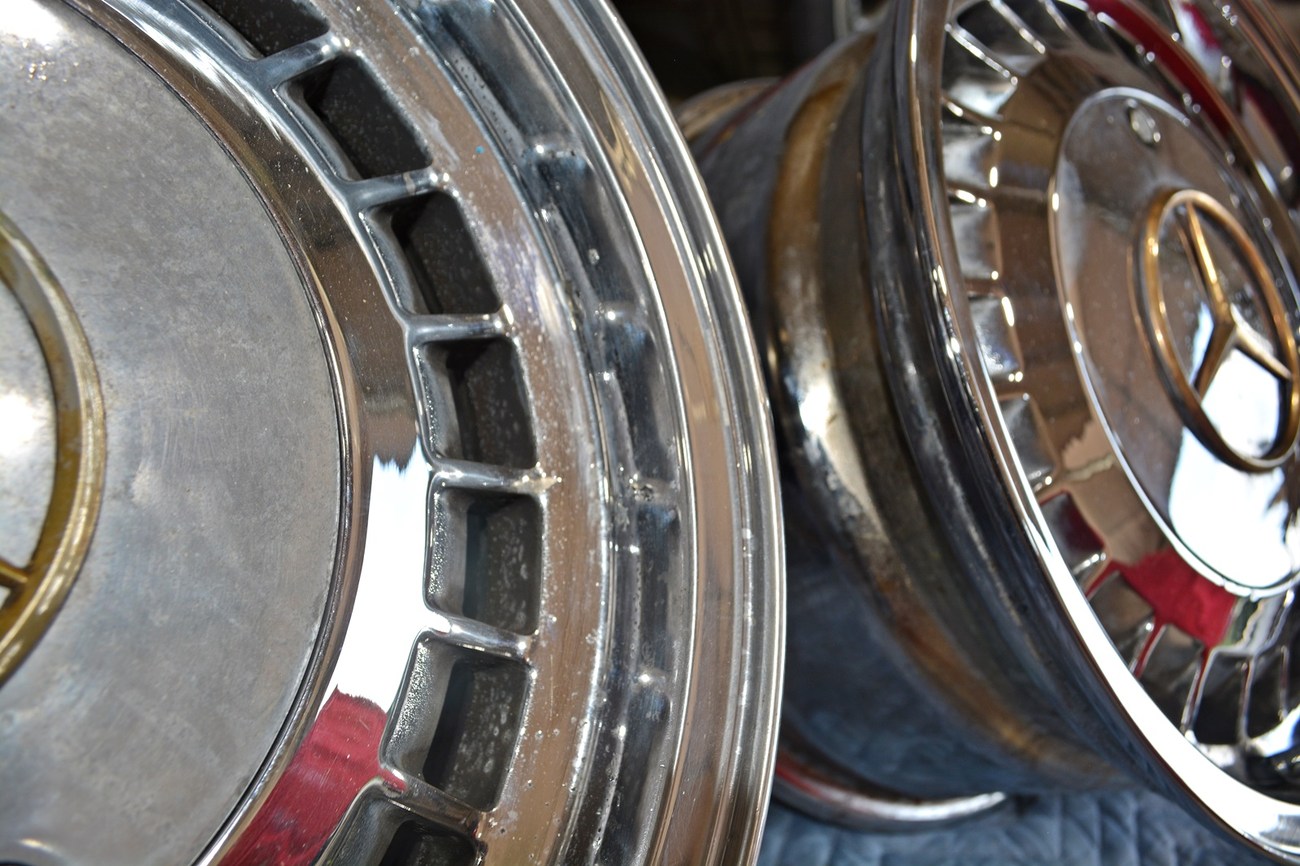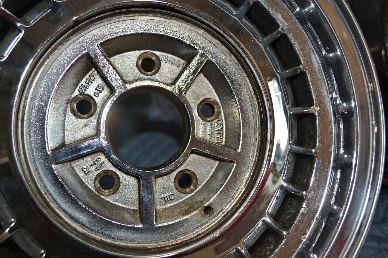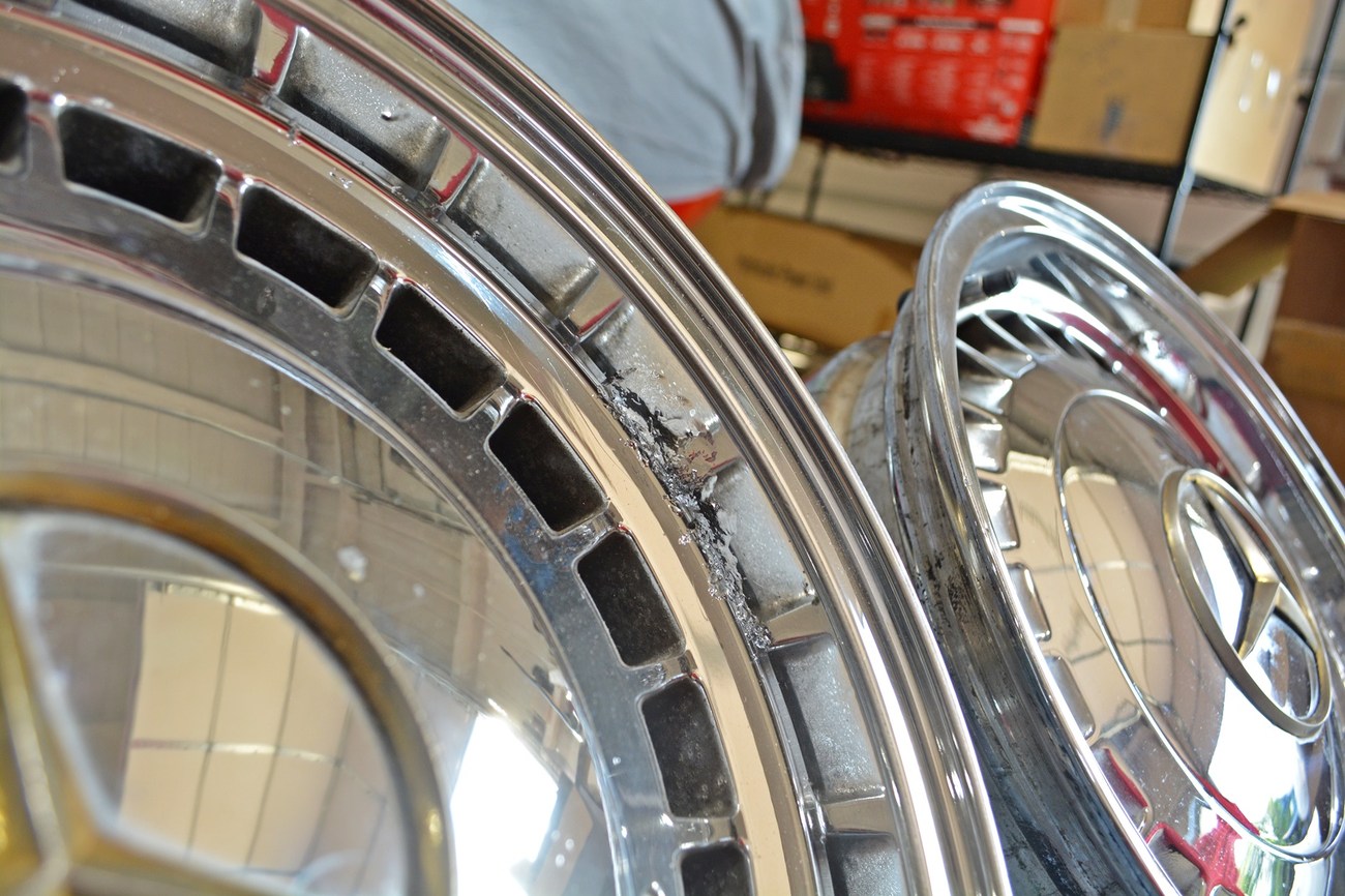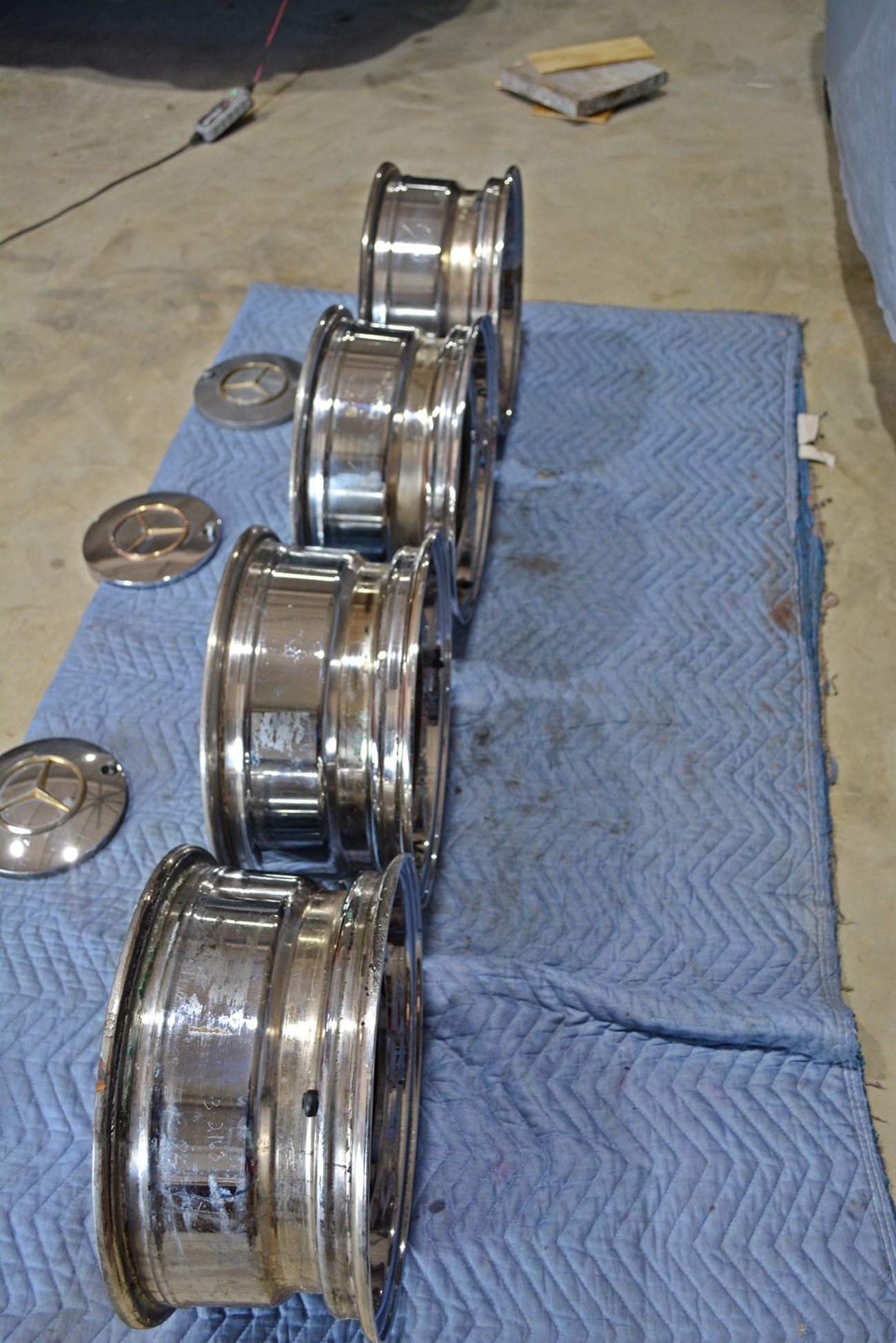 These authentic Centra wheels are commonly found on various classic Mercedes-Benz models including the W126, C126, W116 and R107. The faces are finished in their original chrome. Some wear and pitting can be seen on each of the wheels. The center caps are included and feature the Mercedes-Benz star centered on each. Up close photos of each face are provided in the gallery detailing condition.