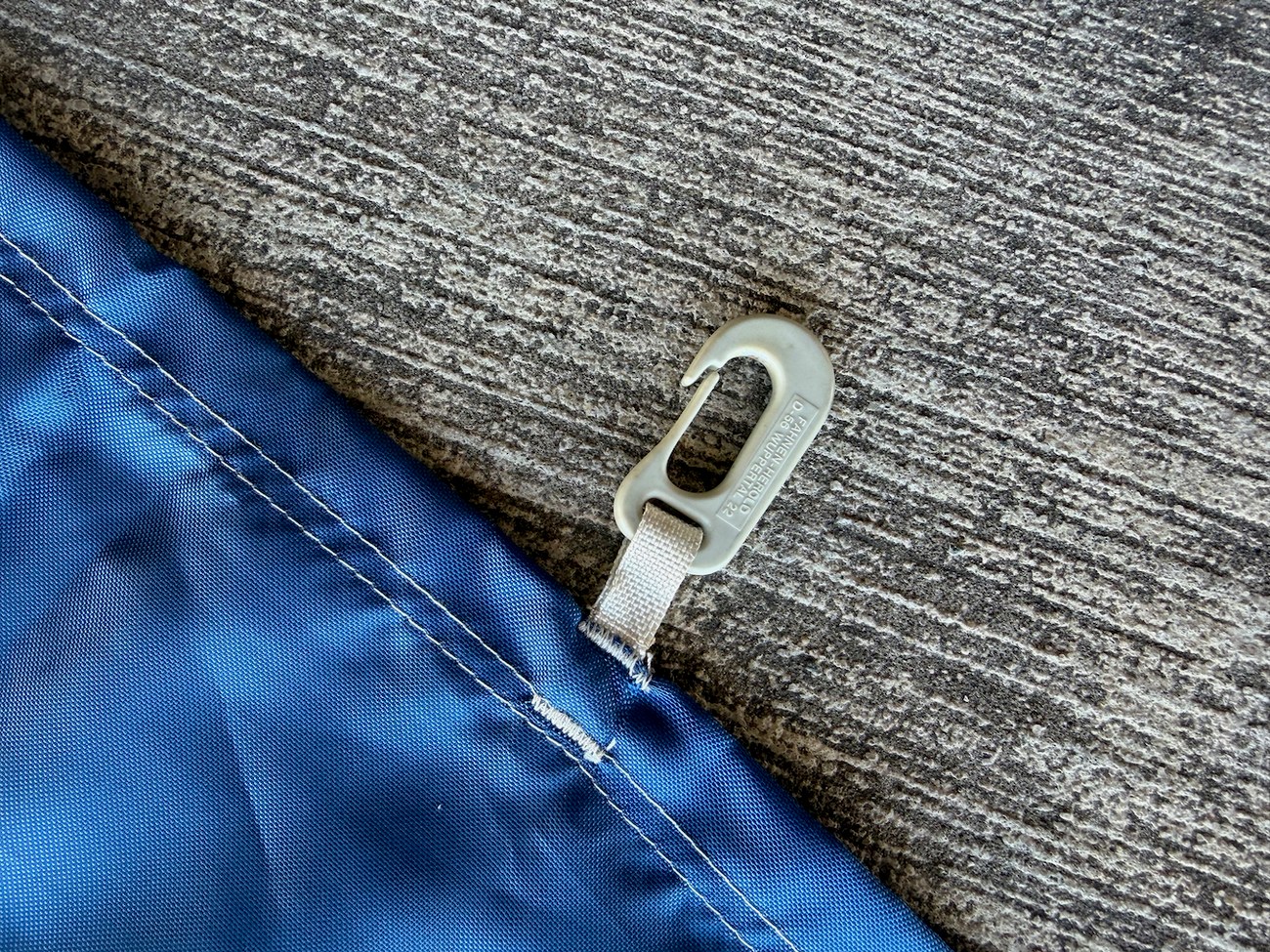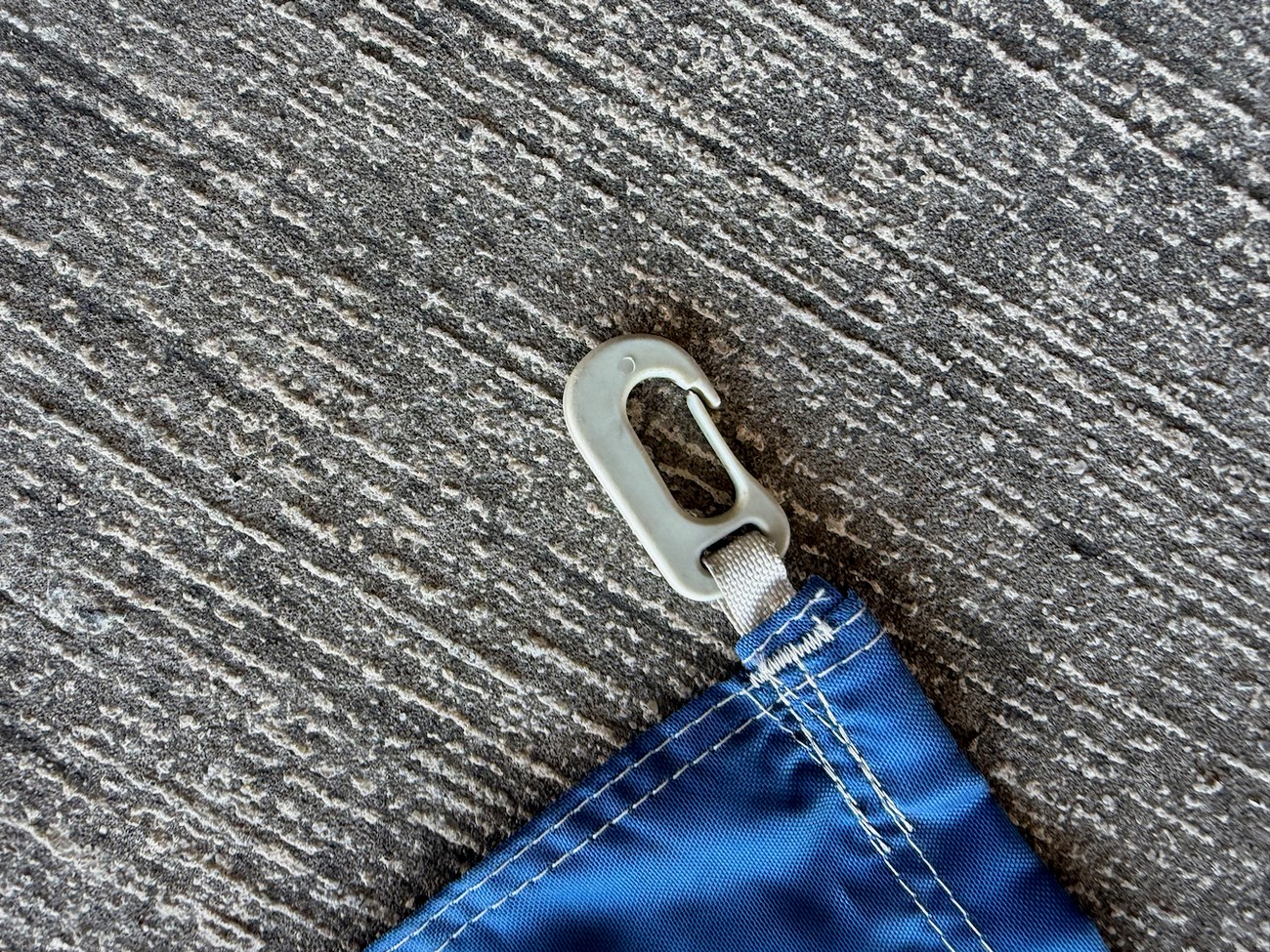 The sign measures 14.5 feet tall and 3.5 feet wide with 5 clips attached along one side for hanging. The 80's era Mercedes-Benz logo is seen on both sides atop a blue background. Minor markings are shown from normal wear and pictures of both sides are provided in the gallery.