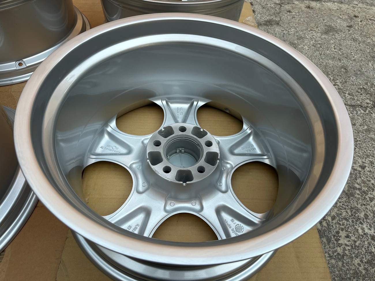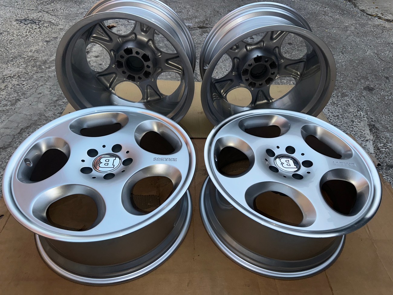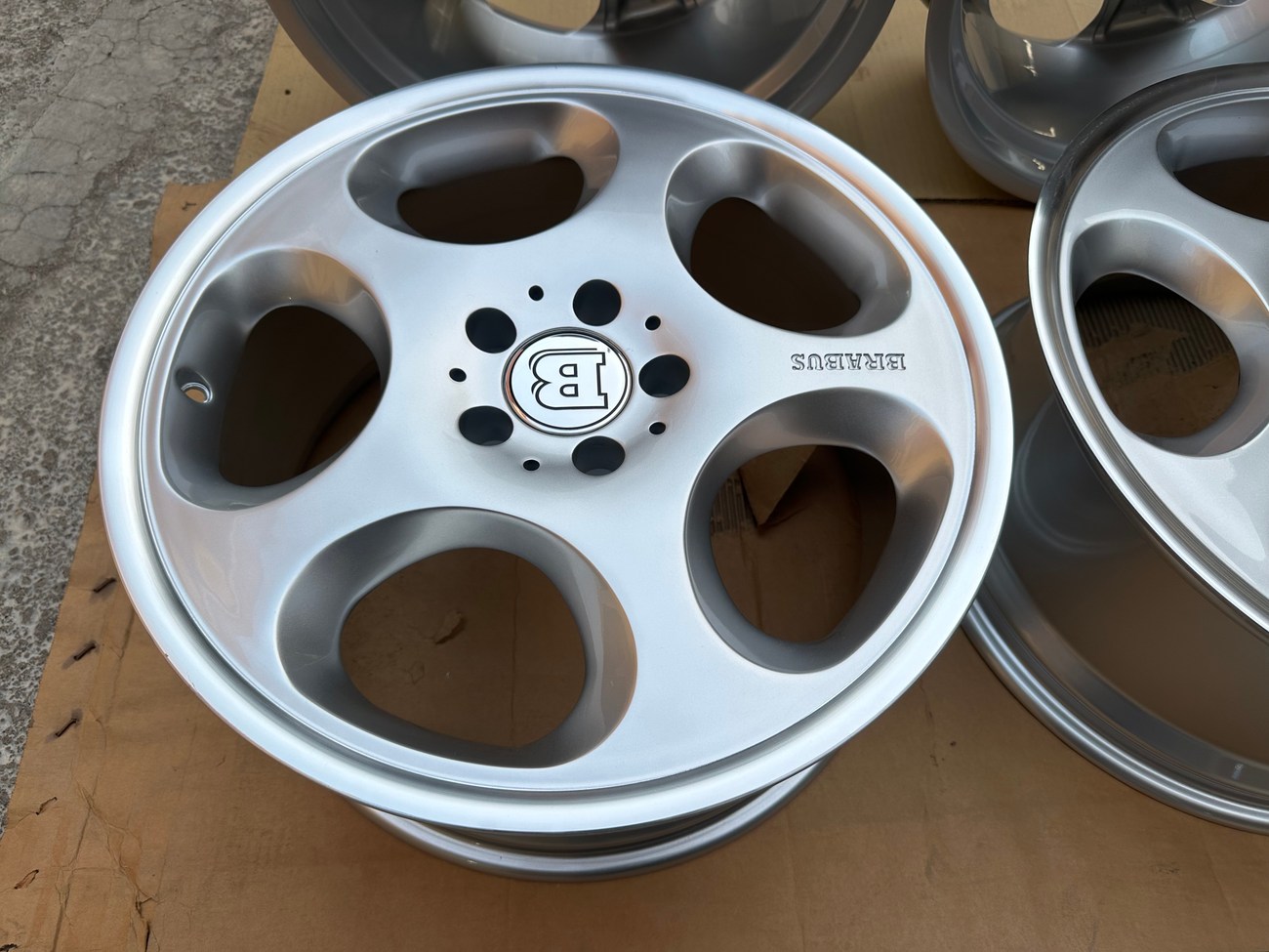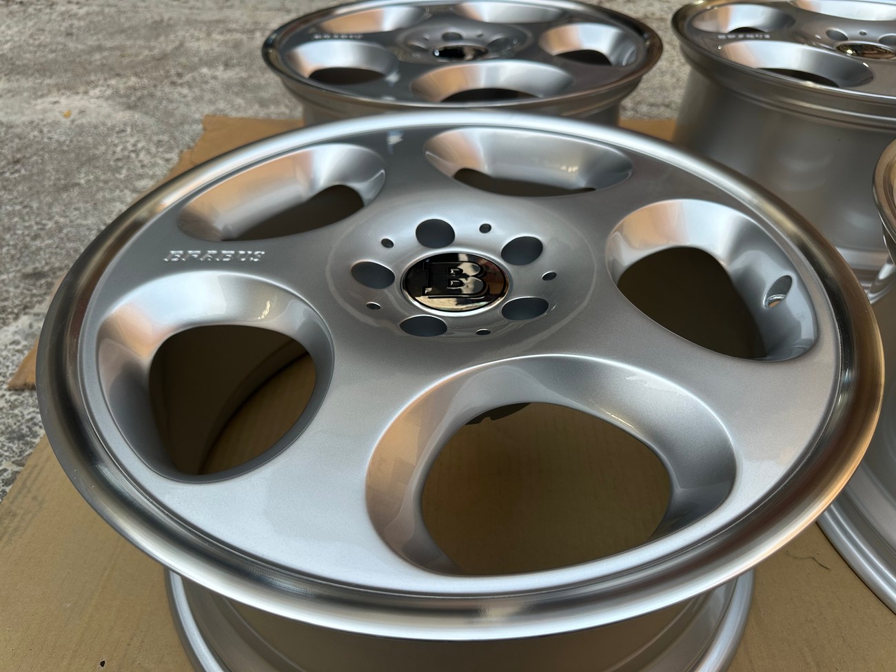These 18″ BRABUS Monoblock IV wheels measure 8.5" all around and were manufactured in Germany for use on Mercedes-Benz vehicles. The faces feature silver painted face and polished lips. BRABUS stamps can be seen on the front and back along of each wheel with dimensions, offsets, and other manufacturer casting marks. The wheels are made by RONAL in Germany and four authentic BRABUS center caps are included. Each wheel has been professionally refinished in preparation for the sale. These BRABUS wheels are now offered by the seller in Beirut, Lebanon with worlwide shipping options available.