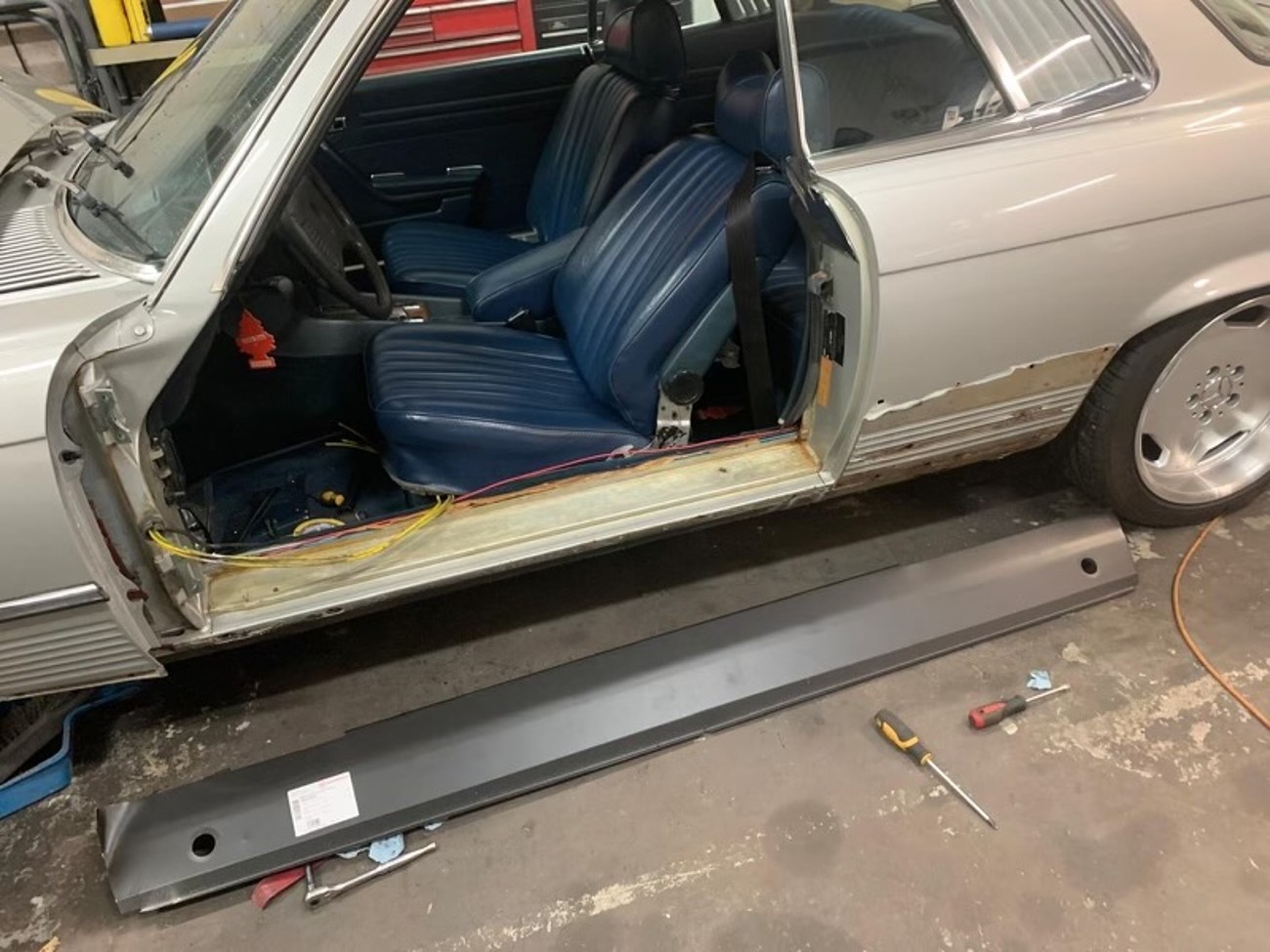 @Kfossum im gonna have to steal that one, never heard them referred to as diving board bumpers i love it, haha. That’s a perfect way to explain them, I have a 72 240z as well and those come factory with thin metal bumpers just like the euro bumpers. But when you look at the later model s30 like the 280z it’s the same body but they added the big diving board bumpers for safety and it just kills the aesthetic on them.@Davidzetro yeah you’ve done very well putting this together. It’s absolutely beautiful looking through the rest of the pictures. I will tell you that the diving board bumpers are not as hard on the eyes as with other C107 color/wheel combinations - I think it might be the wheels that make it tolerable. Well put together!@Kfossum Thank you! And those were my plans exactly, euro bumpers an amg pre merger steering wheel/or nardi and head liner and the car would have been perfect in my eyes. The euro bumpers make such a dramatic difference, if she doesn’t sell euro bumpers, steering wheel and headliner are In Her near future with me. As regards to the cause the shop said it was my door seal that runs along the top of the door frame where the glass meets, that needed replacing and they see that being the cause a lot of times as they done multiple SL rockers and sill panels from that same problem. I never got around to changing the seal out as the car is always garaged it doesn’t sit outside. But it’s something I’d definitely change down the roadThis is a really nice looking car, with a set of euro bumpers this will be absolutely beautiful - the way it was meant to look. With regards to the rocker work, one of the root causes for rust in front of the rear wheel arch is the opera windows leaking water. Hopefully the shop that did the work confirm that no further water is coming in through there and that the floor under the reat seat is whole. It’s pretty easy to see if the two glass panels have separated from the plastic center sandwich section - a simple tap test will reveal whether the glass pane is rattling or not. And believe it or not, Mercedes sort of planned for moisture in there as the center sandwich section contains a compartment filled with desiccant! Edit: the open cell foam panels underneath the back seat carpet on this one do look nice and hole, usually when they take on moisture, they will expand and crack.@CraigSu Thank you! And yes definitely, I just emailed the restoration shop To send me the invoice in a pdf format so I can save the image and post it here. The metal work was 2000 dollars.Beautiful example! Can you post receipts for the rocker panel work?Welcome to the auction, I’m the owner of this beautiful SLC. This car is an absolute pleasure to drive and gets thumbs up without fail anytime I take her out she’s being daily driven lately without any hiccups. Any questions feel free to ask! Happy bidding and good luck to every one