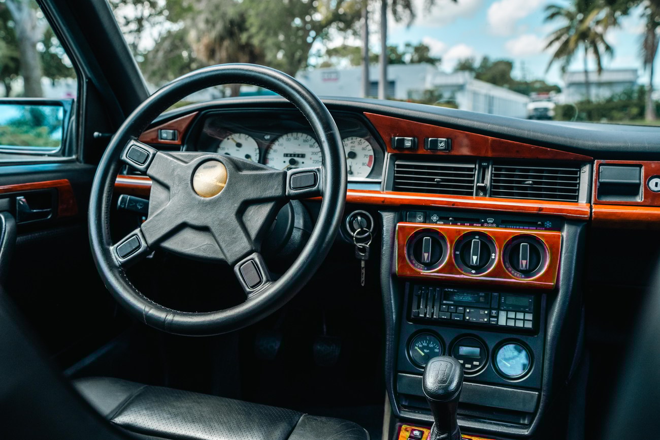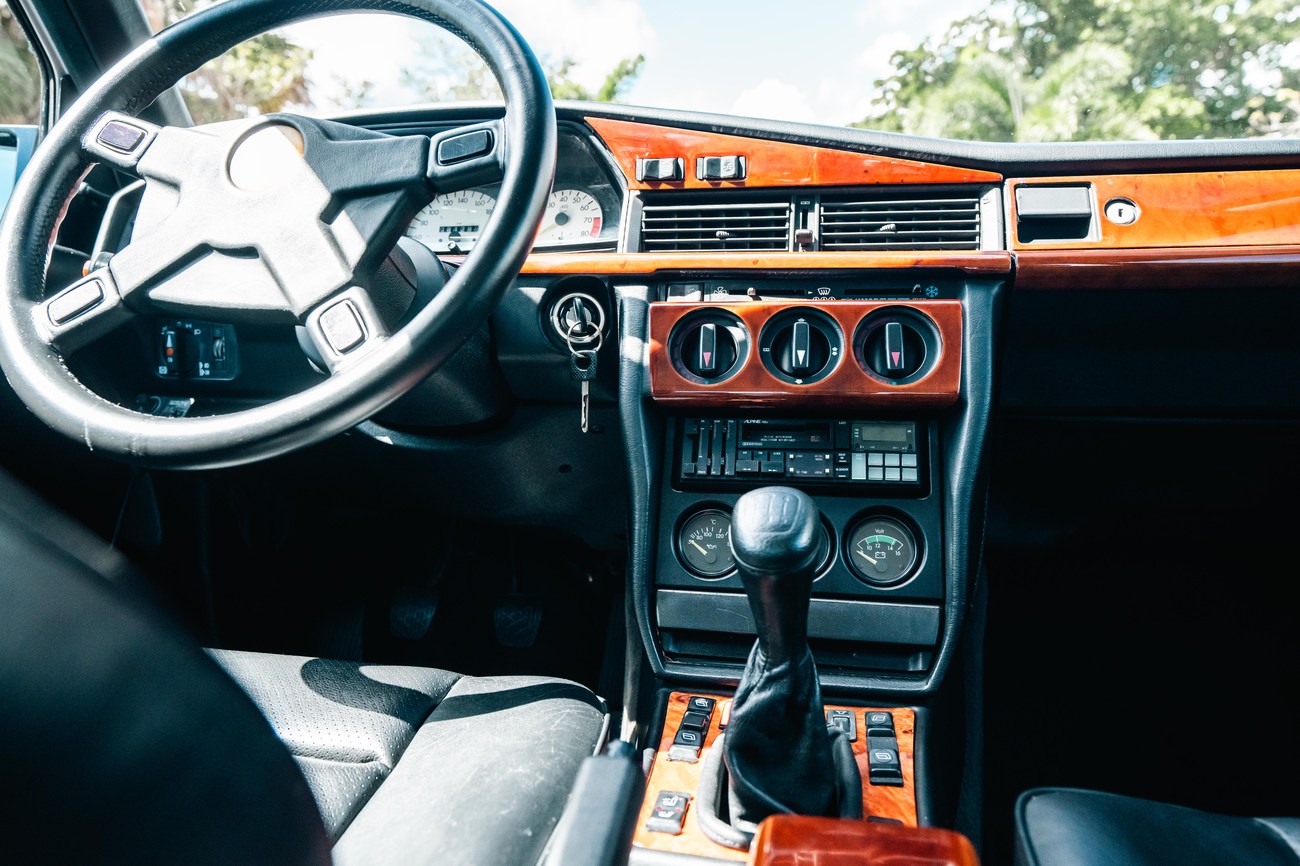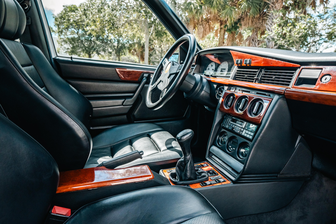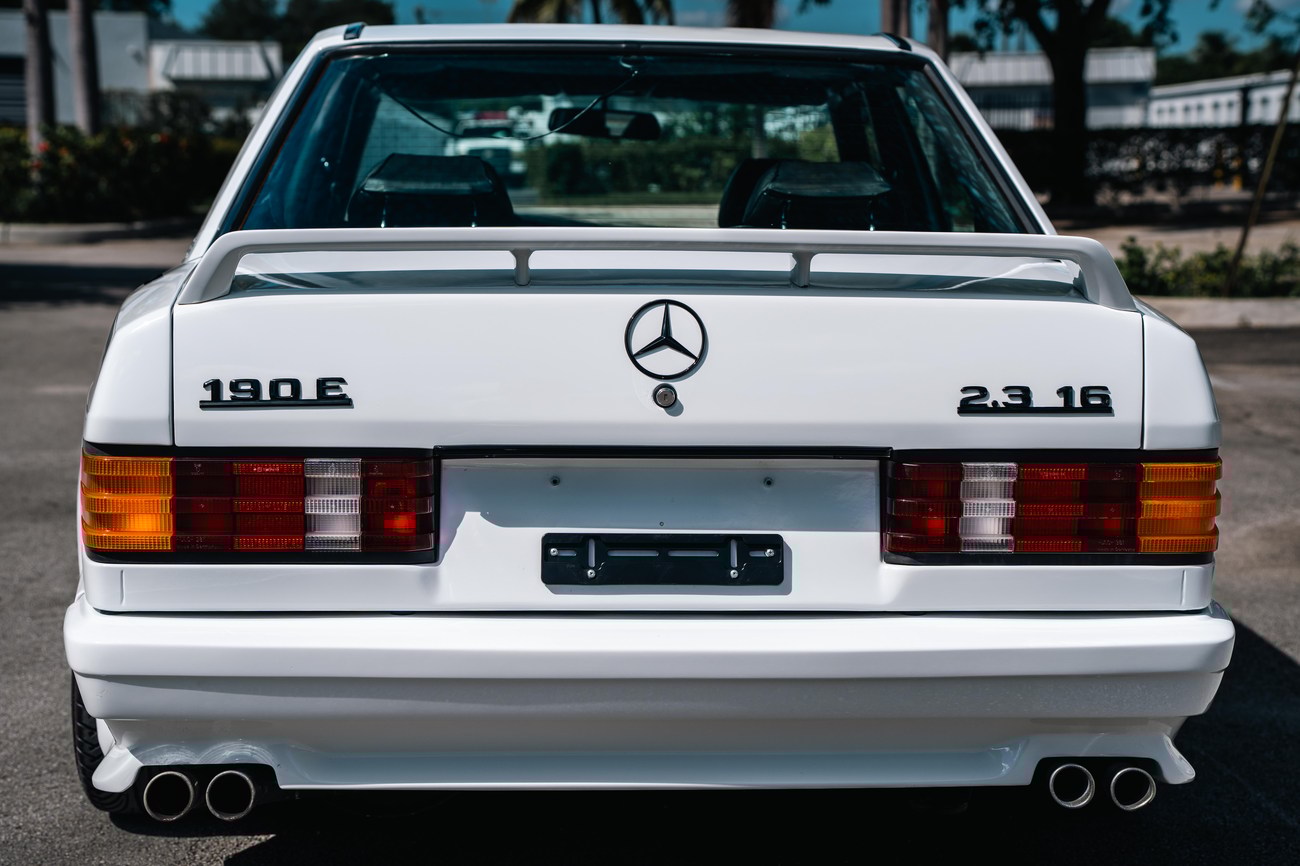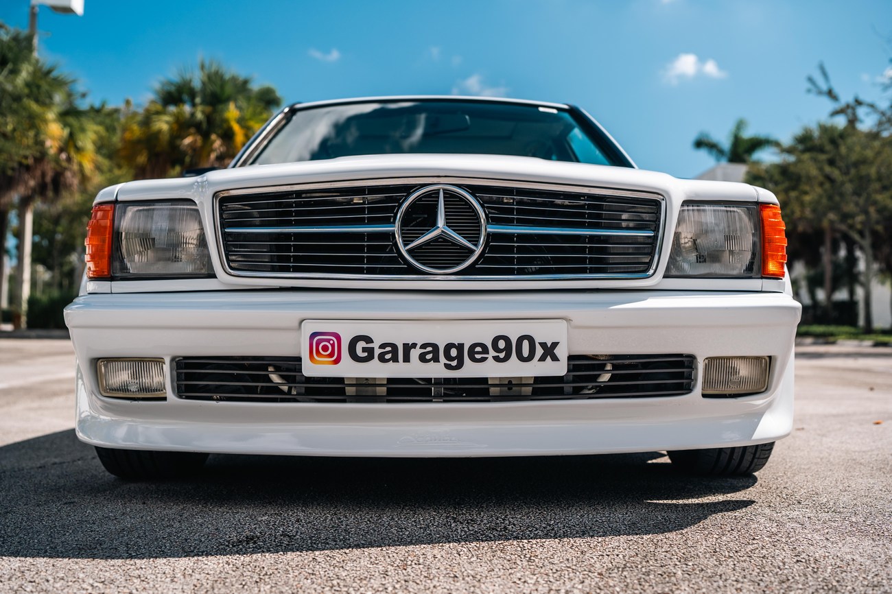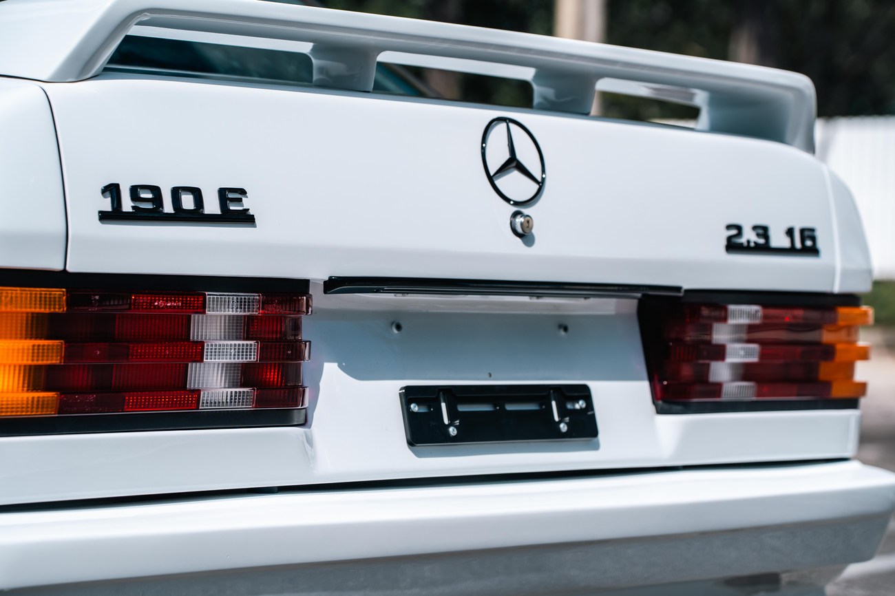 This 1985 Mercedes-Benz 190E 2.3-16v Cosworth was modified by Shulz Tuning in period and imported from Europe in 2023. Finished in Classic White (737) over Anthracite Leather (271), power is provided by a Cosworth-developed 2.3L 16v M102 I4 engine mated to a 5-speed manual transmission. Shulz was known for their coachwork widebody with flared fenders molded seamlessly into the bumpers and skirts, along with C126 SEC front end conversions. Other features include Rial mesh wheels with KBA part numbers, quad exhaust outlets, an Alpine stereo system, custom ATIWE steering wheel, Schulz Tuning speedometer, factory Recaro seats, additional woodgrain accents. An extensive service was performed in June 2025 totalling nearly $7k. Service included a new fuel filter and accumulator, oil service, brake fluid flush, brake master cylinder, shifter linkage bushings, A/C compressor w/clutch, receiver drier, expansion valve, blower motor, pressure switch, EHA actuator, clutch master cylinder, and heater control valve. This Cosworth 190E Schulz shows just over 81k kilometers (~50k miles) and is now offered out of the seller's private collection in Florida with Shulz Tuning catalog and a Florida title.
