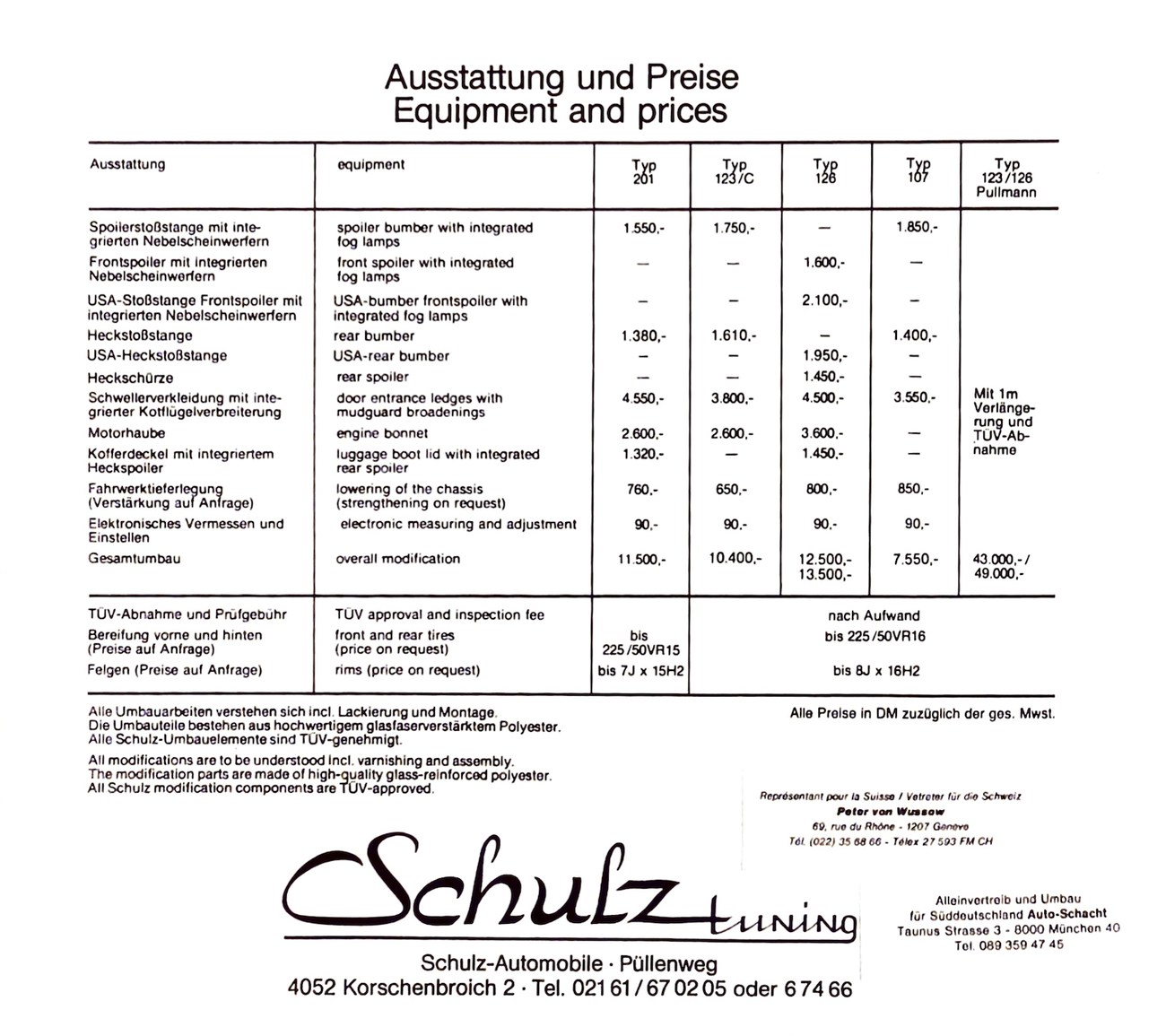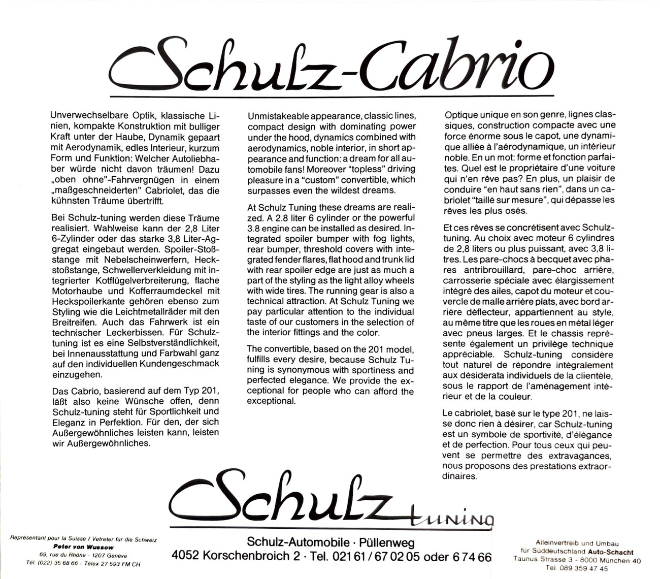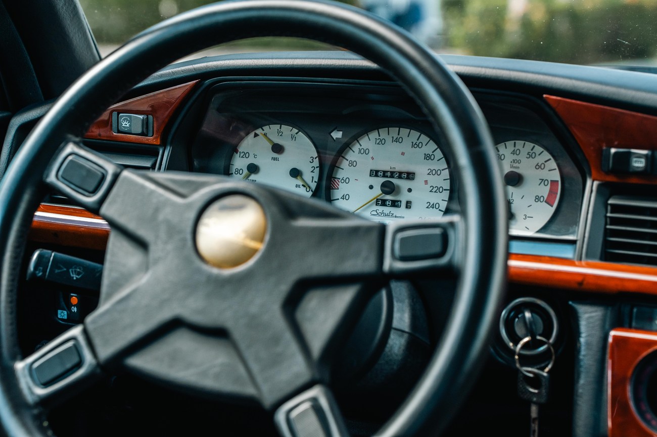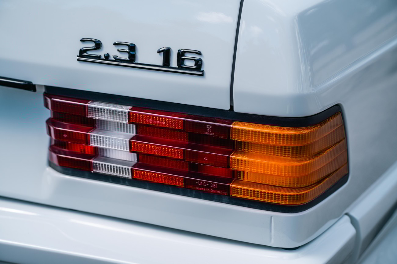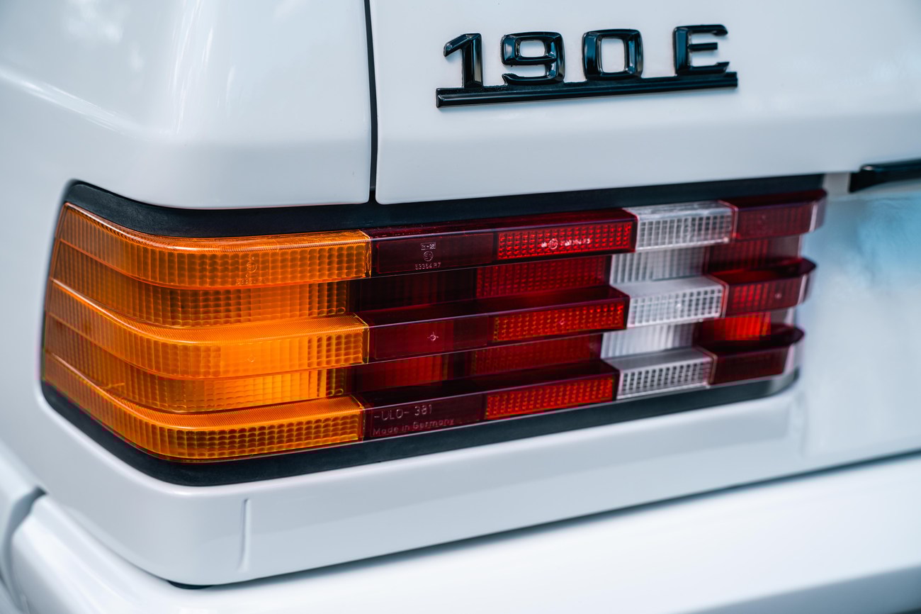 This 1985 Mercedes-Benz 190E 2.3-16v Cosworth was modified by Shulz Tuning in period and imported from Europe in 2023. Finished in Classic White (737) over Anthracite Leather (271), power is provided by a Cosworth-developed 2.3L 16v M102 I4 engine mated to a 5-speed manual transmission. Shulz was known for their coachwork widebody with flared fenders molded seamlessly into the bumpers and skirts, along with C126 SEC front end conversions. Other features include Rial mesh wheels with KBA part numbers, quad exhaust outlets, an Alpine stereo system, custom ATIWE steering wheel, Schulz Tuning speedometer, factory Recaro seats, additional woodgrain accents. An extensive service was performed in June 2025 totalling nearly $7k. Service included a new fuel filter and accumulator, oil service, brake fluid flush, brake master cylinder, shifter linkage bushings, A/C compressor w/clutch, receiver drier, expansion valve, blower motor, pressure switch, EHA actuator, clutch master cylinder, and heater control valve. This Cosworth 190E Schulz shows just over 81k kilometers (~50k miles) and is now offered out of the seller's private collection in Florida with Shulz Tuning catalog and a Florida title.