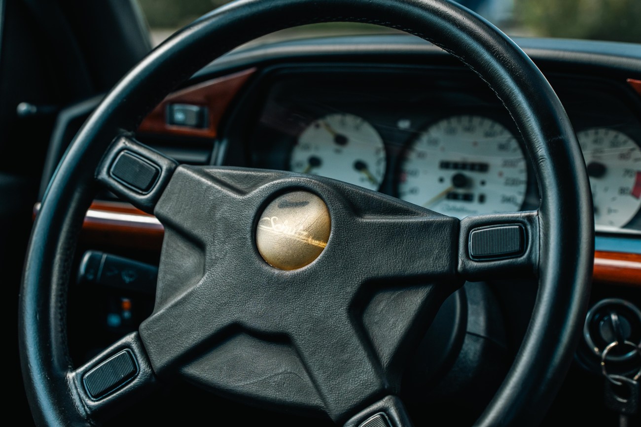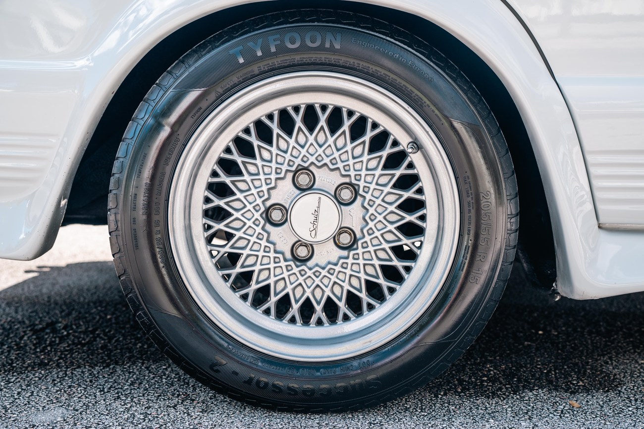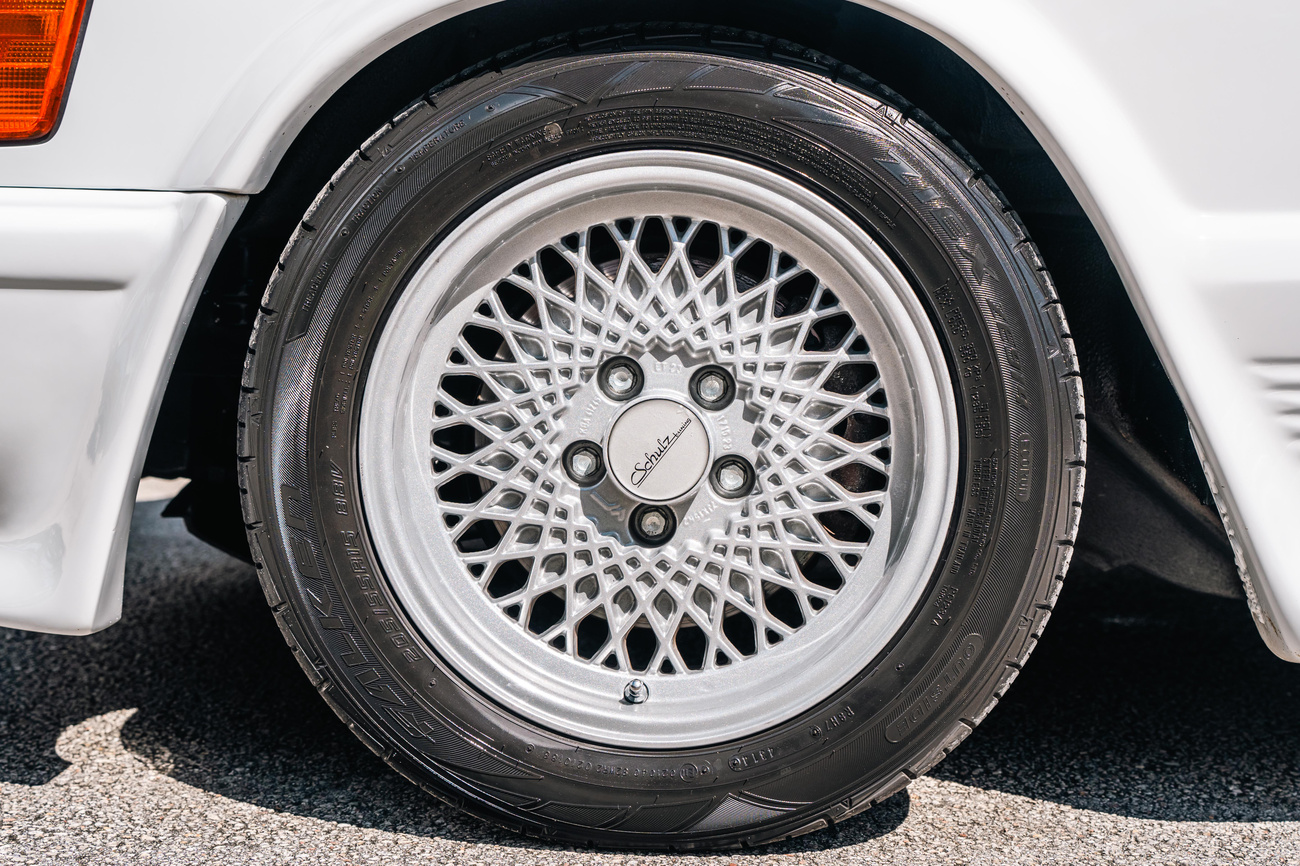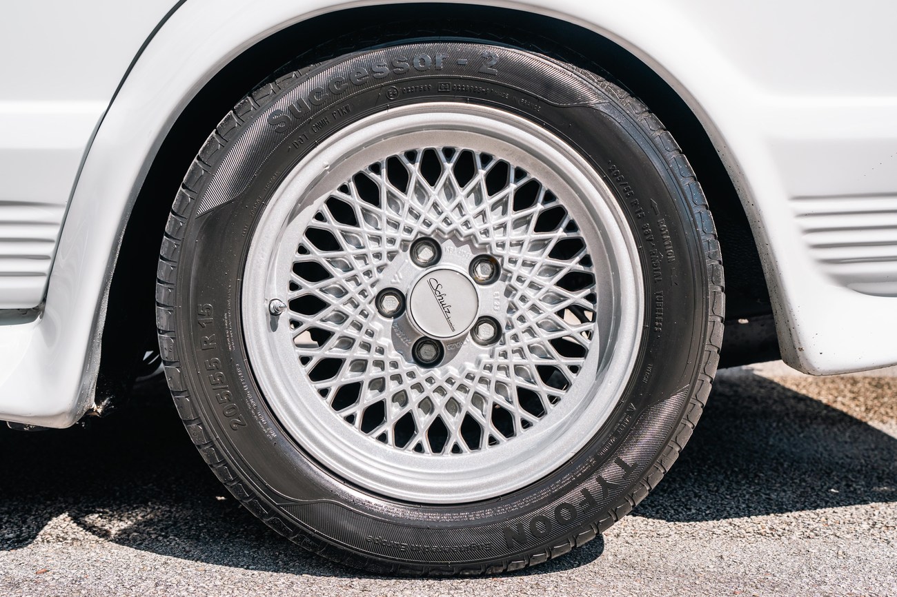 This unique example wears 15” BBS Rial mesh wheels with KBA part numbers which are TUV approved and original to the Shulz conversion. Falken Ziex tires are fitted measuring 205/55 with date codes 2014 on the front and 2010 on the rear. Shulz tuned the suspension which also slightly lowered the car from its factory ride height.