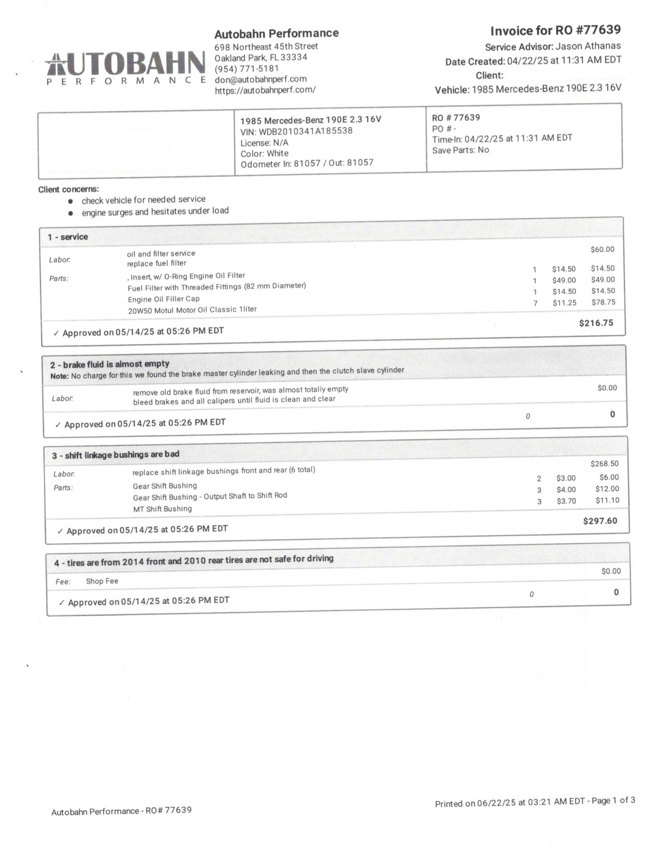 The 2.3-liter 16v M102 4-cylinder was developed in collaboration with Cosworth and power was rated at 194 horsepower and 173 lb-ft of torque when new. Power is sent to the rear wheels through a 5-speed manual transmission. The most recent service in preparation for the sale was completed in June 2025 and totalled nearly $7k. Receipts for the work will be included in the sale with services performed outlined below: