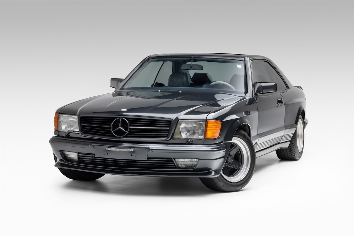 This 1985 Mercedes-Benz 500SEC 5.4 AMG Widebody was built at the Kassel Branch in Germany before it was modified by then-independent tuner AMG Germany. The car spent time in Europe, Japan, and New Zealand, before being imported to the United States in 2023. It was acquired by the current owner via The MB Market in 2022. This Widebody is 1 of 25 examples and finished in desirable Black Pearl Metallic (199) over Grey (278) leather and features an authentic Gen 1 AMG widebody kit including fenders, bumpers, skirts, body molding, and spoiler. Power comes from an AMG modified 5.4L M117 engine mated to a four-speed automatic transmission with LSD (Limited-Slip Differential). Equipment includes fog lights, a sunroof, an Alpine head unit, automatic climate control, power-adjustable heated front seats, and more. Fresh service records accompany the car from 2024 and include new spark plugs, a new air filter, new valve cover gaskets, a new fuel filter, and various general maintenance items. The odometer shows 91k kilometers (~56k miles). This AMG widebody is now offered for sale in Costa Mesa, California with ownership records, service records since 2008, 2 keys, the original tool roll, and a clean Montana title.