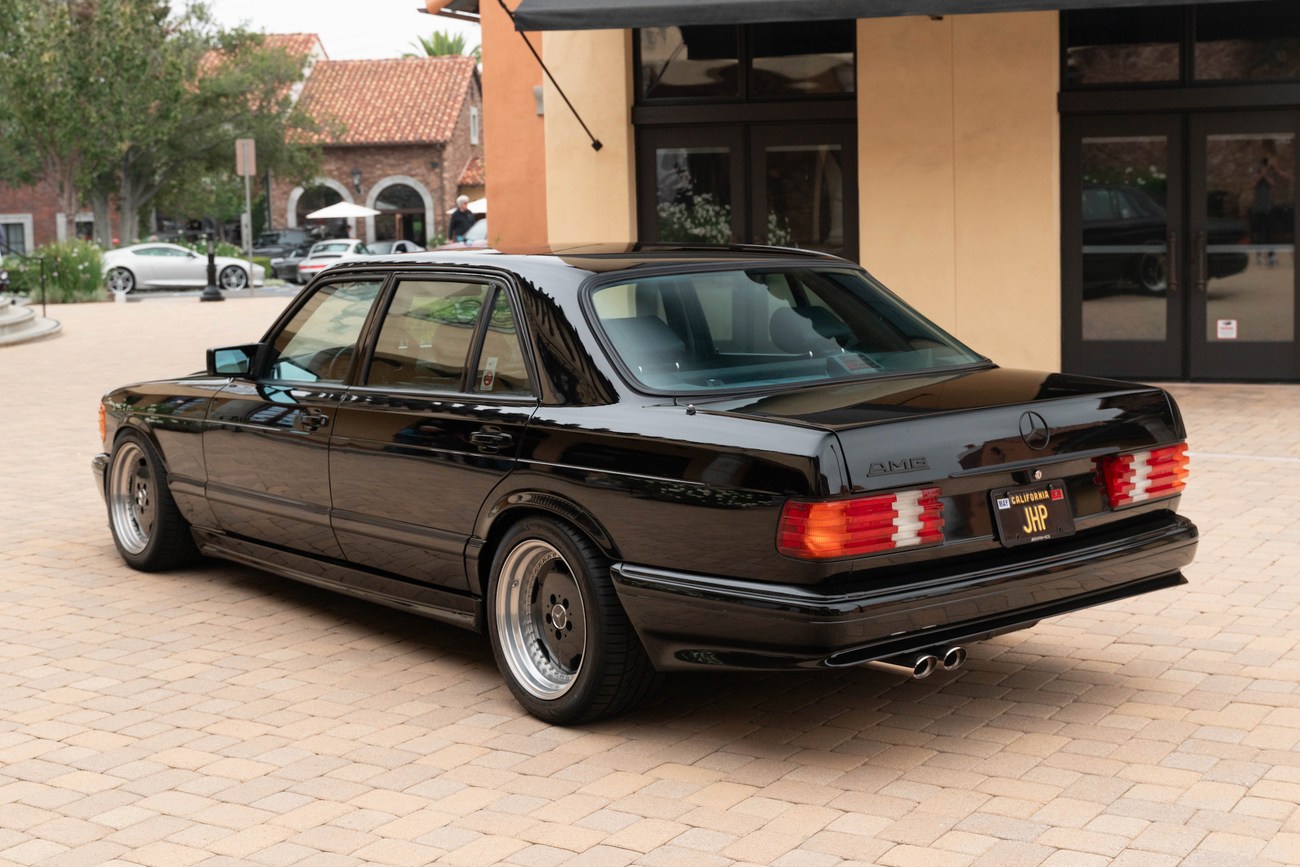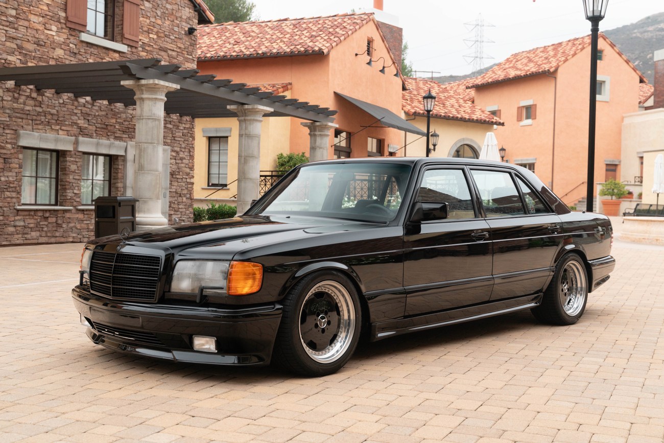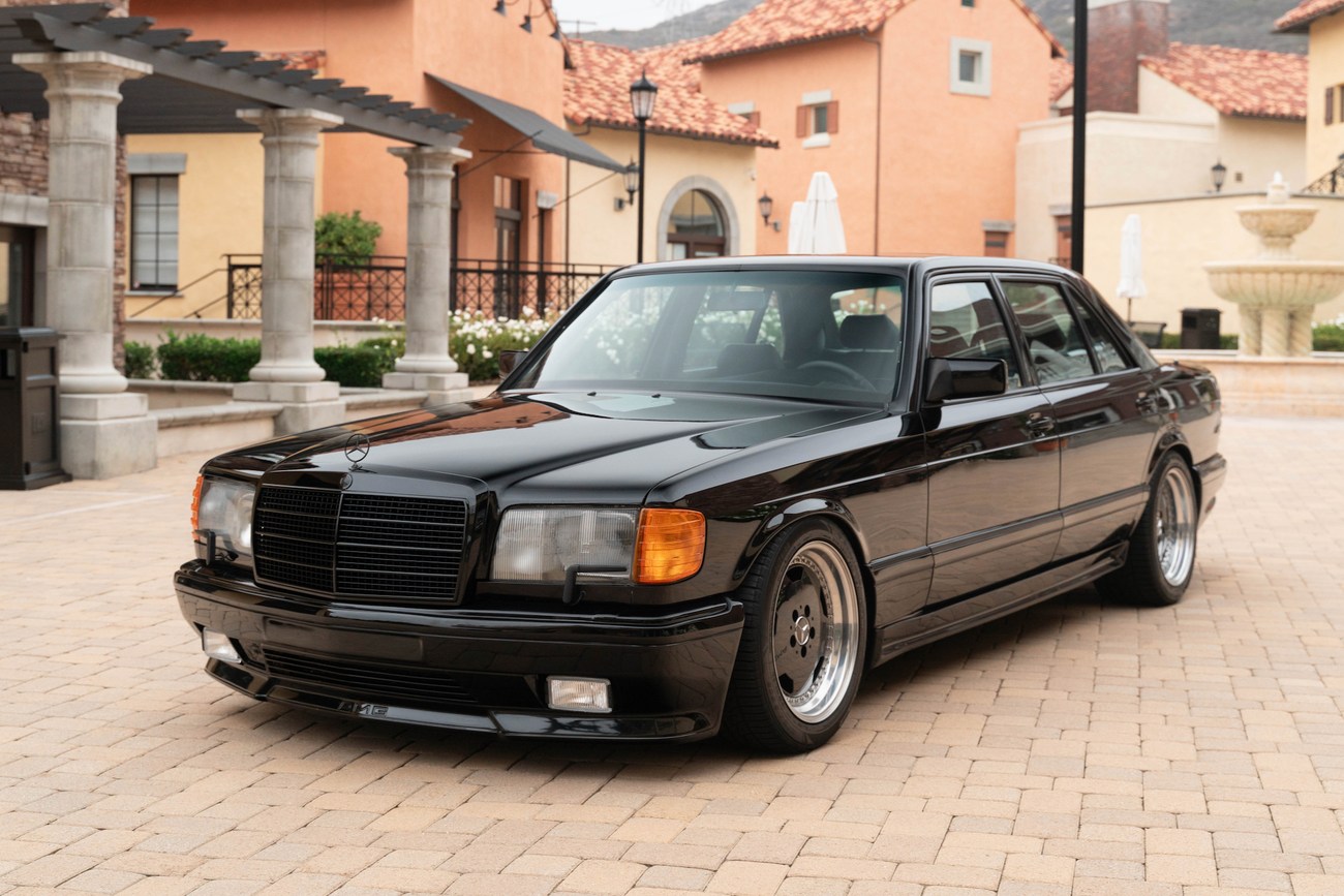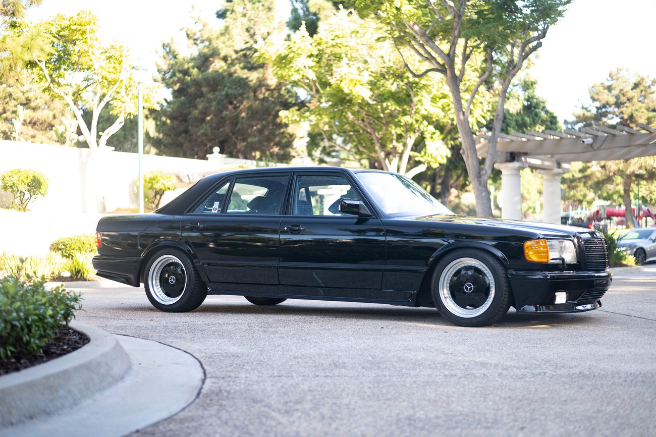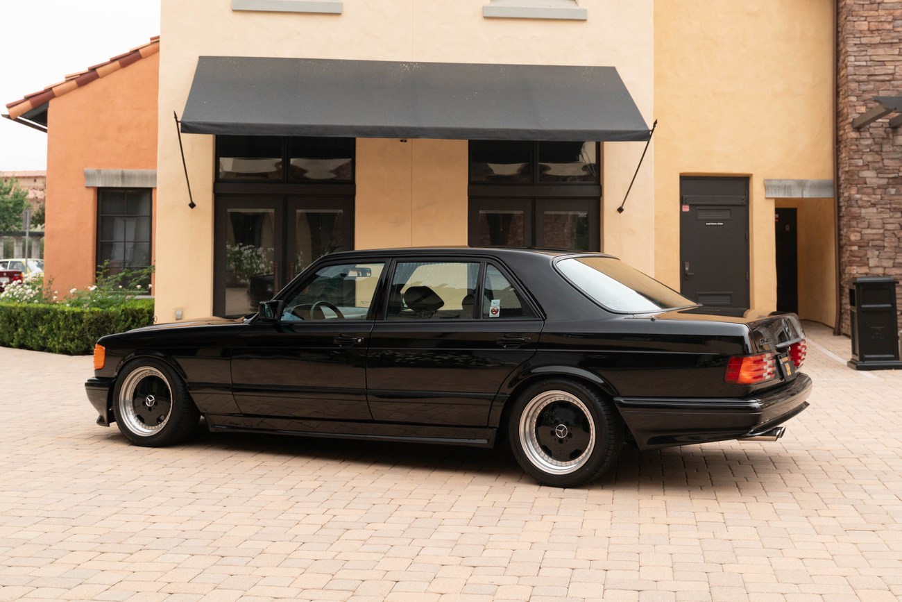 This 1987 Mercedes-Benz 560SEL has been a California car since new and shows only 44k miles on the odometer. Finished in Black (040) over Black leather (271), power is provided by a 5.5-liter M117 V8 paired with a four-speed automatic transmission. The car was converted to a European AMG spec in 2025. Equipment includes a full AMG-style body kit and AMG OZ Aero III-style wheels by CMS Motorsports, a sliding steel sunroof, burl wood trim, automatic climate control, heated front seats and rear bench, an AMG Atiwe steering wheel, Euro headlights, and rear passenger footrests. Service performed in the last year includes new spark plugs and wires, distributor cap and rotor, transmission service, brake fluid flush, hydraulic fluid flush, fuel pump, H&R springs, Bilstein shocks including rear self-leveling, drive belts, and more detailed below. This W126 is now offered by the seller with manufacturer’s books & literature, recent service records, one key, a clean Carfax report, and a clean California title.