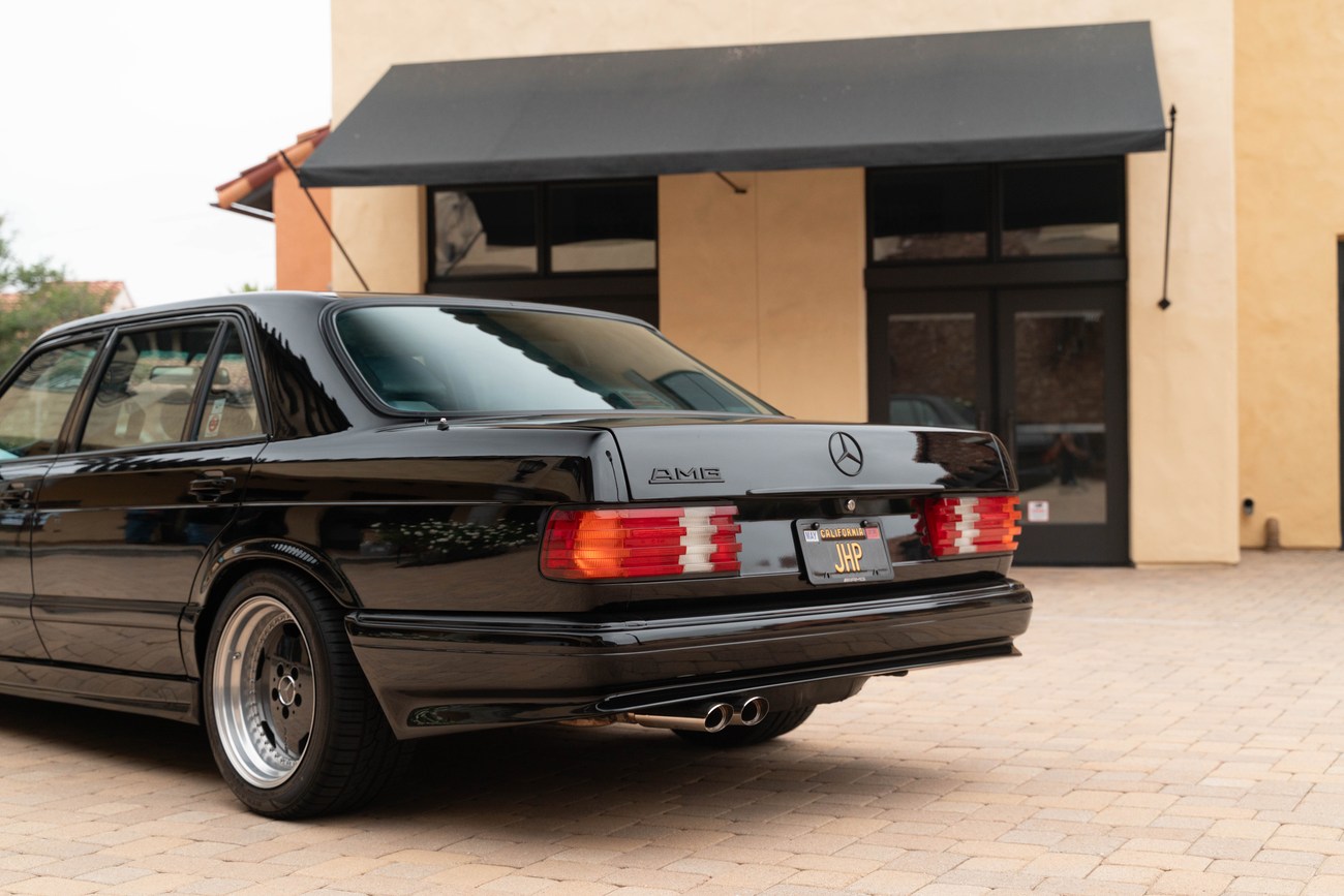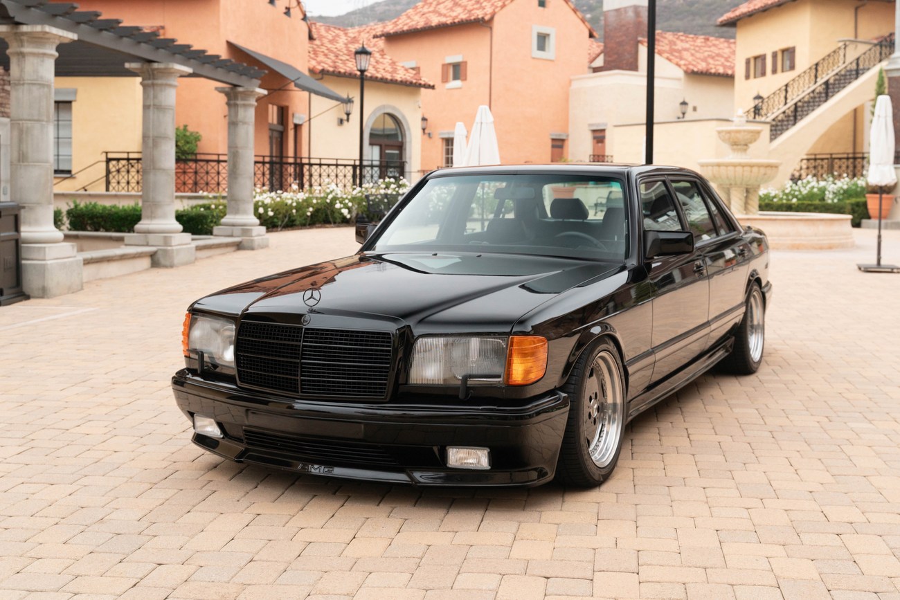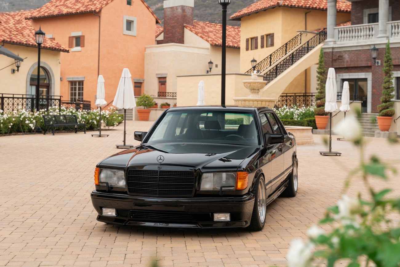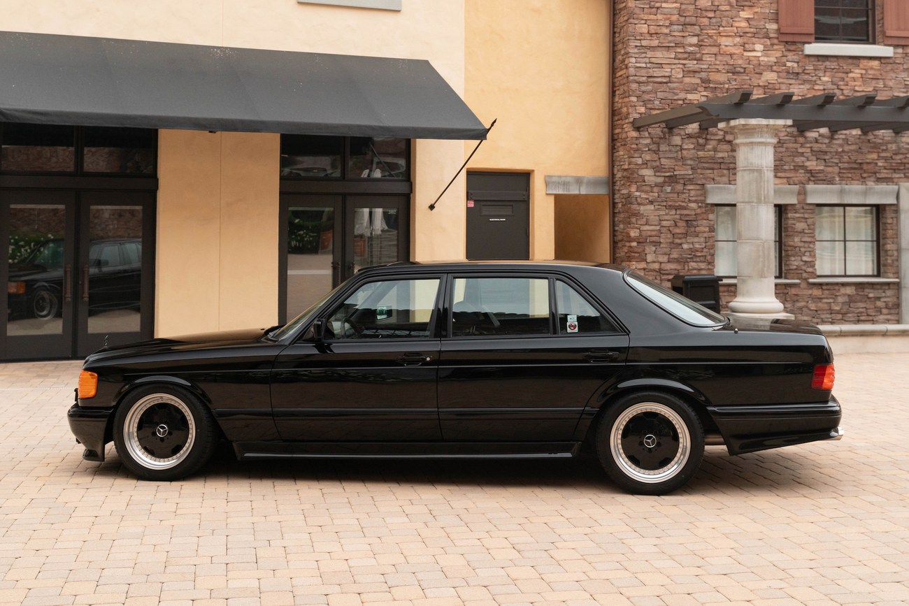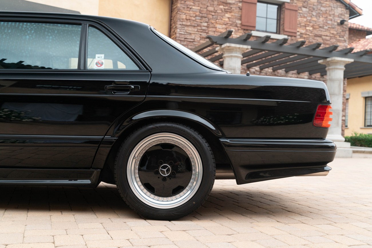 This 1987 Mercedes-Benz 560SEL has been a California car since new and shows only 44k miles on the odometer. Finished in Black (040) over Black leather (271), power is provided by a 5.5-liter M117 V8 paired with a four-speed automatic transmission. The car was converted to a European AMG spec in 2025. Equipment includes a full AMG-style body kit and AMG OZ Aero III-style wheels by CMS Motorsports, a sliding steel sunroof, burl wood trim, automatic climate control, heated front seats and rear bench, an AMG Atiwe steering wheel, Euro headlights, and rear passenger footrests. Service performed in the last year includes new spark plugs and wires, distributor cap and rotor, transmission service, brake fluid flush, hydraulic fluid flush, fuel pump, H&R springs, Bilstein shocks including rear self-leveling, drive belts, and more detailed below. This W126 is now offered by the seller with manufacturer’s books & literature, recent service records, one key, a clean Carfax report, and a clean California title.