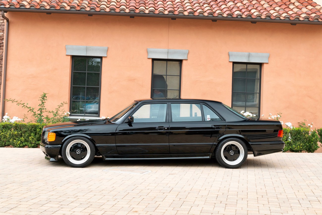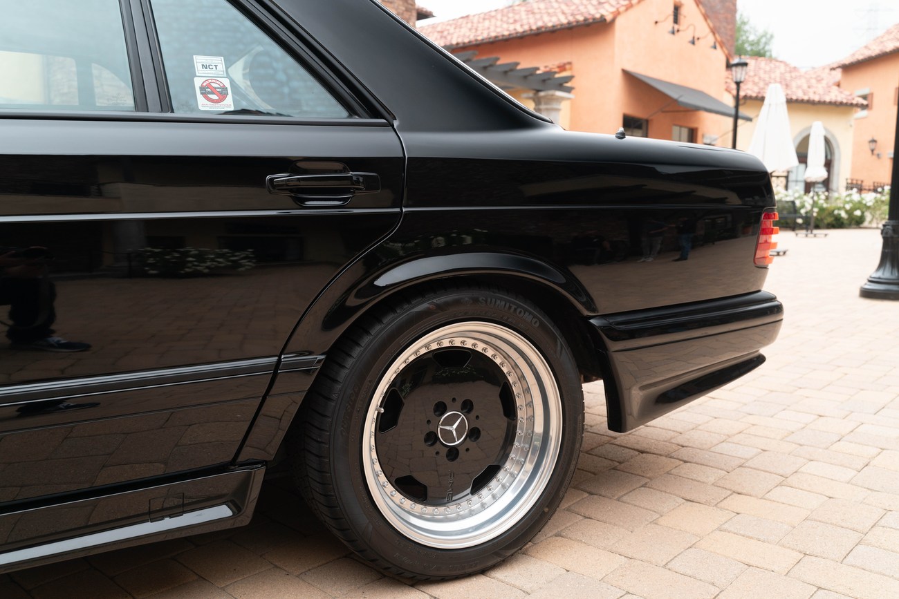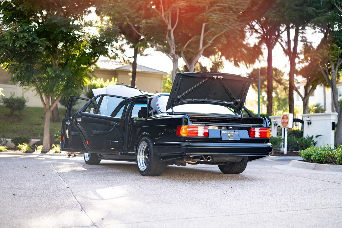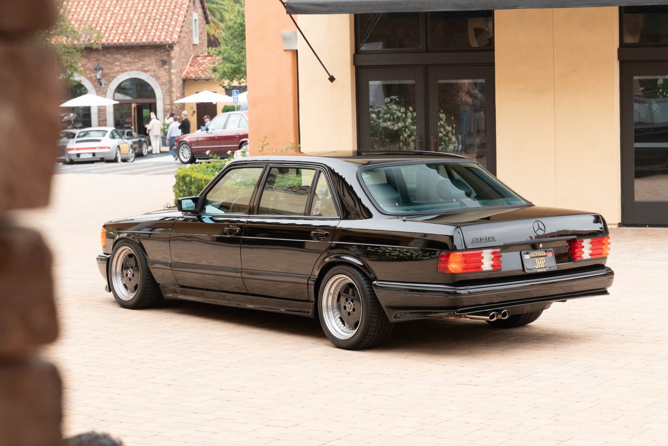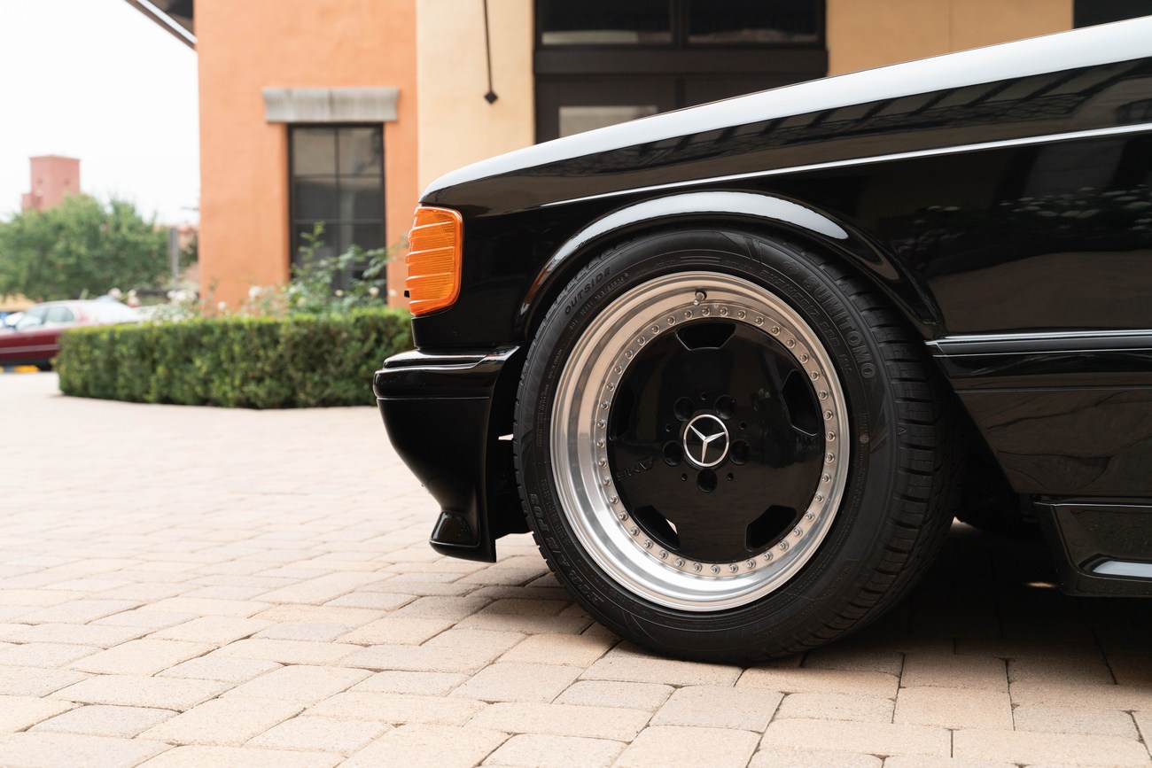 This 1987 Mercedes-Benz 560SEL has been a California car since new and shows only 44k miles on the odometer. Finished in Black (040) over Black leather (271), power is provided by a 5.5-liter M117 V8 paired with a four-speed automatic transmission. The car was converted to a European AMG spec in 2025. Equipment includes a full AMG-style body kit and AMG OZ Aero III-style wheels by CMS Motorsports, a sliding steel sunroof, burl wood trim, automatic climate control, heated front seats and rear bench, an AMG Atiwe steering wheel, Euro headlights, and rear passenger footrests. Service performed in the last year includes new spark plugs and wires, distributor cap and rotor, transmission service, brake fluid flush, hydraulic fluid flush, fuel pump, H&R springs, Bilstein shocks including rear self-leveling, drive belts, and more detailed below. This W126 is now offered by the seller with manufacturer’s books & literature, recent service records, one key, a clean Carfax report, and a clean California title.