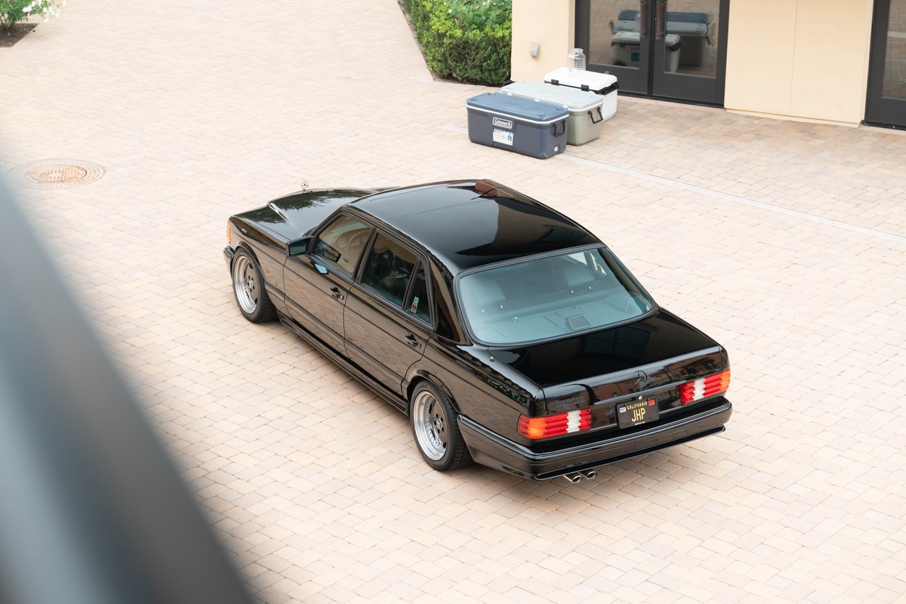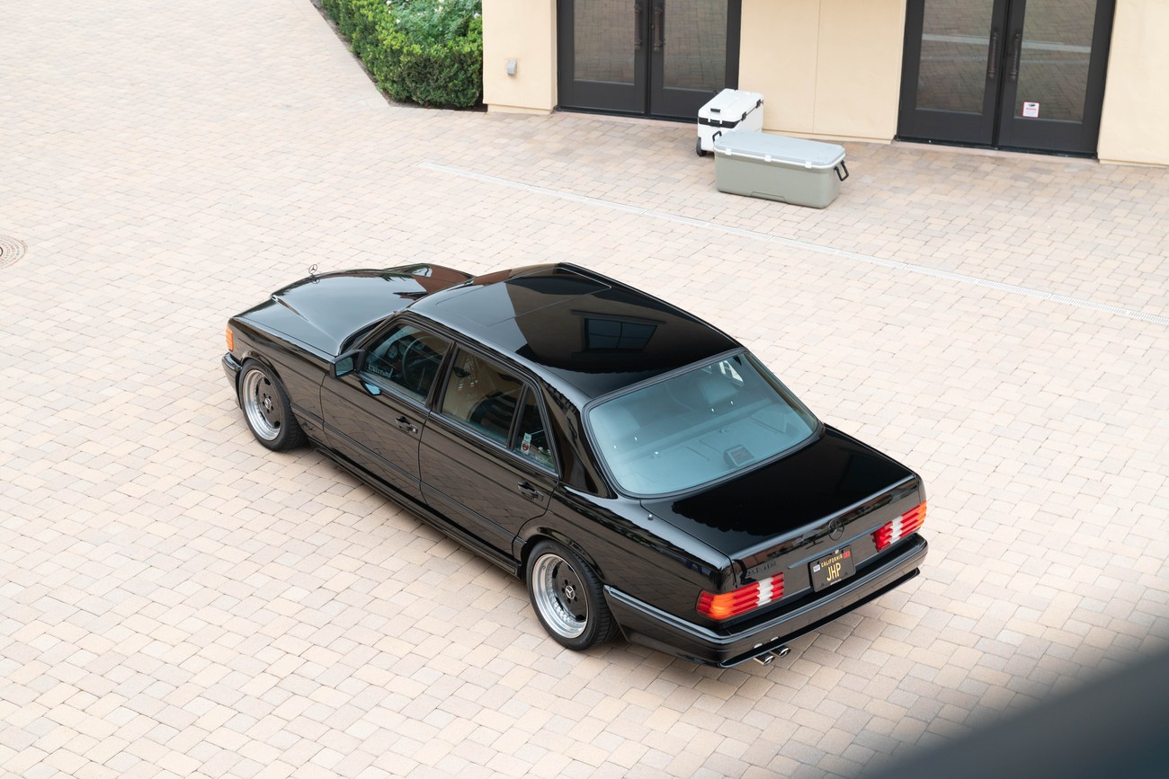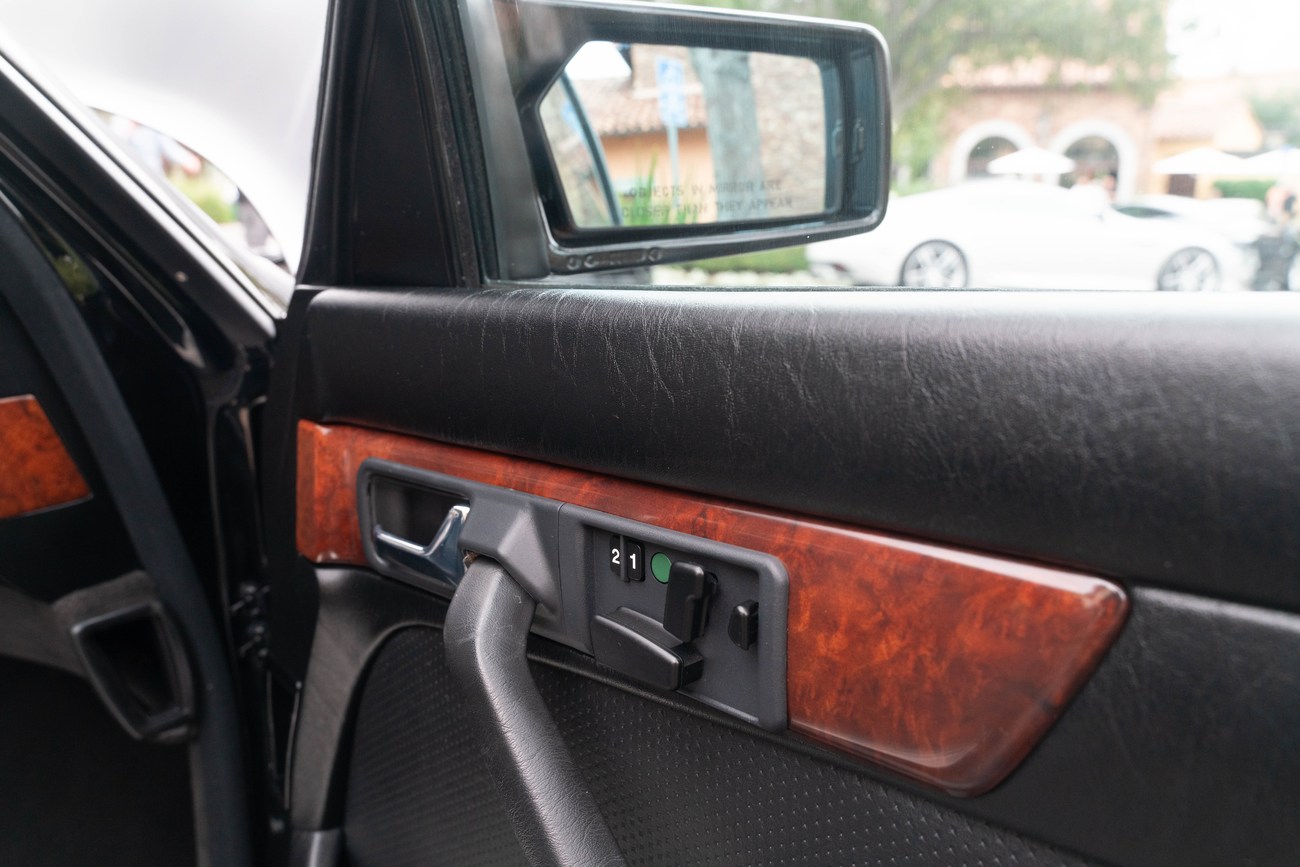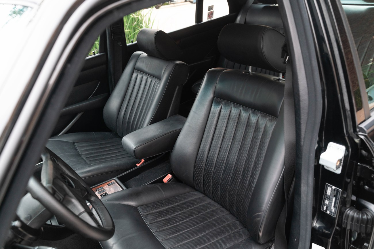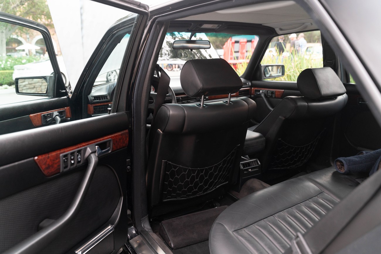 This 1987 Mercedes-Benz 560SEL has been a California car since new and shows only 44k miles on the odometer. Finished in Black (040) over Black leather (271), power is provided by a 5.5-liter M117 V8 paired with a four-speed automatic transmission. The car was converted to a European AMG spec in 2025. Equipment includes a full AMG-style body kit and AMG OZ Aero III-style wheels by CMS Motorsports, a sliding steel sunroof, burl wood trim, automatic climate control, heated front seats and rear bench, an AMG Atiwe steering wheel, Euro headlights, and rear passenger footrests. Service performed in the last year includes new spark plugs and wires, distributor cap and rotor, transmission service, brake fluid flush, hydraulic fluid flush, fuel pump, H&R springs, Bilstein shocks including rear self-leveling, drive belts, and more detailed below. This W126 is now offered by the seller with manufacturer’s books & literature, recent service records, one key, a clean Carfax report, and a clean California title.