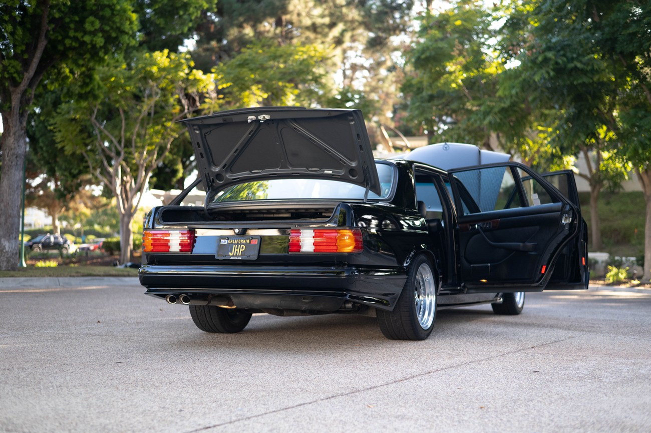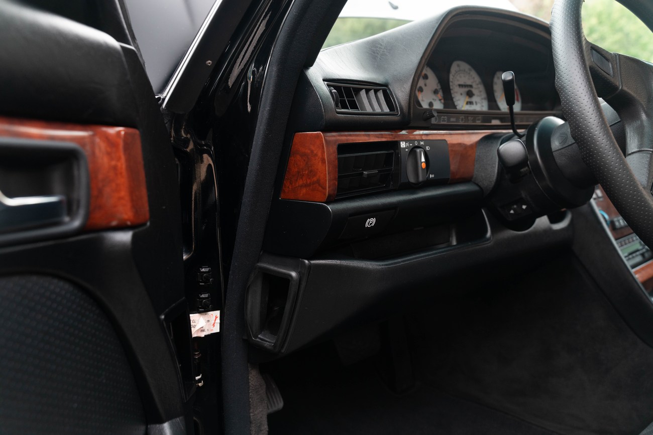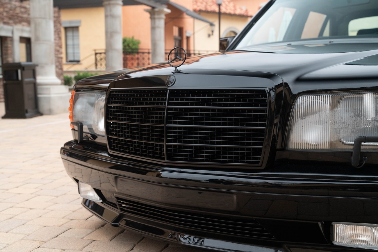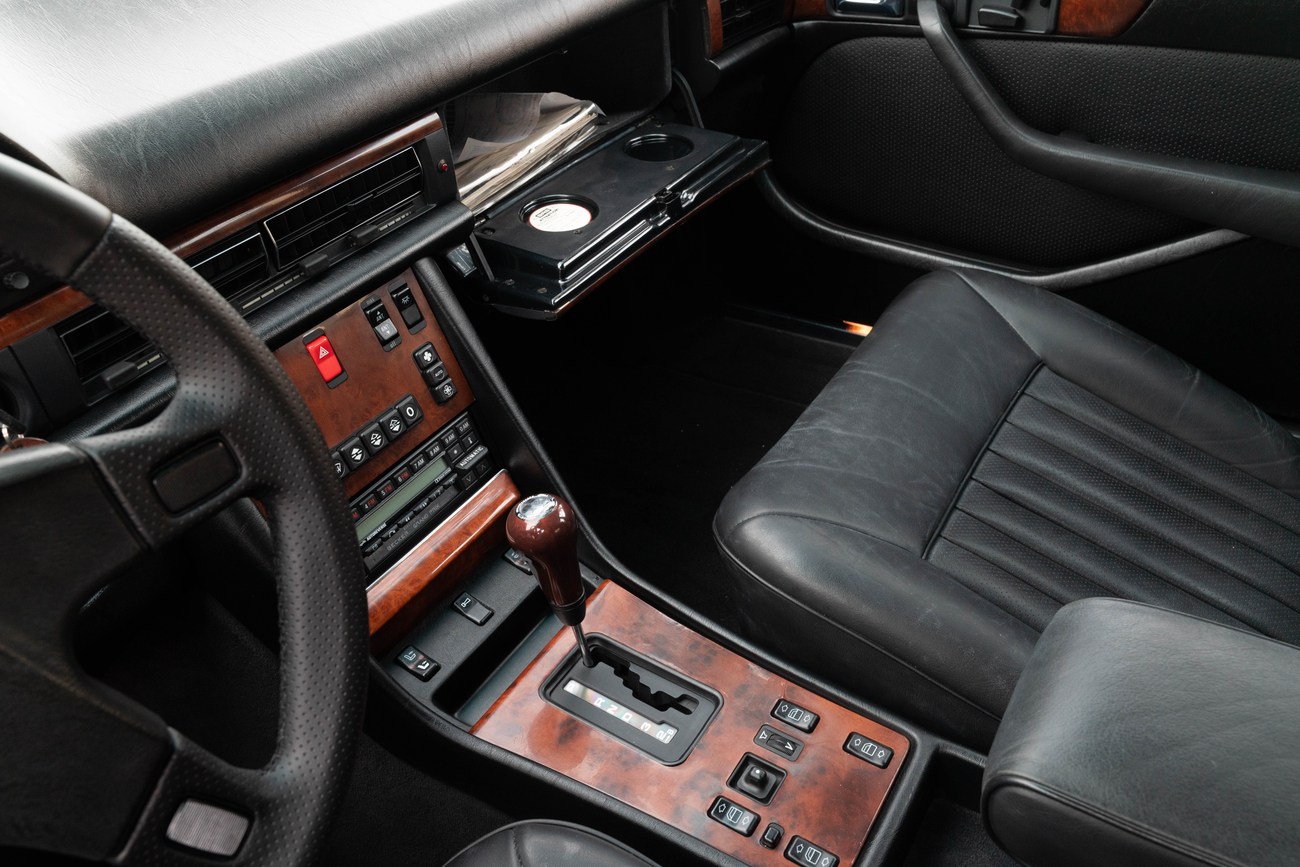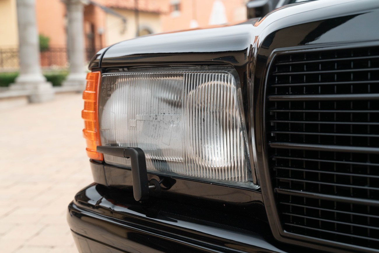 This 1987 Mercedes-Benz 560SEL has been a California car since new and shows only 44k miles on the odometer. Finished in Black (040) over Black leather (271), power is provided by a 5.5-liter M117 V8 paired with a four-speed automatic transmission. The car was converted to a European AMG spec in 2025. Equipment includes a full AMG-style body kit and AMG OZ Aero III-style wheels by CMS Motorsports, a sliding steel sunroof, burl wood trim, automatic climate control, heated front seats and rear bench, an AMG Atiwe steering wheel, Euro headlights, and rear passenger footrests. Service performed in the last year includes new spark plugs and wires, distributor cap and rotor, transmission service, brake fluid flush, hydraulic fluid flush, fuel pump, H&R springs, Bilstein shocks including rear self-leveling, drive belts, and more detailed below. This W126 is now offered by the seller with manufacturer’s books & literature, recent service records, one key, a clean Carfax report, and a clean California title.