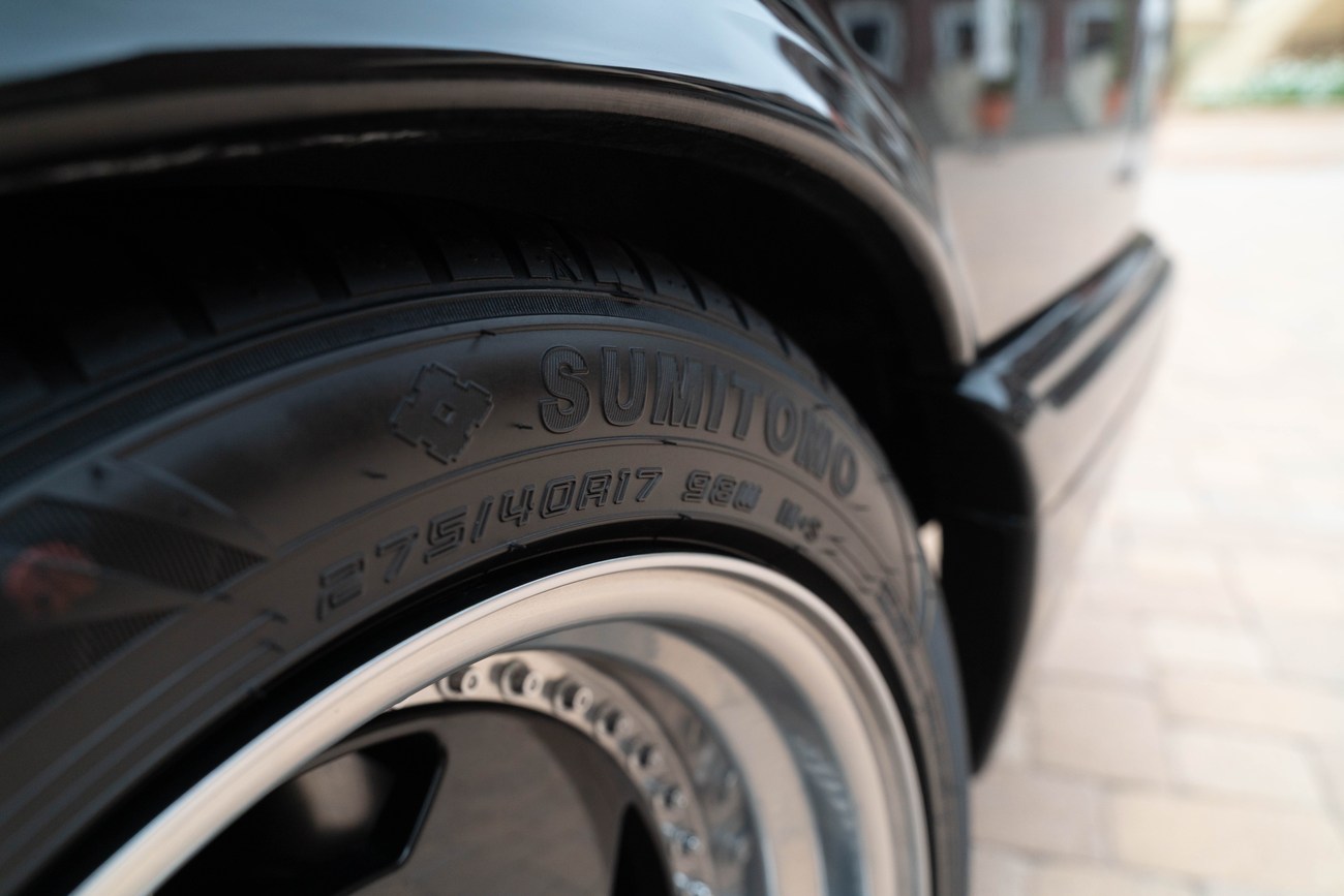 Staggered OZ Aero III-style wheels were commissioned by CMS and fitted with new Sumitomo HZR tires which most closely match the tread design of the tires which would've been used in period when the car was new. The tires measure 245/45 up front and 275/40 in the rear. The wheels are paint-matched to the car and AMG is engraved on each face. H&R springs and Bilstein shocks were fitted with new self-leveling units in the rear. The SLS fluid and brake fluid were both flushed in June 2025.