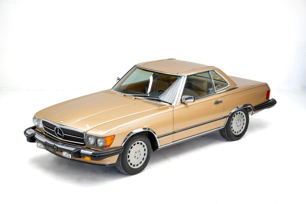 This 1987 Mercedes-Benz 560SL is finished in Champagne Metallic (473) over Palomino Leather (274), and power is provided by a 5.5-liter V8 paired with a four-speed automatic transmission. Originally registered in Florida, this R107 spent consecutive time in Washington state and is offered by the selling dealer in Bellingham, Washington on behalf of the current owner. Features include a folding brown soft top, a removable hardtop, fog lights, a Becker cassette stereo, electric windows, central locking, and automatic climate control. The included Carfax report shows 10 historic service records and between 2016 and 2018 and nearly $9k was spent on maintenance and service. Now showing 86k miles, this R107 is now offered by the selling dealer with the owner's manual, tool kit, hardtop stand, partial service records, a clean Carfax report, and a clean Washington title.