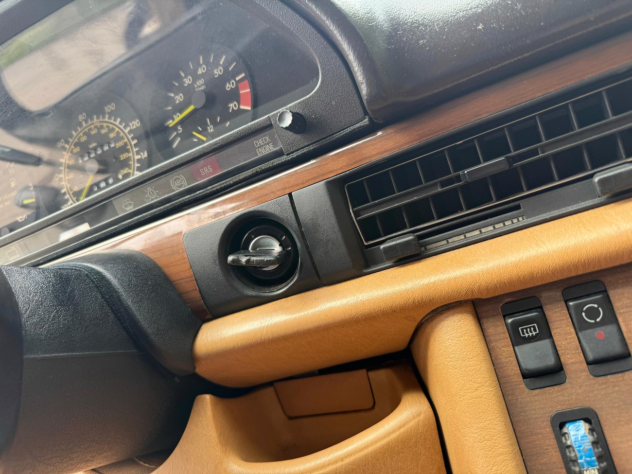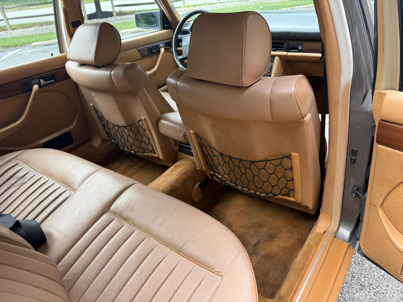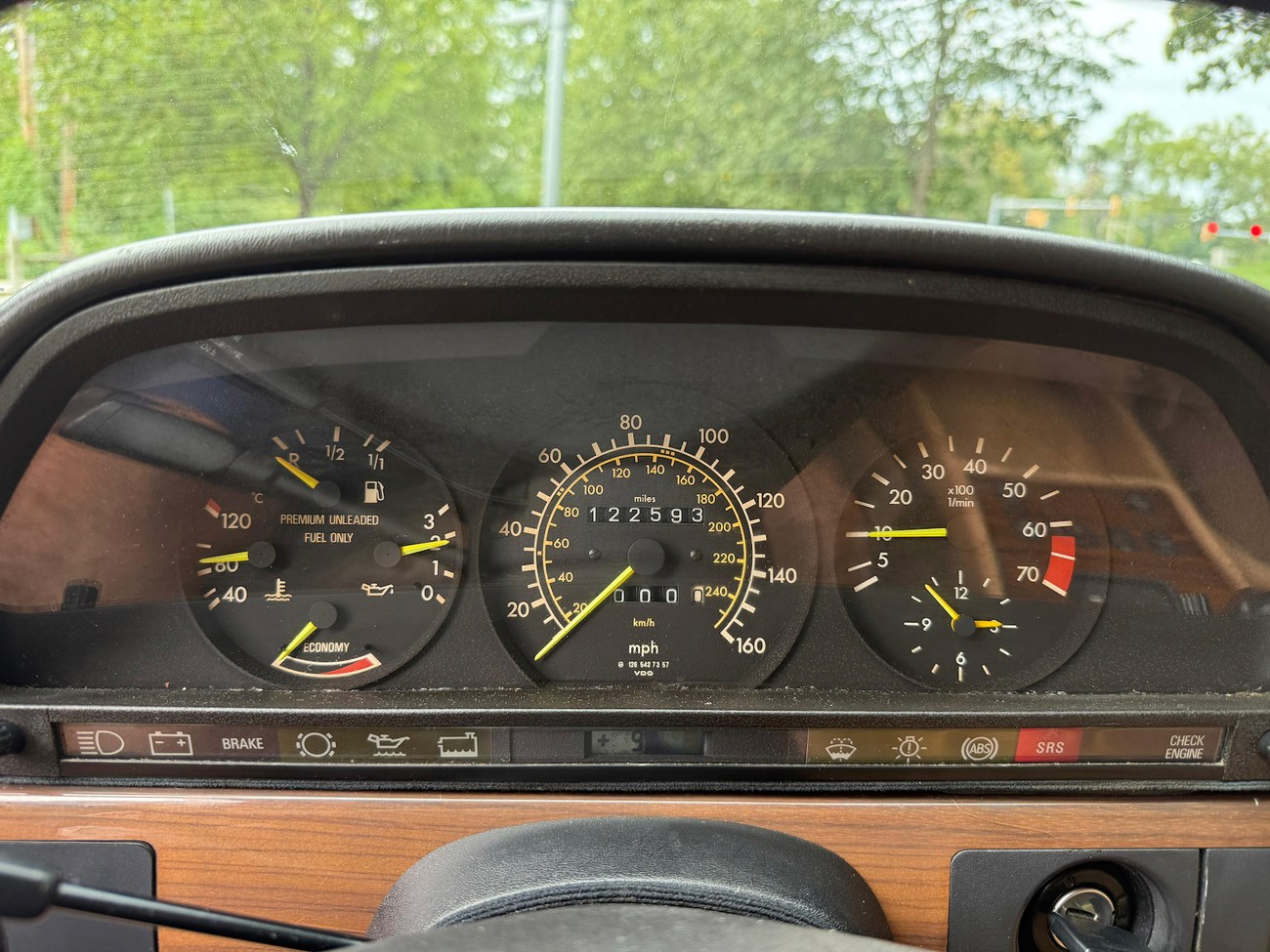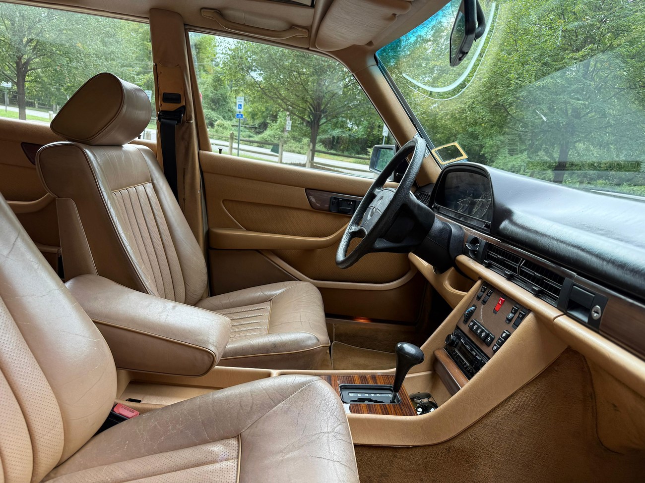 This W126 is powered by a 3.0-liter M103 inline-six which produces 177 horsepower and 188 lb-ft of torque. Power is sent to the rear wheels through a four-speed automatic transmission. There is limited information for service history on the Carfax and only records under current ownership are included although the seller reports the car operates with no issues. The most recent service in October 2025 included a new fuel pump, distributor cap, and spark plugs.