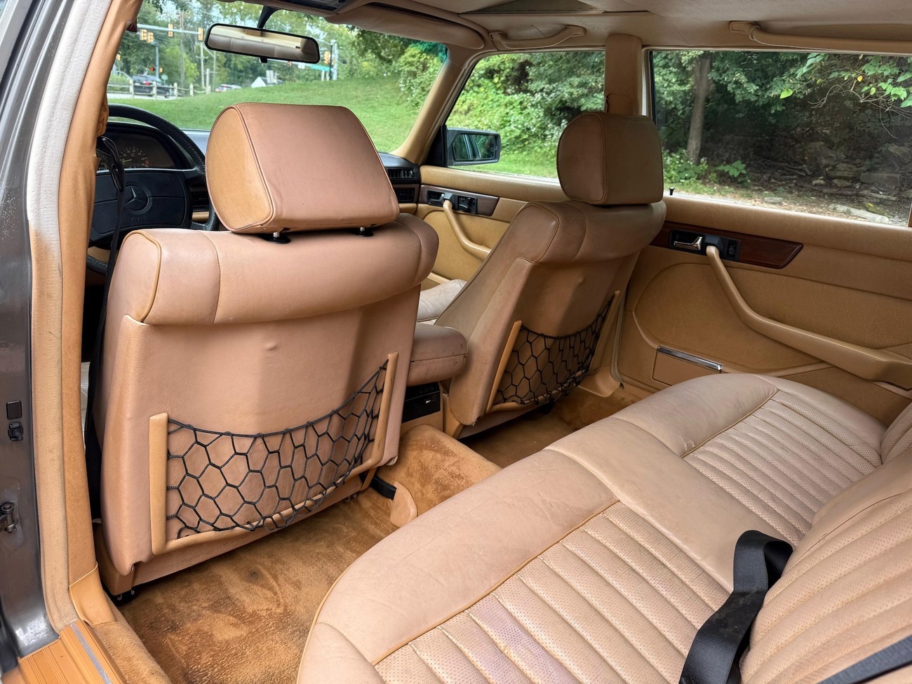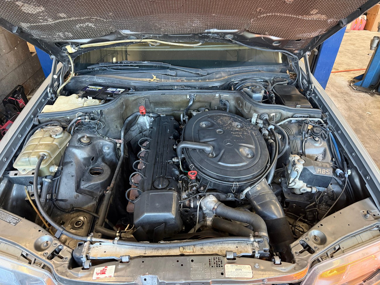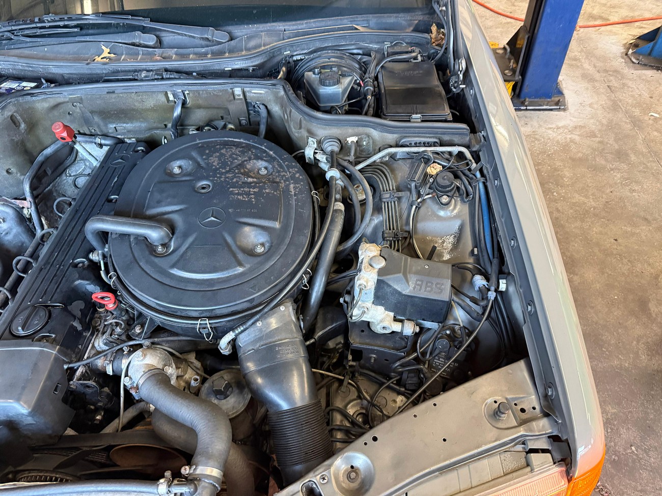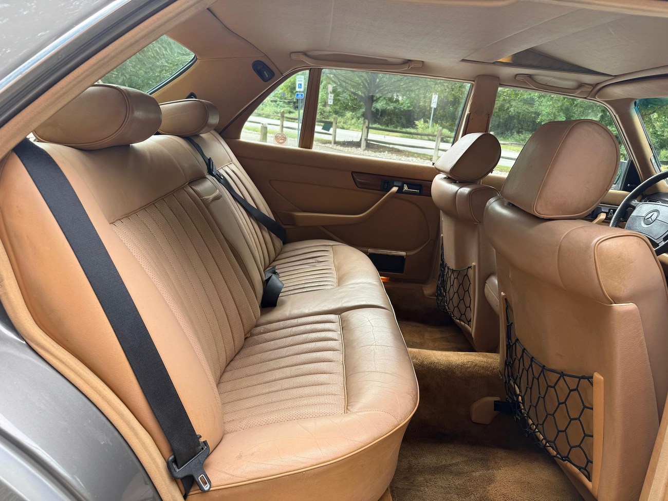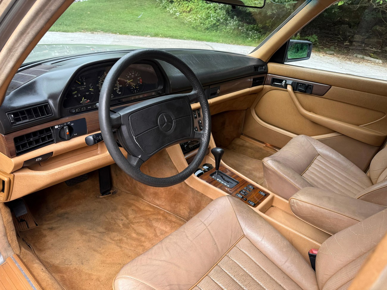 This W126 is powered by a 3.0-liter M103 inline-six which produces 177 horsepower and 188 lb-ft of torque. Power is sent to the rear wheels through a four-speed automatic transmission. There is limited information for service history on the Carfax and only records under current ownership are included although the seller reports the car operates with no issues. The most recent service in October 2025 included a new fuel pump, distributor cap, and spark plugs.