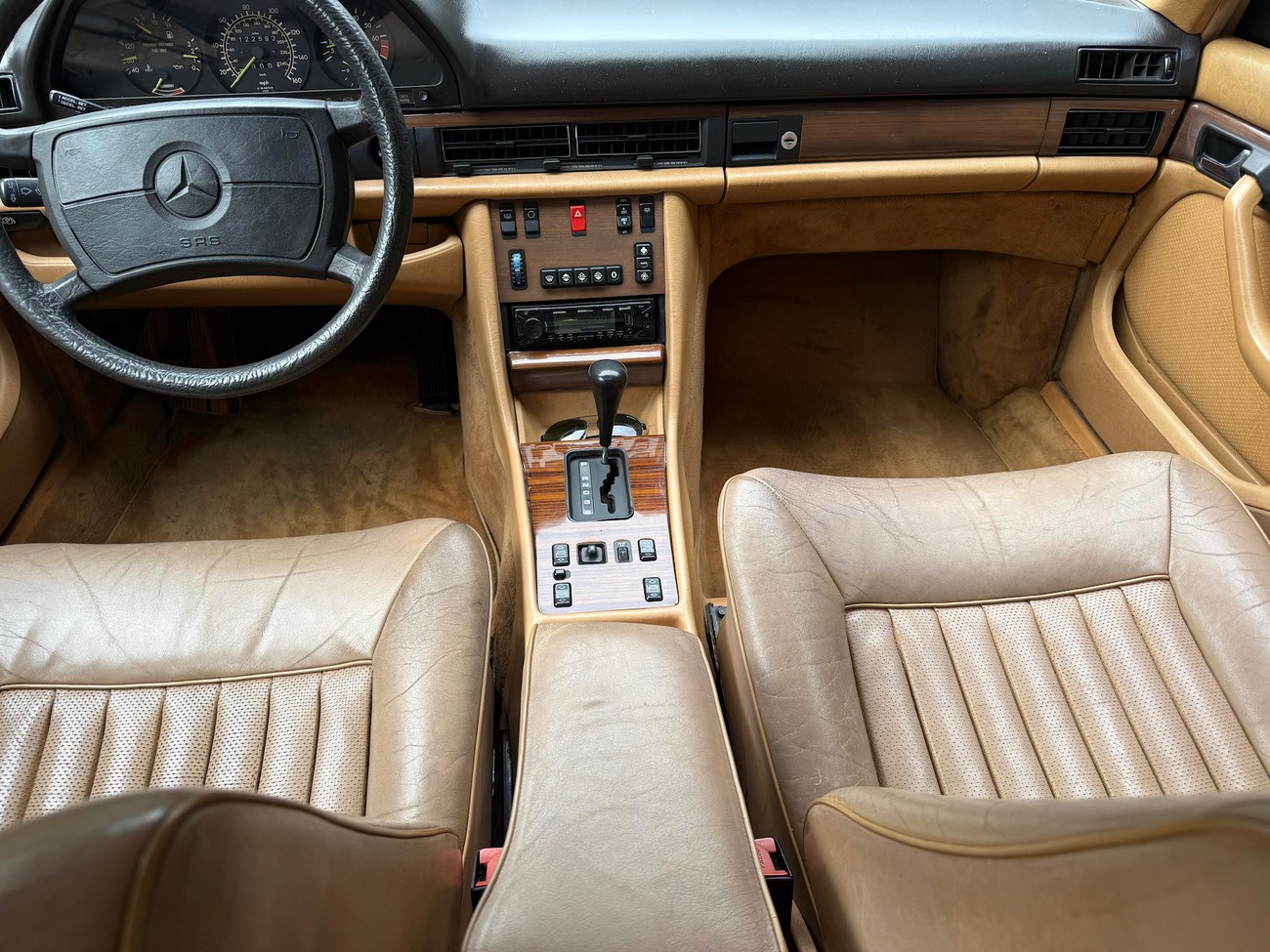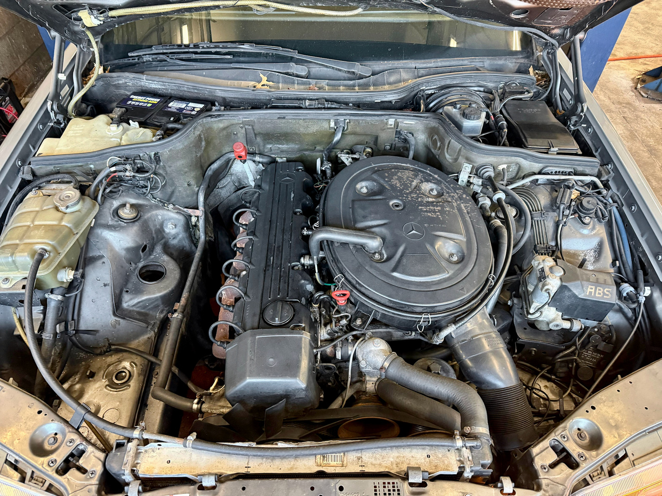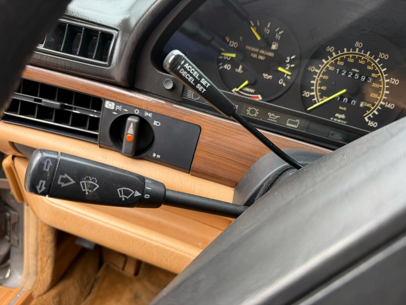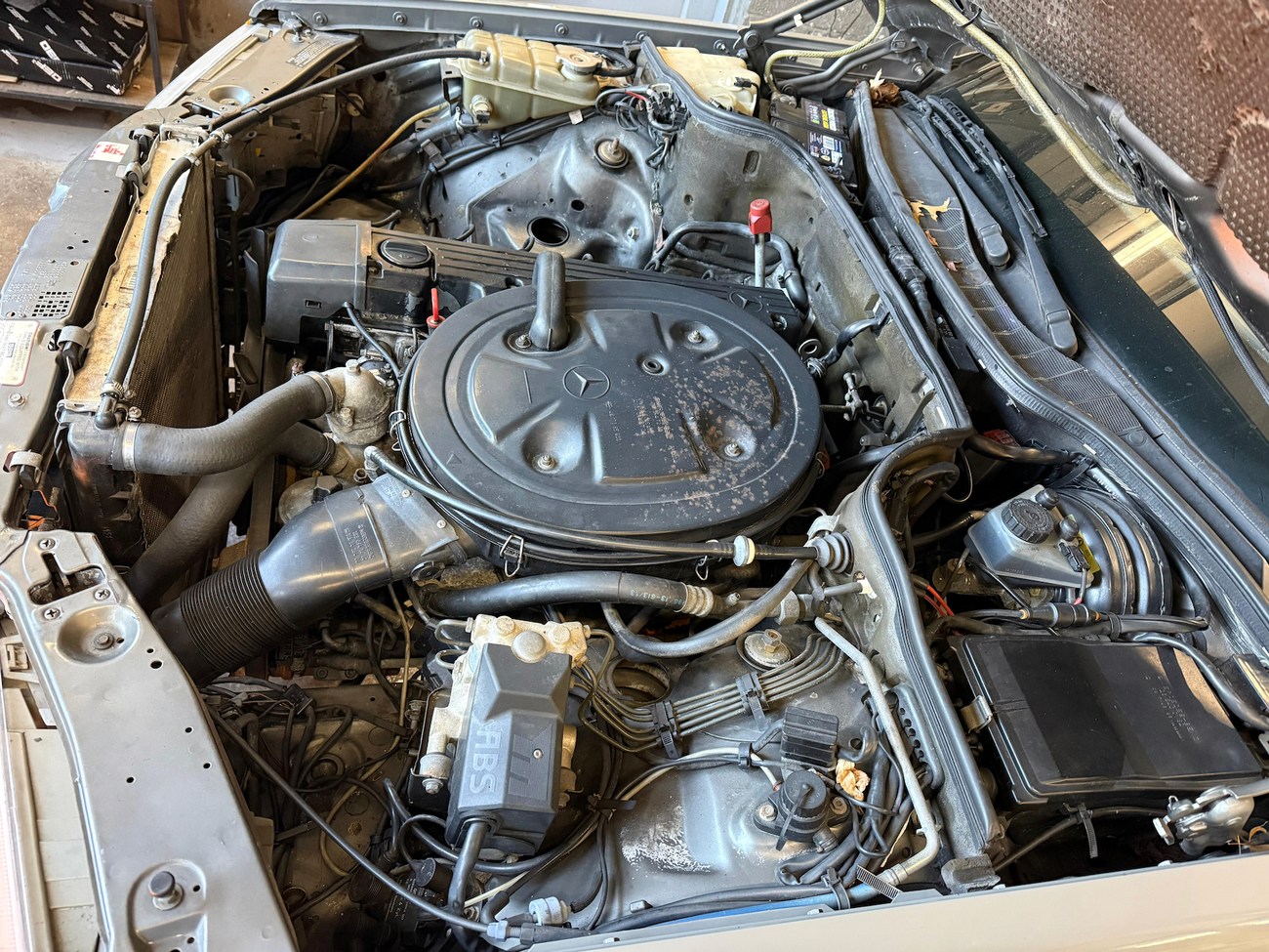 This W126 is powered by a 3.0-liter M103 inline-six which produces 177 horsepower and 188 lb-ft of torque. Power is sent to the rear wheels through a four-speed automatic transmission. There is limited information for service history on the Carfax and only records under current ownership are included although the seller reports the car operates with no issues. The most recent service in October 2025 included a new fuel pump, distributor cap, and spark plugs.