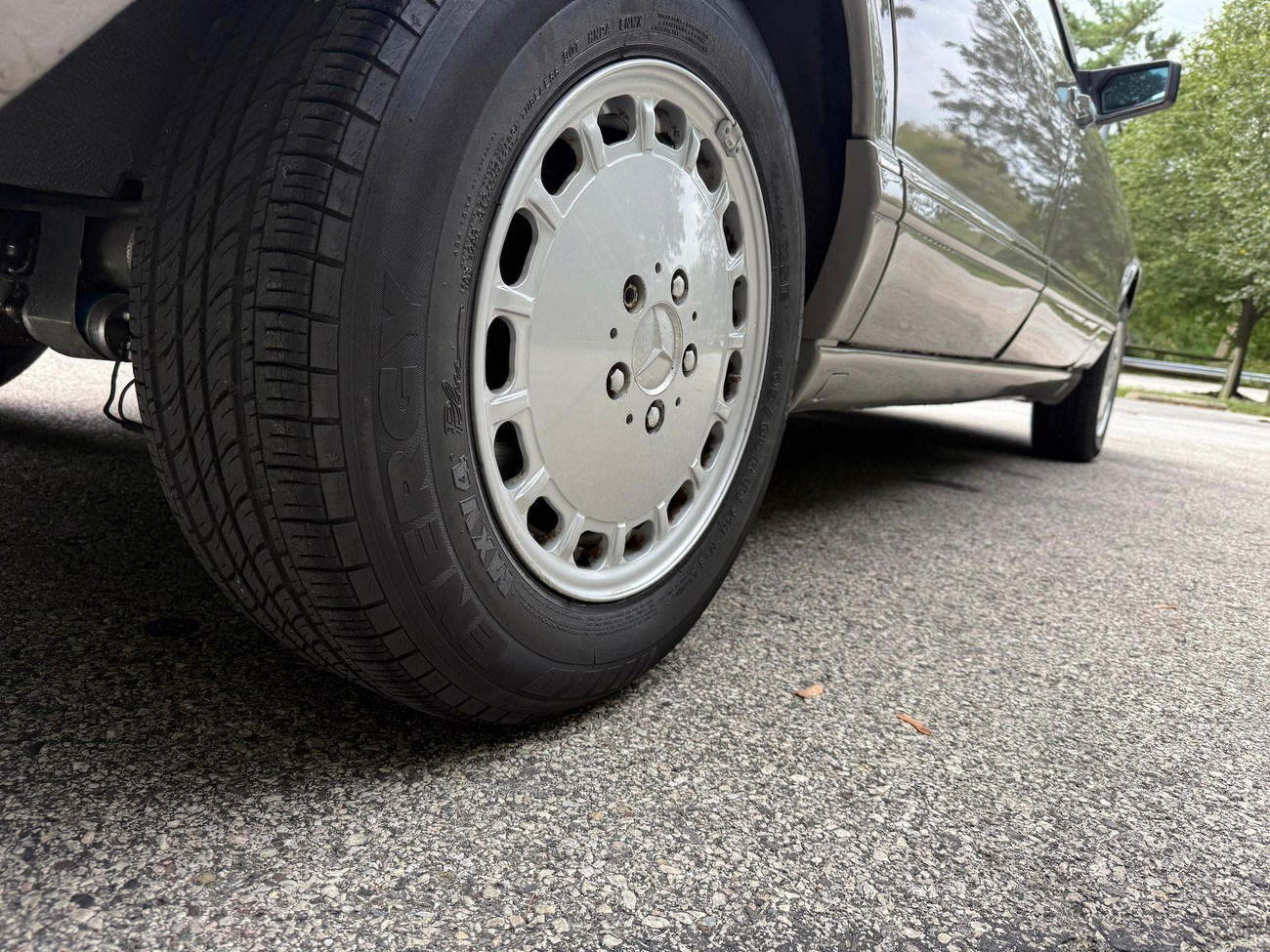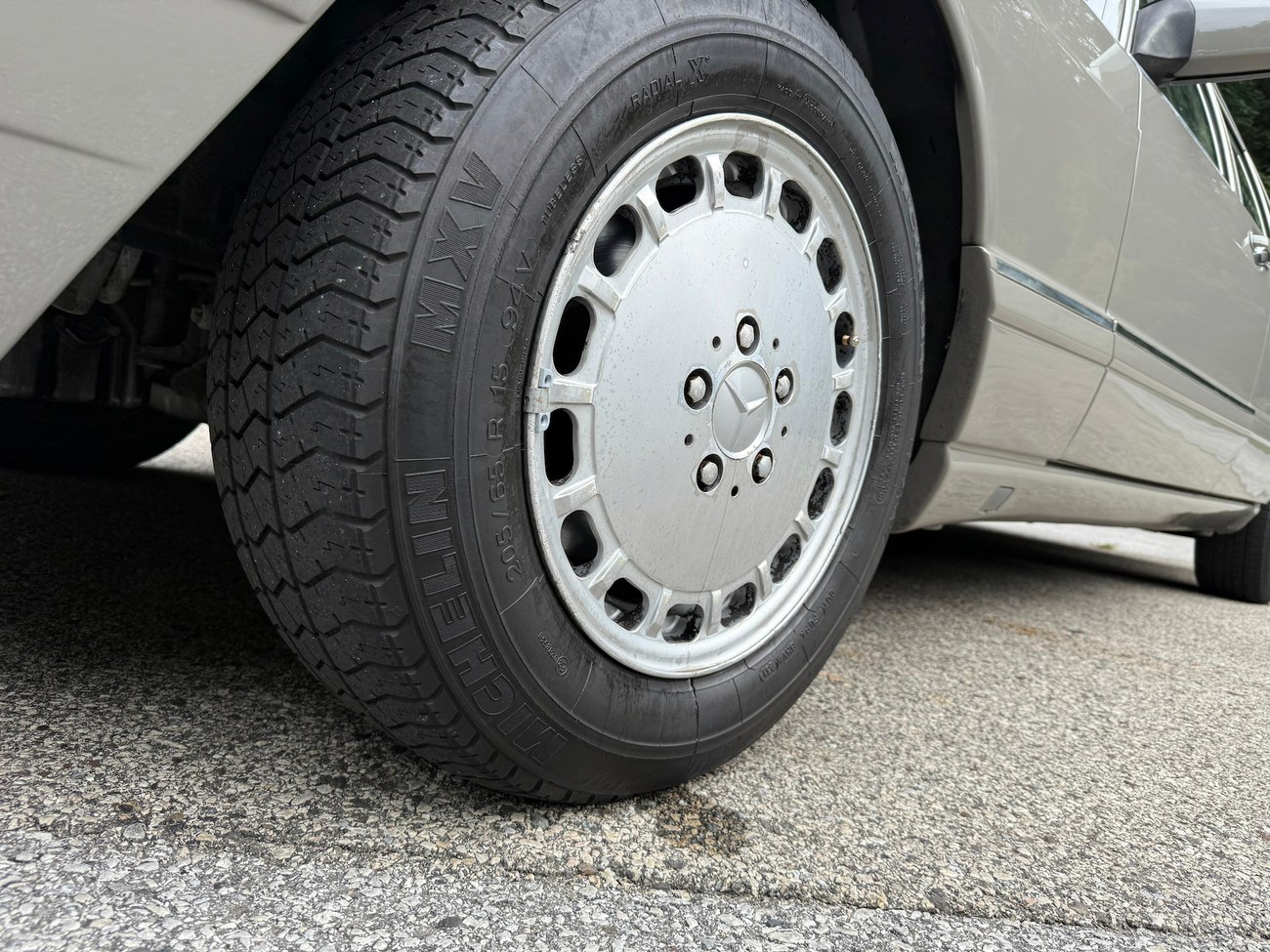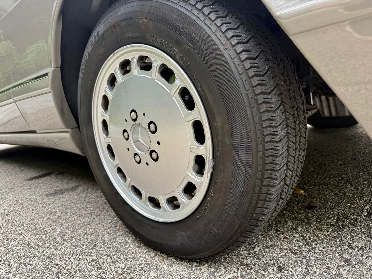 The original 15” Gullideckel wheels come wrapped in a mixed set of Michelin and Toyo tires measuring 205/65 on all four corners. The wheels show some wear marks on the faces. Braking is handled by dual-circuit anti-lock disc brakes front and rear.