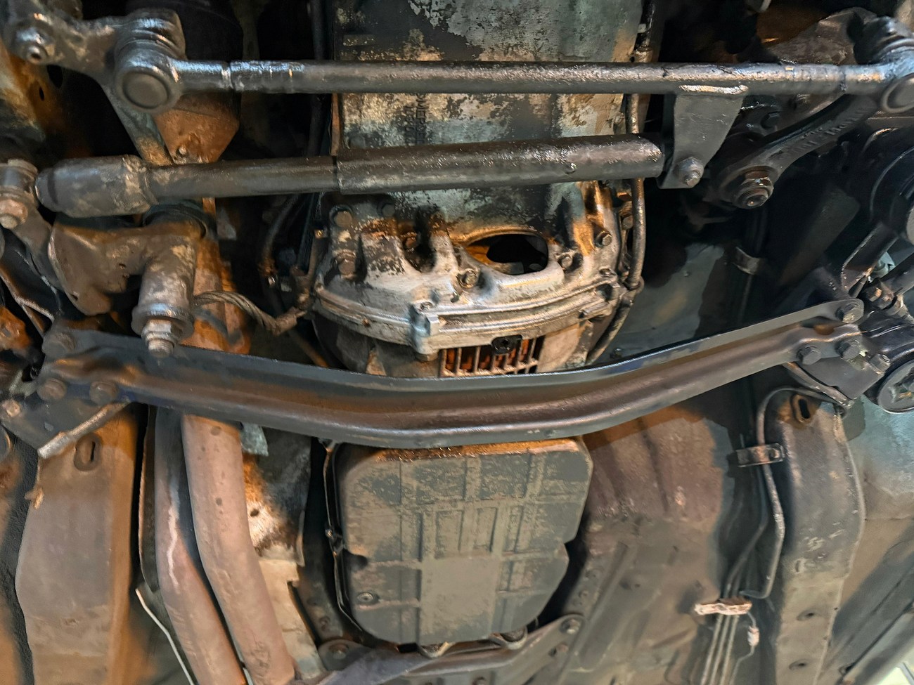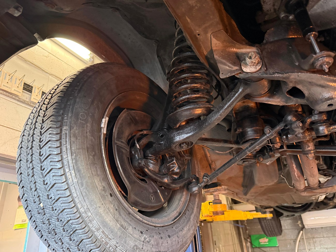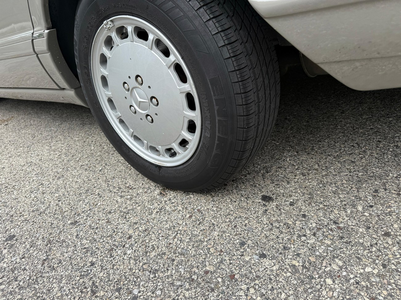 The original 15” Gullideckel wheels come wrapped in a mixed set of Michelin and Toyo tires measuring 205/65 on all four corners. The wheels show some wear marks on the faces. Braking is handled by dual-circuit anti-lock disc brakes front and rear.