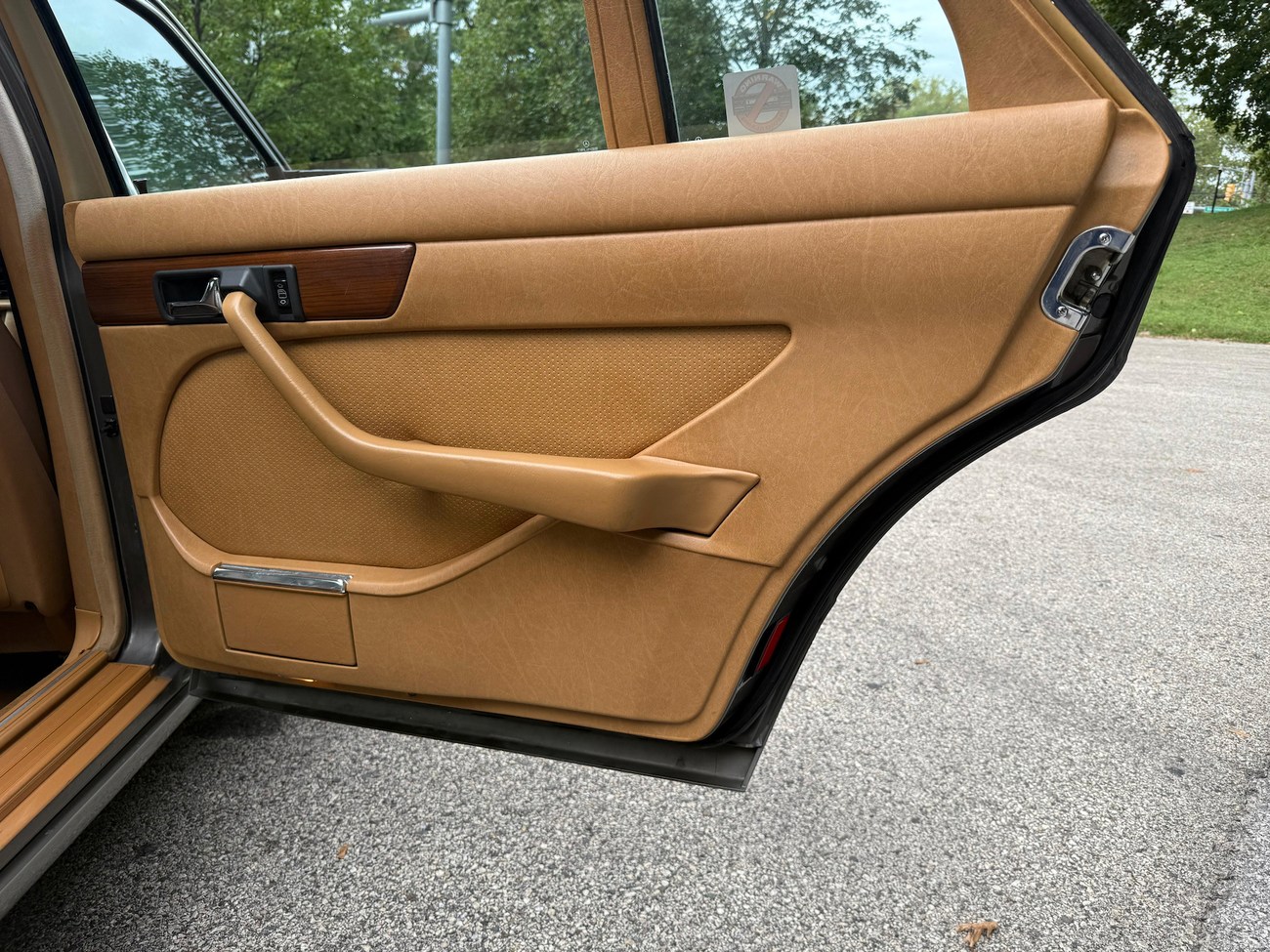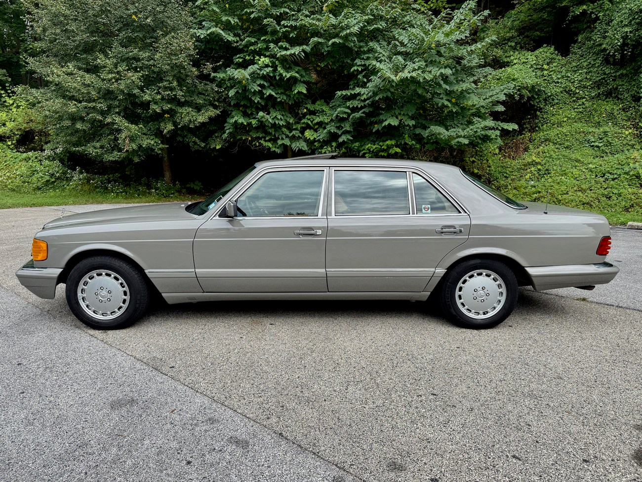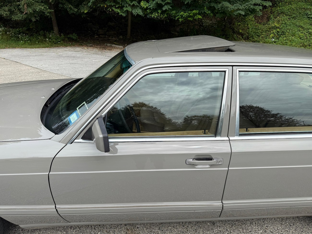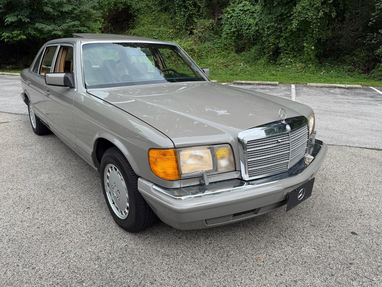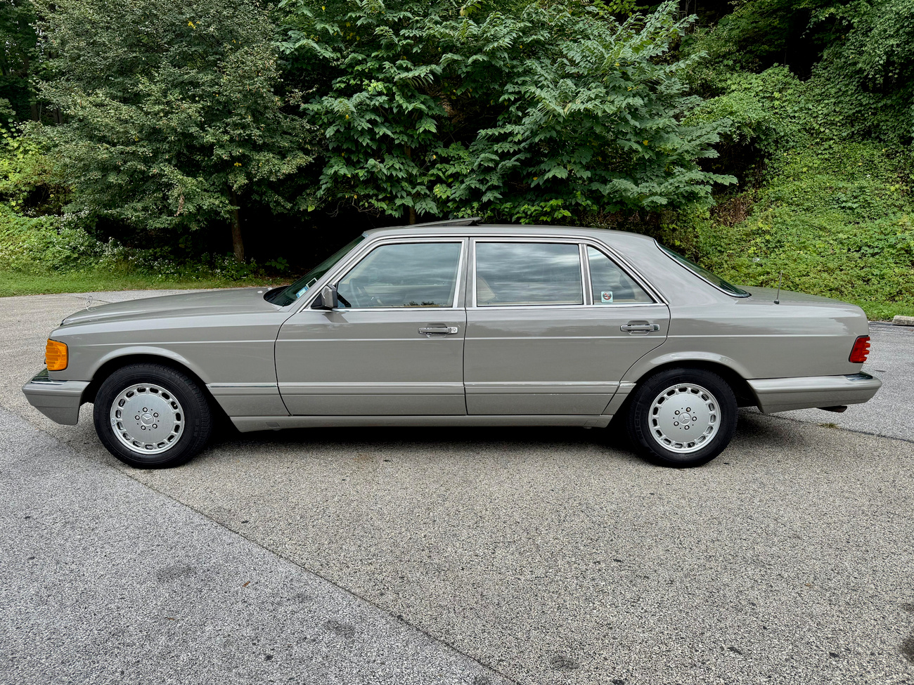 This 1988 Mercedes-Benz 300SEL was sold new in Pennsylvania in January of 1988 and shows registration history in New Jersey, New York, and Pennsylvania. Finished in Anthracite Grey Metallic (172) over Palomino Leather (274), power is provided by a 3.0-liter inline-six linked to a four-speed automatic transmission. Factory equipment includes a power tilt/slide sunroof, a power passenger-side mirror, headlamp wiper/washers, a telescoping steering column, power and heated front seats with memory, automatic climate control and a Boss head unit. The car underwent a full repaint in a different shade within the last year and the most recent service in October 2025 included a new fuel pump, distributor cap, and spark plugs. This 300SEL is now offered for sale by the current owner with a clean Carfax report and a clean Pennsylvania title.