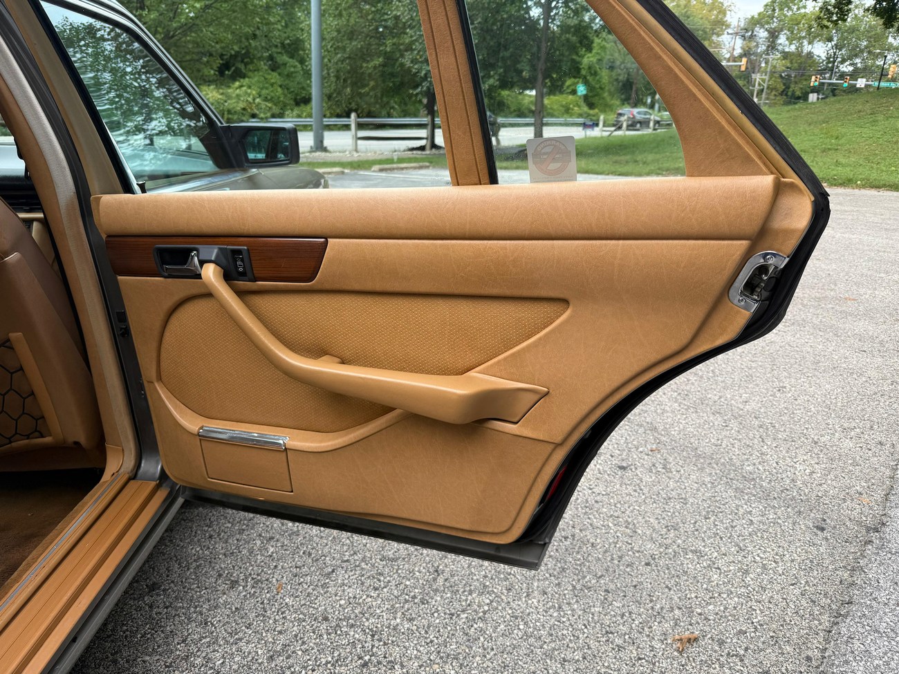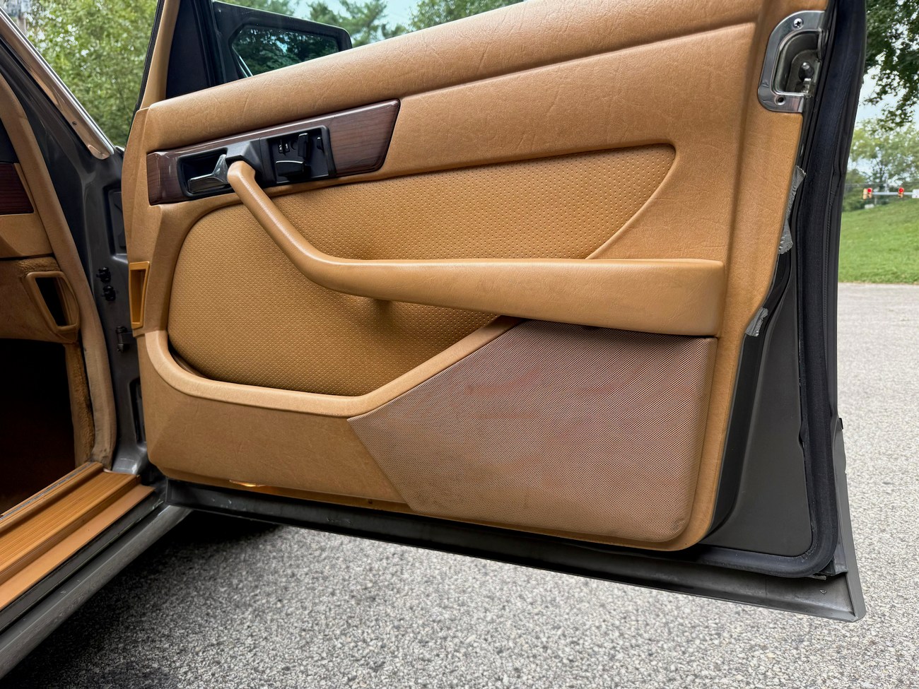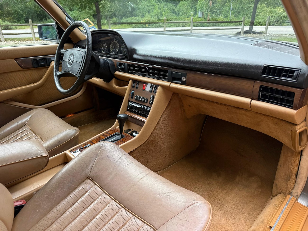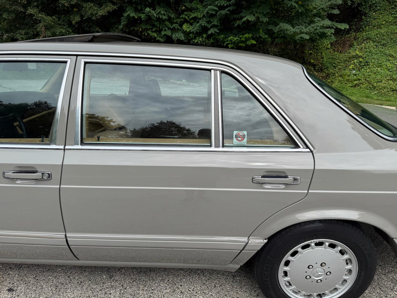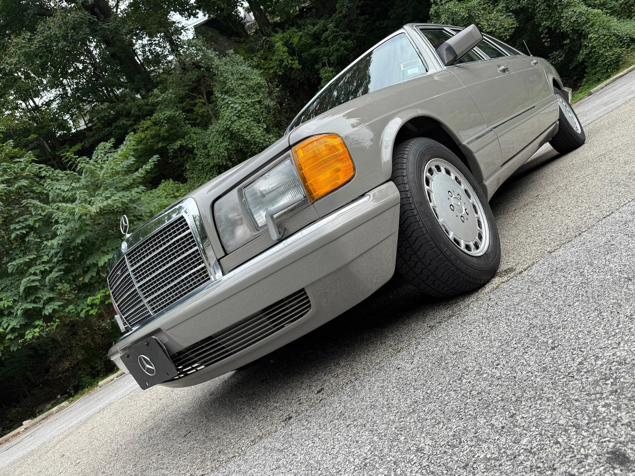 This 1988 Mercedes-Benz 300SEL was sold new in Pennsylvania in January of 1988 and shows registration history in New Jersey, New York, and Pennsylvania. Finished in Anthracite Grey Metallic (172) over Palomino Leather (274), power is provided by a 3.0-liter inline-six linked to a four-speed automatic transmission. Factory equipment includes a power tilt/slide sunroof, a power passenger-side mirror, headlamp wiper/washers, a telescoping steering column, power and heated front seats with memory, automatic climate control and a Boss head unit. The car underwent a full repaint in a different shade within the last year and the most recent service in October 2025 included a new fuel pump, distributor cap, and spark plugs. This 300SEL is now offered for sale by the current owner with a clean Carfax report and a clean Pennsylvania title.
