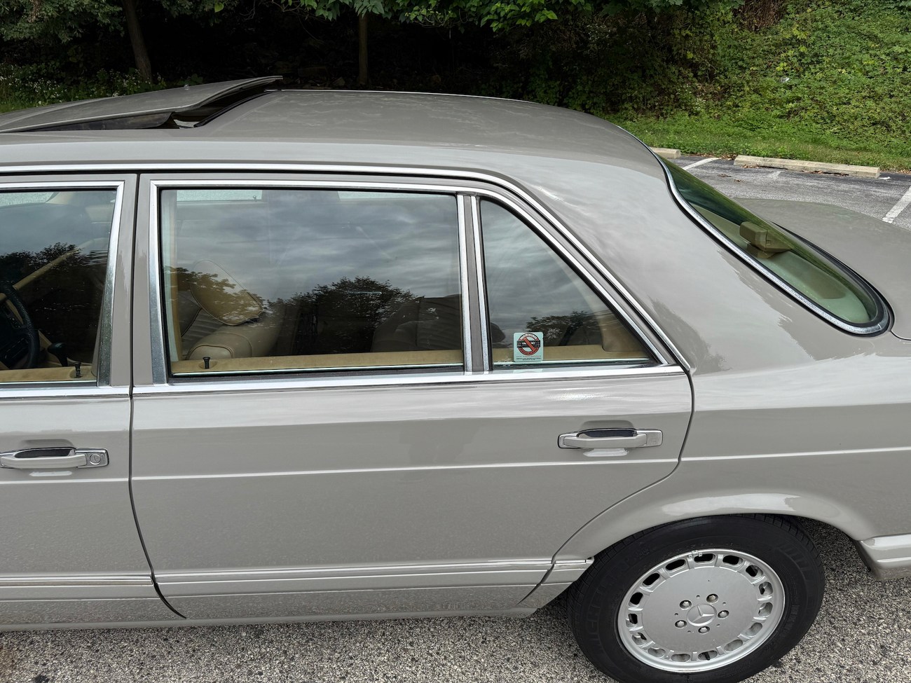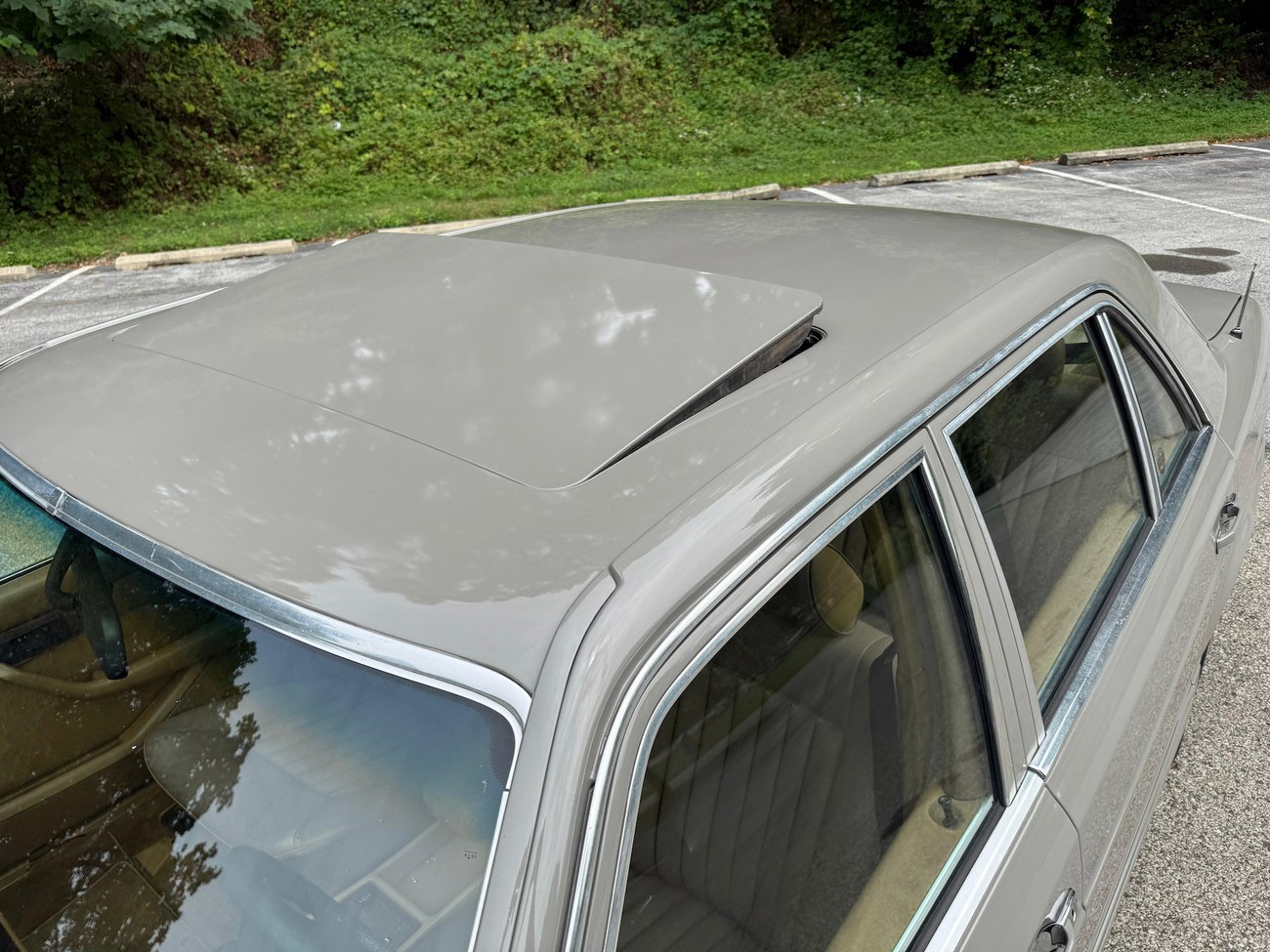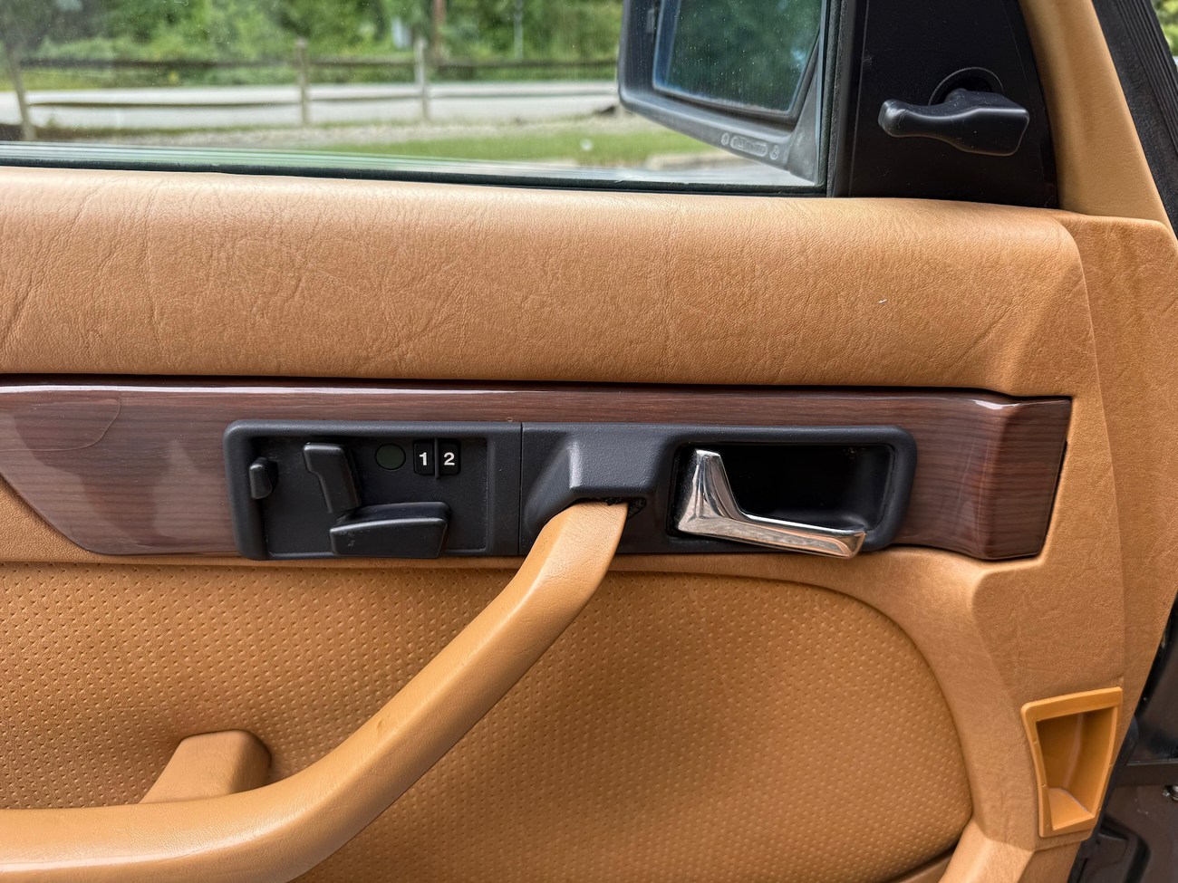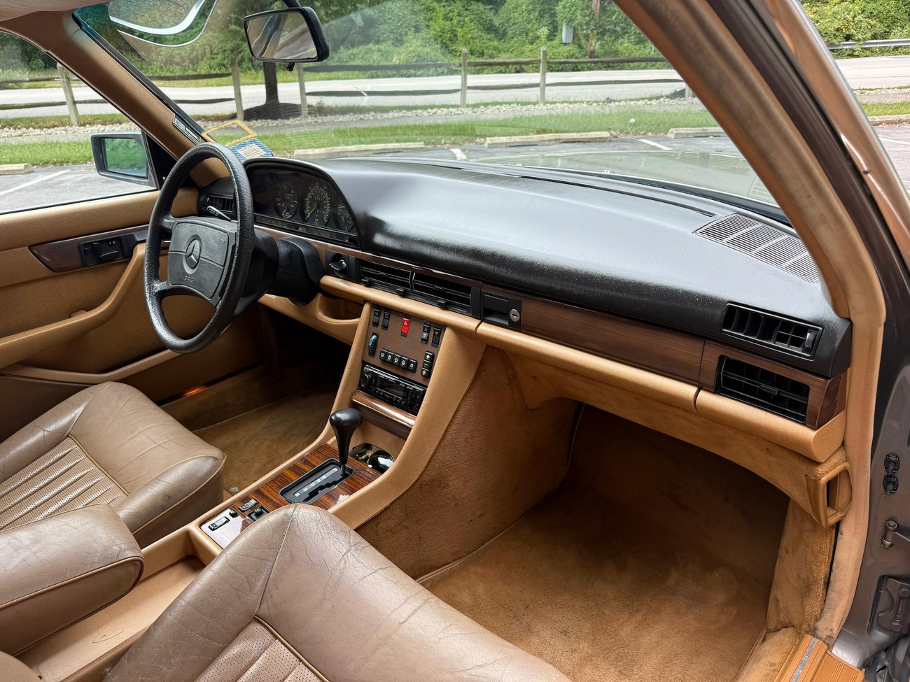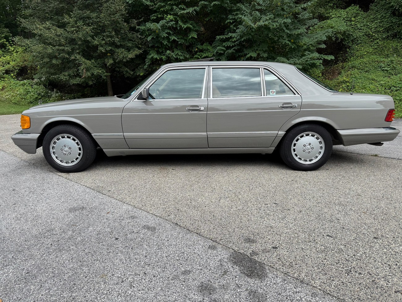 This 1988 Mercedes-Benz 300SEL was sold new in Pennsylvania in January of 1988 and shows registration history in New Jersey, New York, and Pennsylvania. Finished in Anthracite Grey Metallic (172) over Palomino Leather (274), power is provided by a 3.0-liter inline-six linked to a four-speed automatic transmission. Factory equipment includes a power tilt/slide sunroof, a power passenger-side mirror, headlamp wiper/washers, a telescoping steering column, power and heated front seats with memory, automatic climate control and a Boss head unit. The car underwent a full repaint in a different shade within the last year and the most recent service in October 2025 included a new fuel pump, distributor cap, and spark plugs. This 300SEL is now offered for sale by the current owner with a clean Carfax report and a clean Pennsylvania title.