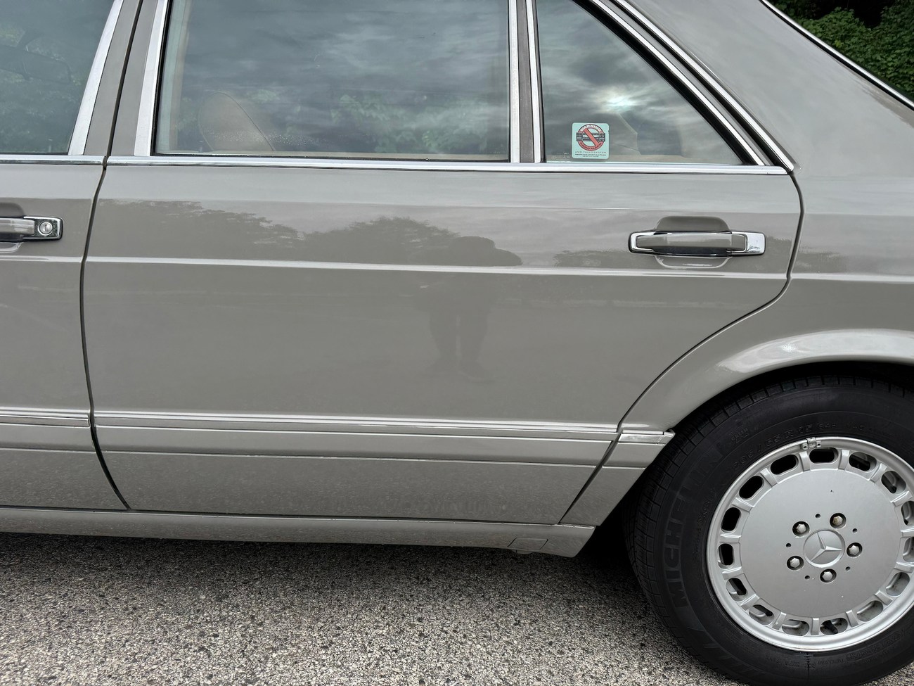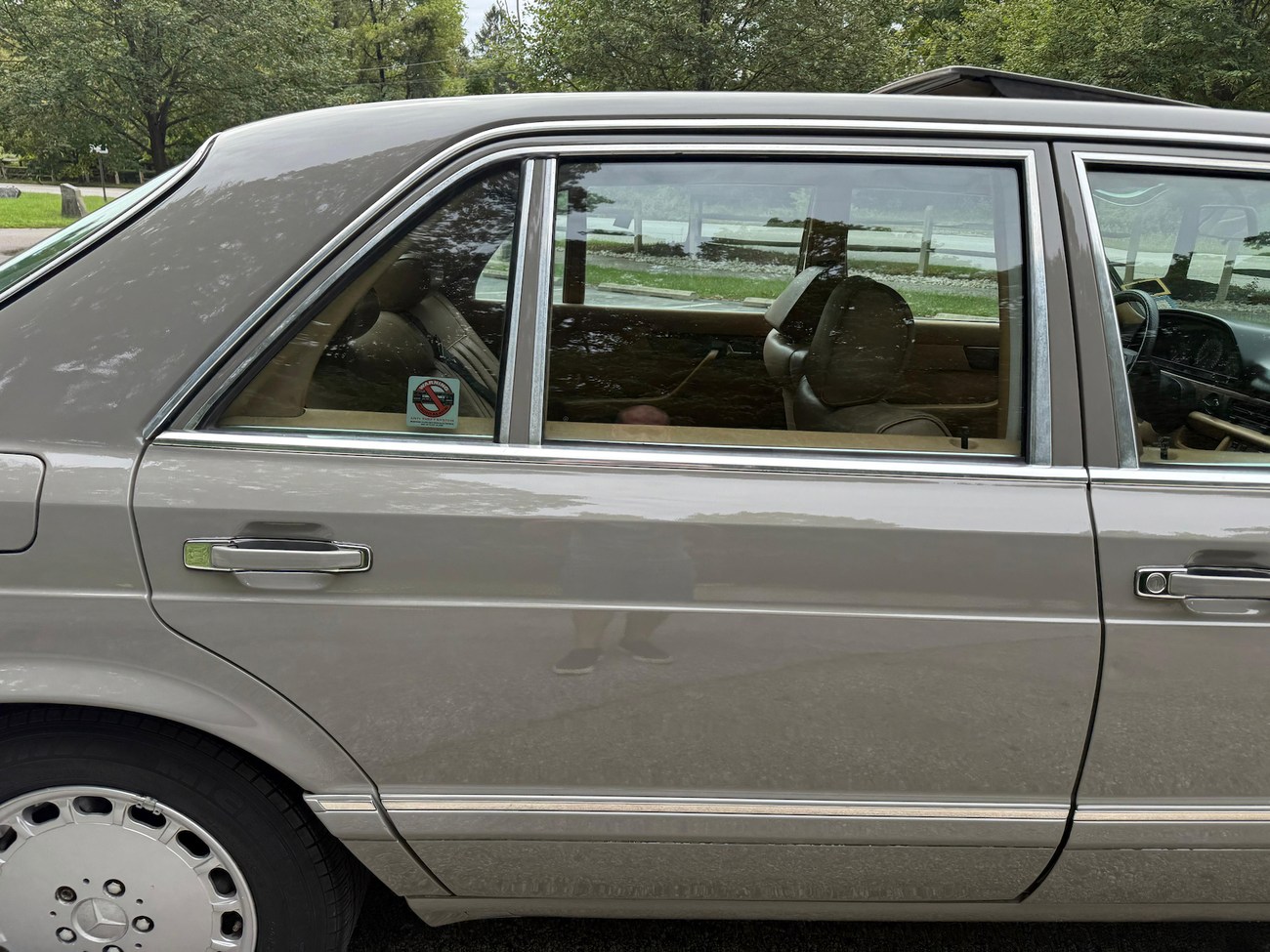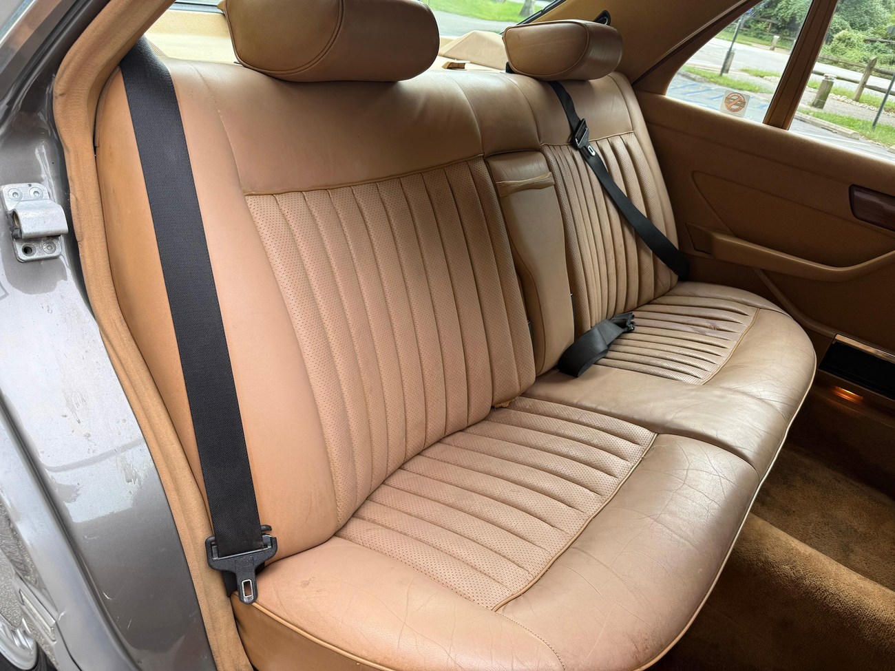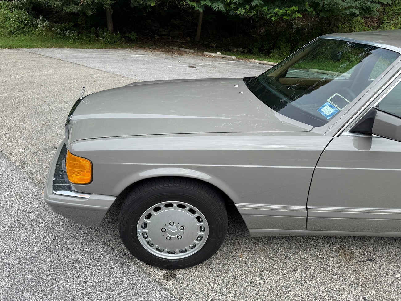 This 1988 Mercedes-Benz 300SEL was sold new in Pennsylvania in January of 1988 and shows registration history in New Jersey, New York, and Pennsylvania. Finished in Anthracite Grey Metallic (172) over Palomino Leather (274), power is provided by a 3.0-liter inline-six linked to a four-speed automatic transmission. Factory equipment includes a power tilt/slide sunroof, a power passenger-side mirror, headlamp wiper/washers, a telescoping steering column, power and heated front seats with memory, automatic climate control and a Boss head unit. The car underwent a full repaint in a different shade within the last year and the most recent service in October 2025 included a new fuel pump, distributor cap, and spark plugs. This 300SEL is now offered for sale by the current owner with a clean Carfax report and a clean Pennsylvania title.