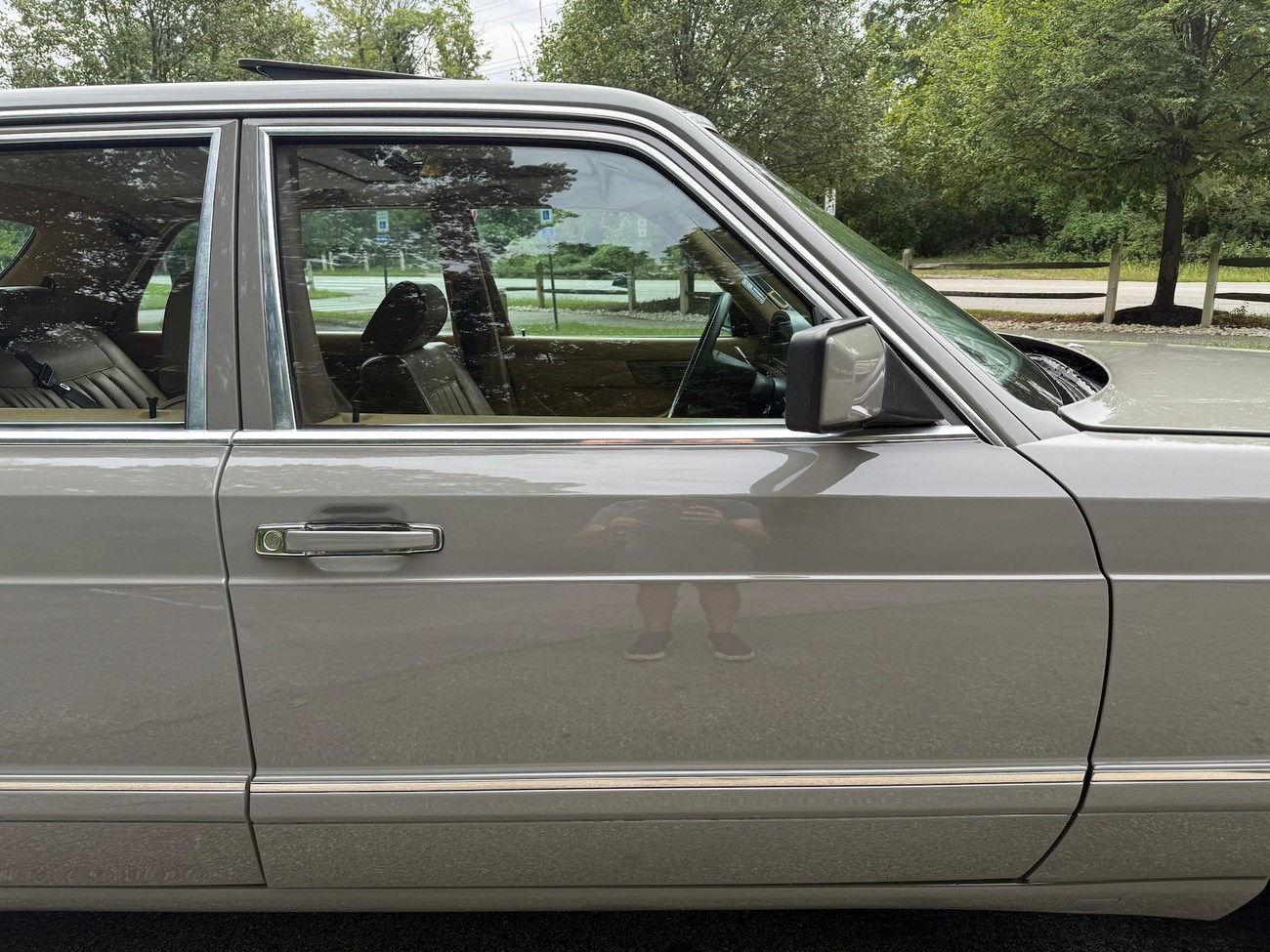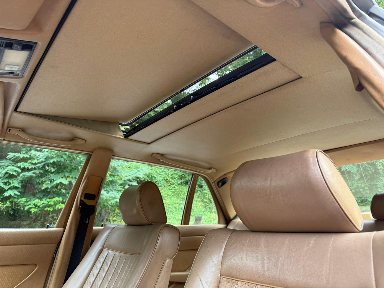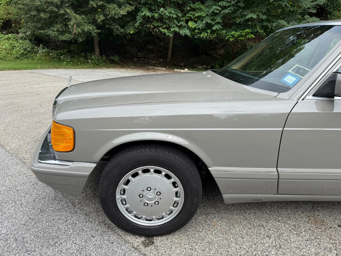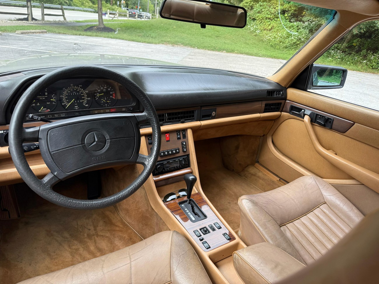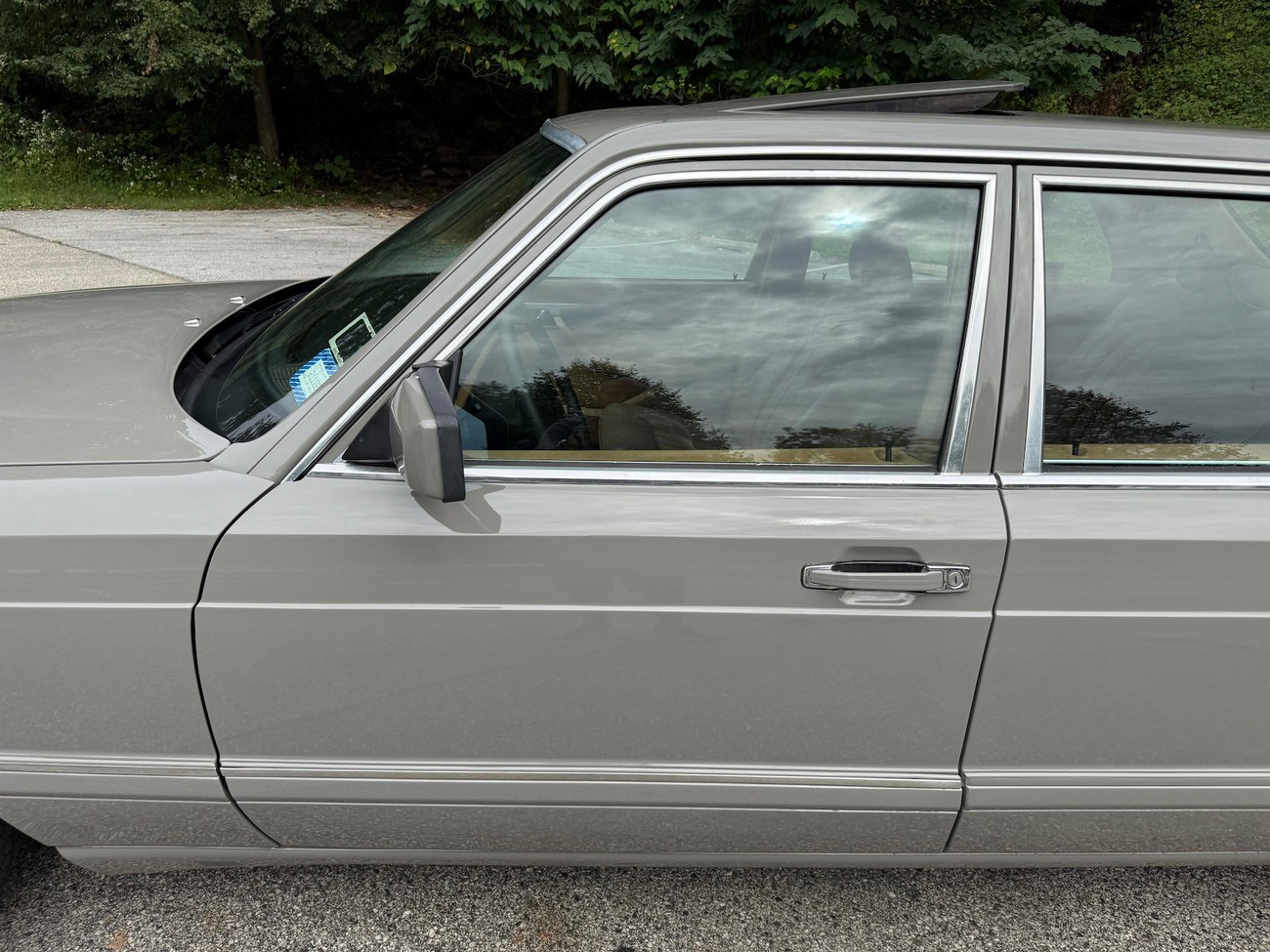 This 1988 Mercedes-Benz 300SEL was sold new in Pennsylvania in January of 1988 and shows registration history in New Jersey, New York, and Pennsylvania. Finished in Anthracite Grey Metallic (172) over Palomino Leather (274), power is provided by a 3.0-liter inline-six linked to a four-speed automatic transmission. Factory equipment includes a power tilt/slide sunroof, a power passenger-side mirror, headlamp wiper/washers, a telescoping steering column, power and heated front seats with memory, automatic climate control and a Boss head unit. The car underwent a full repaint in a different shade within the last year and the most recent service in October 2025 included a new fuel pump, distributor cap, and spark plugs. This 300SEL is now offered for sale by the current owner with a clean Carfax report and a clean Pennsylvania title.