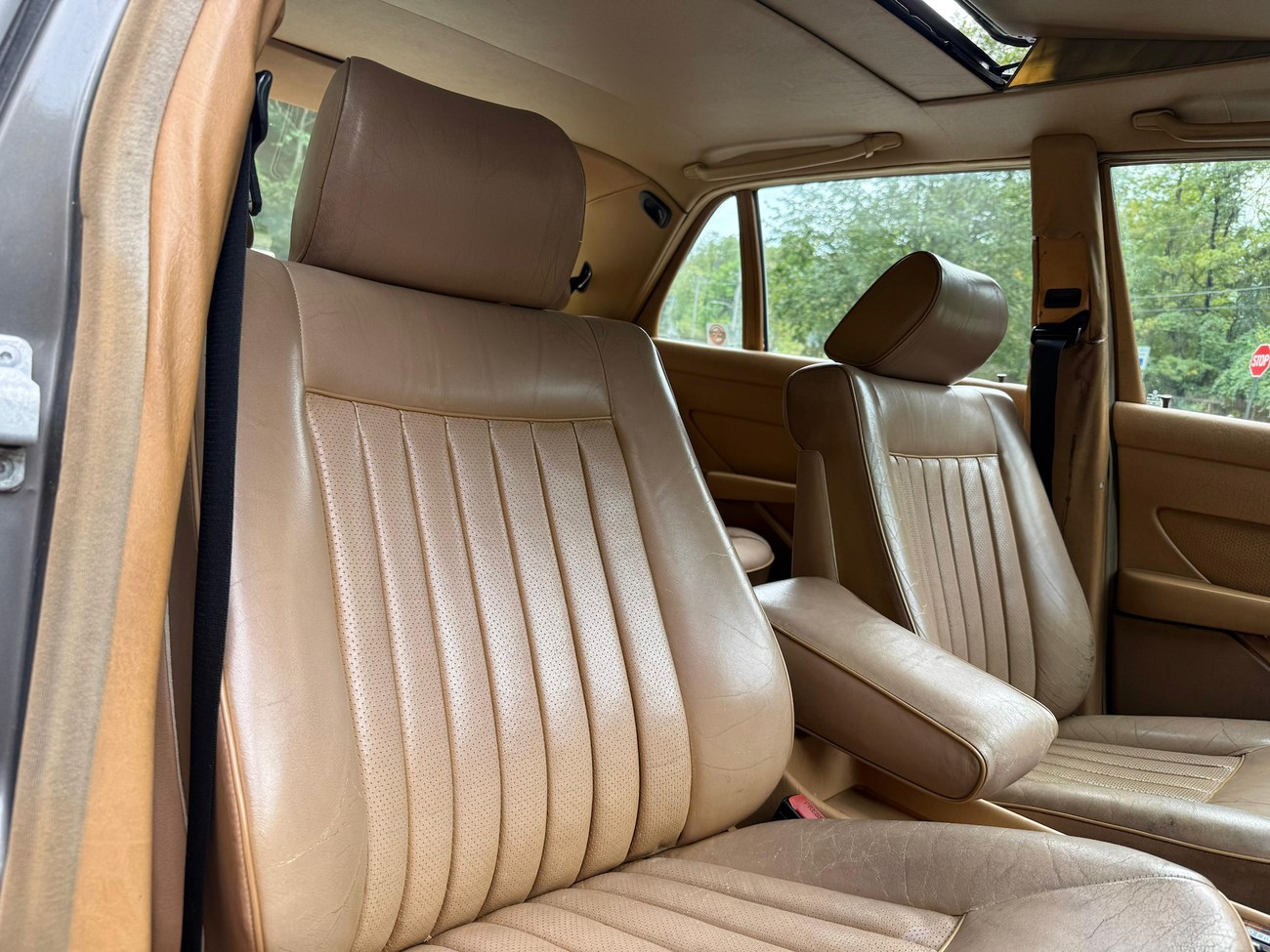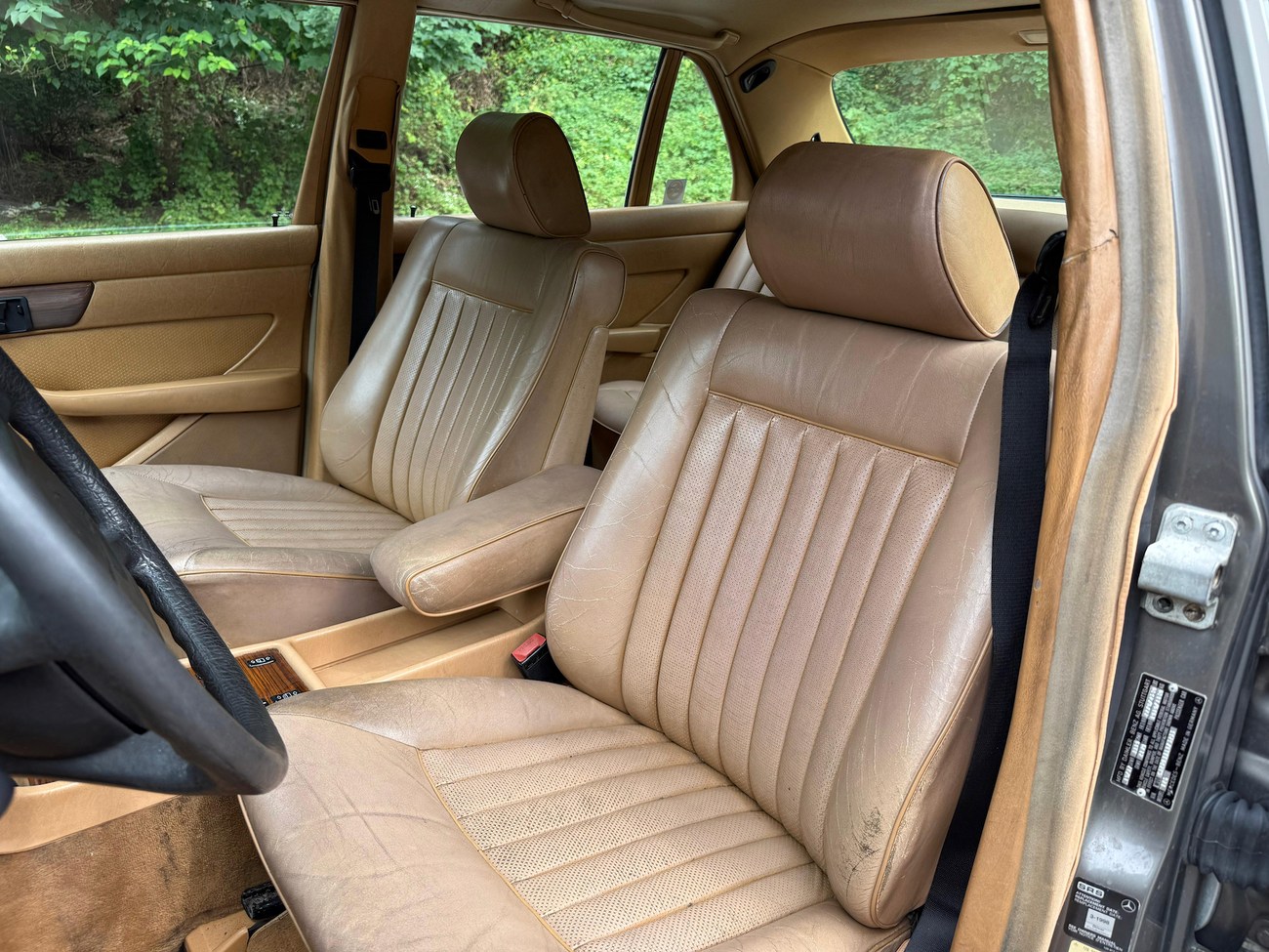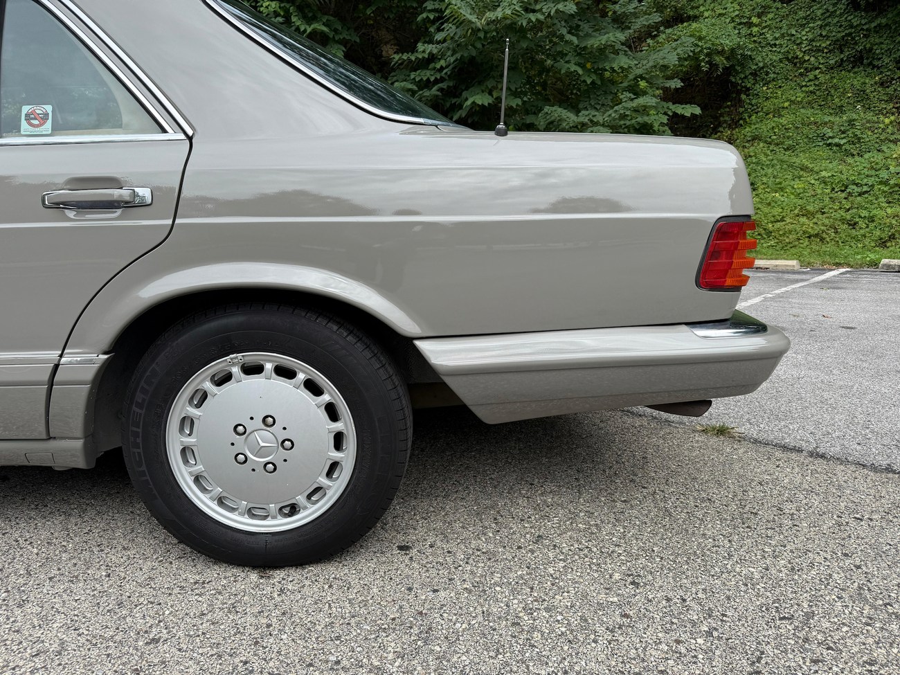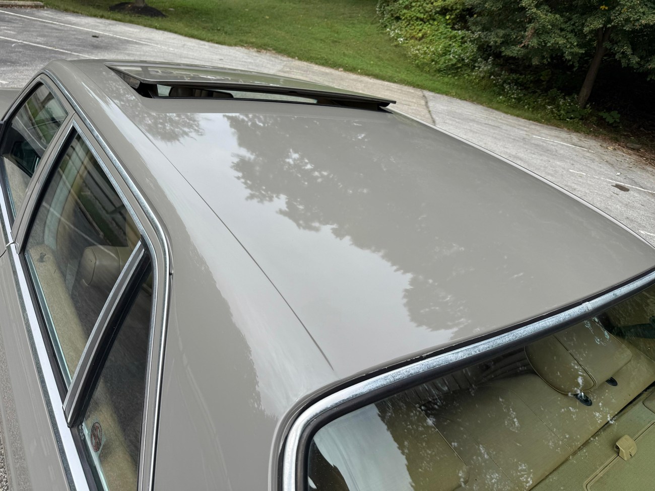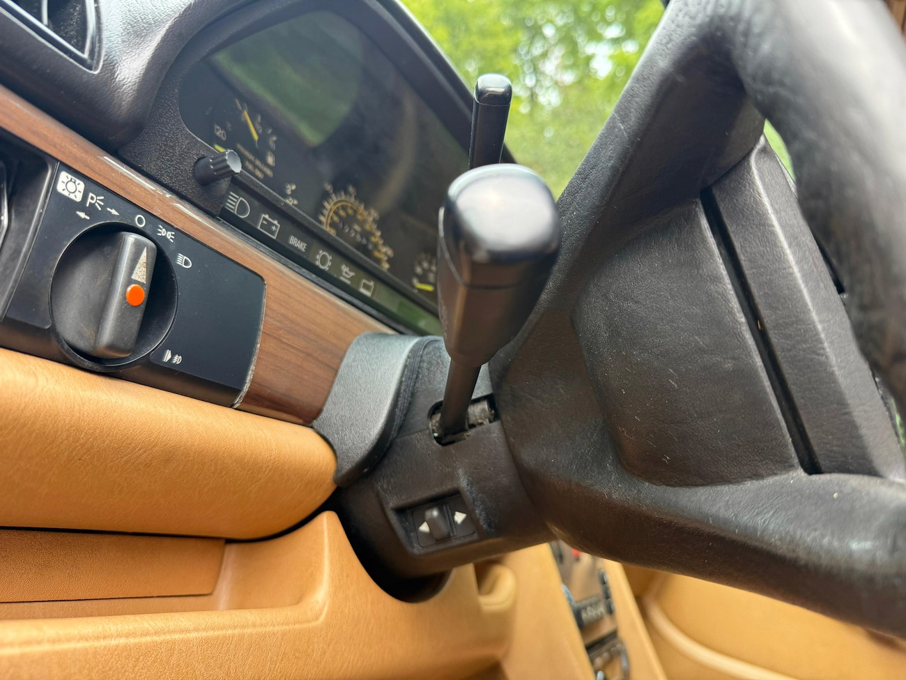 This 1988 Mercedes-Benz 300SEL was sold new in Pennsylvania in January of 1988 and shows registration history in New Jersey, New York, and Pennsylvania. Finished in Anthracite Grey Metallic (172) over Palomino Leather (274), power is provided by a 3.0-liter inline-six linked to a four-speed automatic transmission. Factory equipment includes a power tilt/slide sunroof, a power passenger-side mirror, headlamp wiper/washers, a telescoping steering column, power and heated front seats with memory, automatic climate control and a Boss head unit. The car underwent a full repaint in a different shade within the last year and the most recent service in October 2025 included a new fuel pump, distributor cap, and spark plugs. This 300SEL is now offered for sale by the current owner with a clean Carfax report and a clean Pennsylvania title.