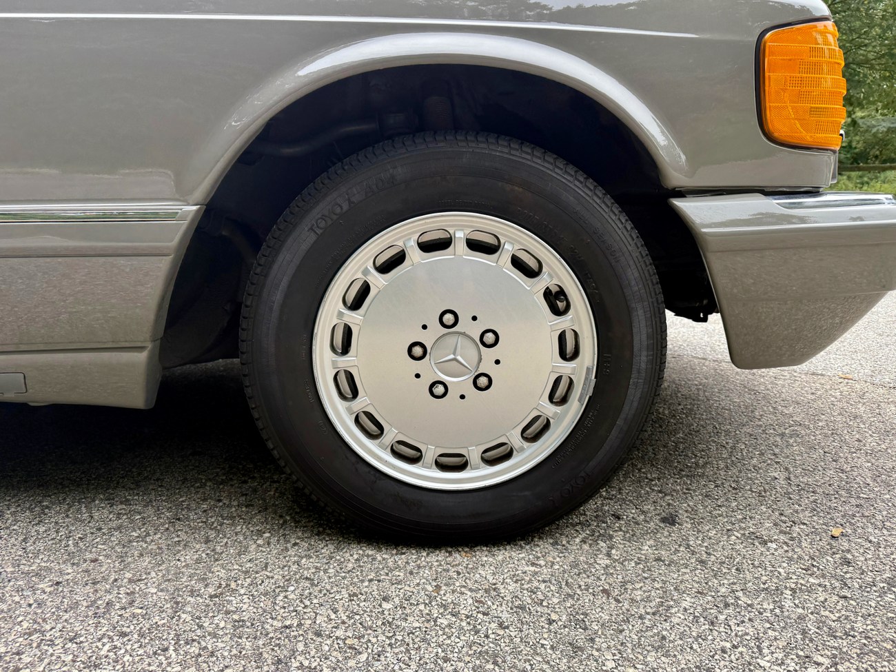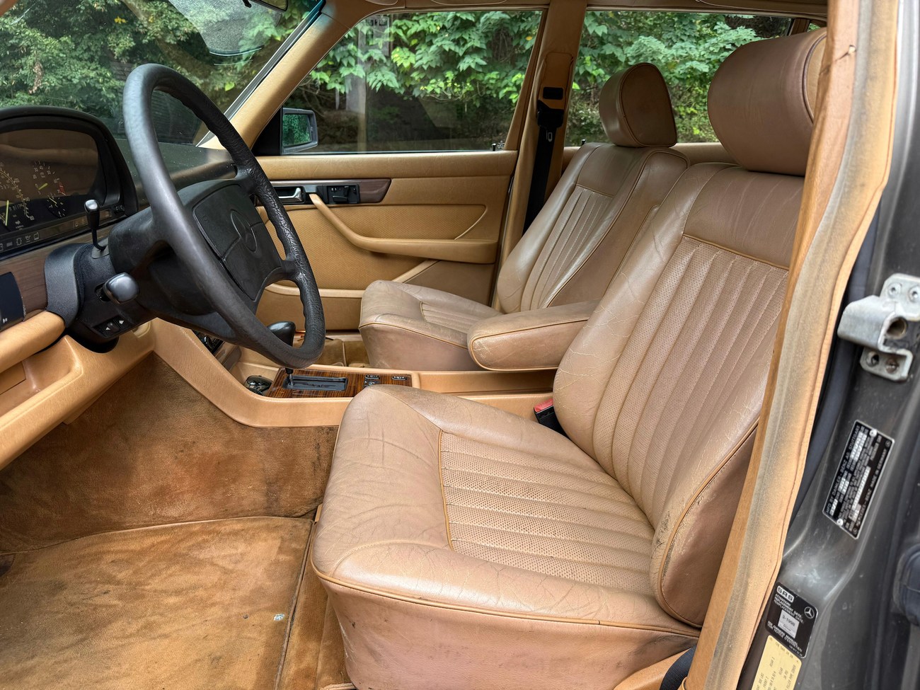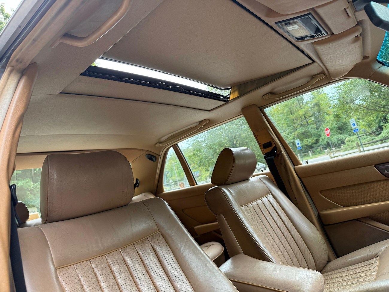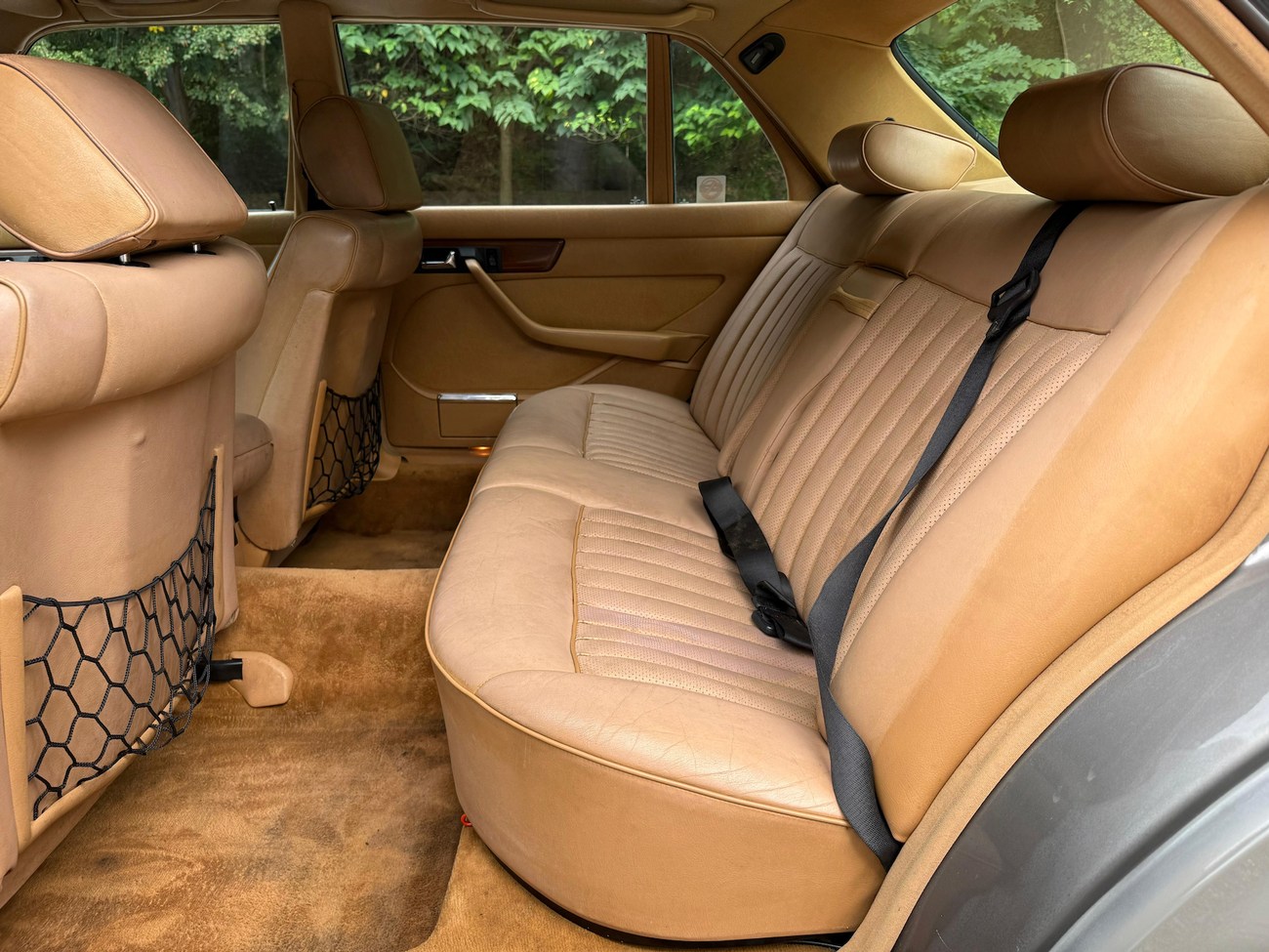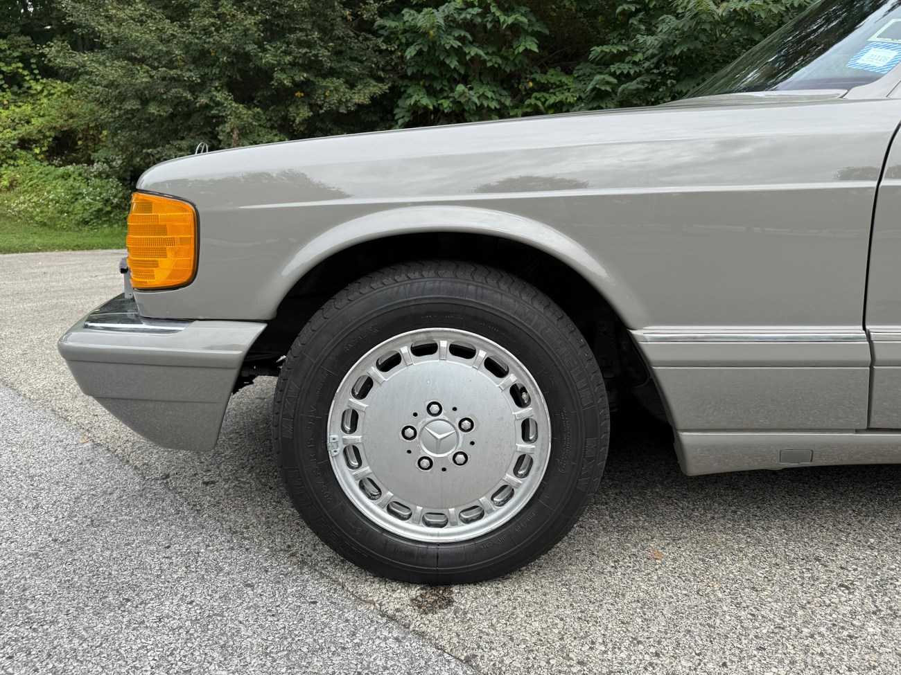 This 1988 Mercedes-Benz 300SEL was sold new in Pennsylvania in January of 1988 and shows registration history in New Jersey, New York, and Pennsylvania. Finished in Anthracite Grey Metallic (172) over Palomino Leather (274), power is provided by a 3.0-liter inline-six linked to a four-speed automatic transmission. Factory equipment includes a power tilt/slide sunroof, a power passenger-side mirror, headlamp wiper/washers, a telescoping steering column, power and heated front seats with memory, automatic climate control and a Boss head unit. The car underwent a full repaint in a different shade within the last year and the most recent service in October 2025 included a new fuel pump, distributor cap, and spark plugs. This 300SEL is now offered for sale by the current owner with a clean Carfax report and a clean Pennsylvania title.