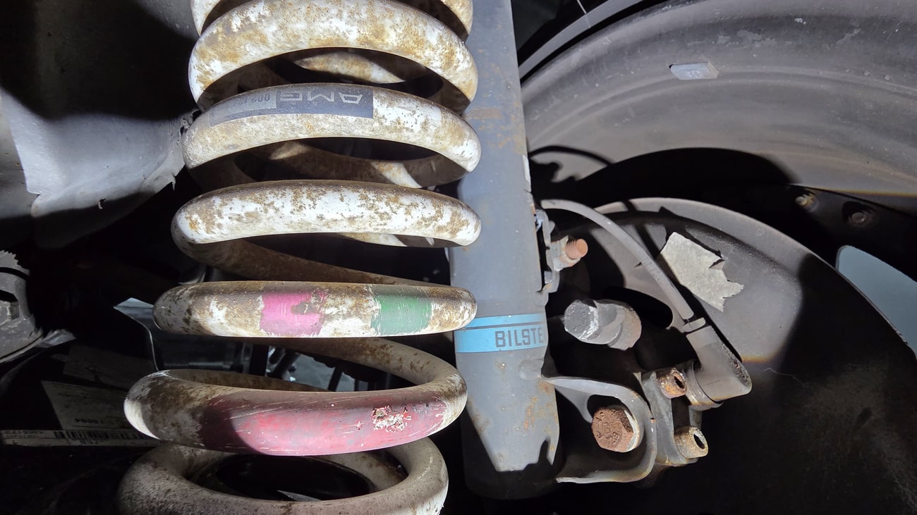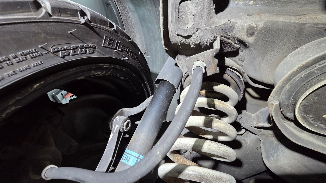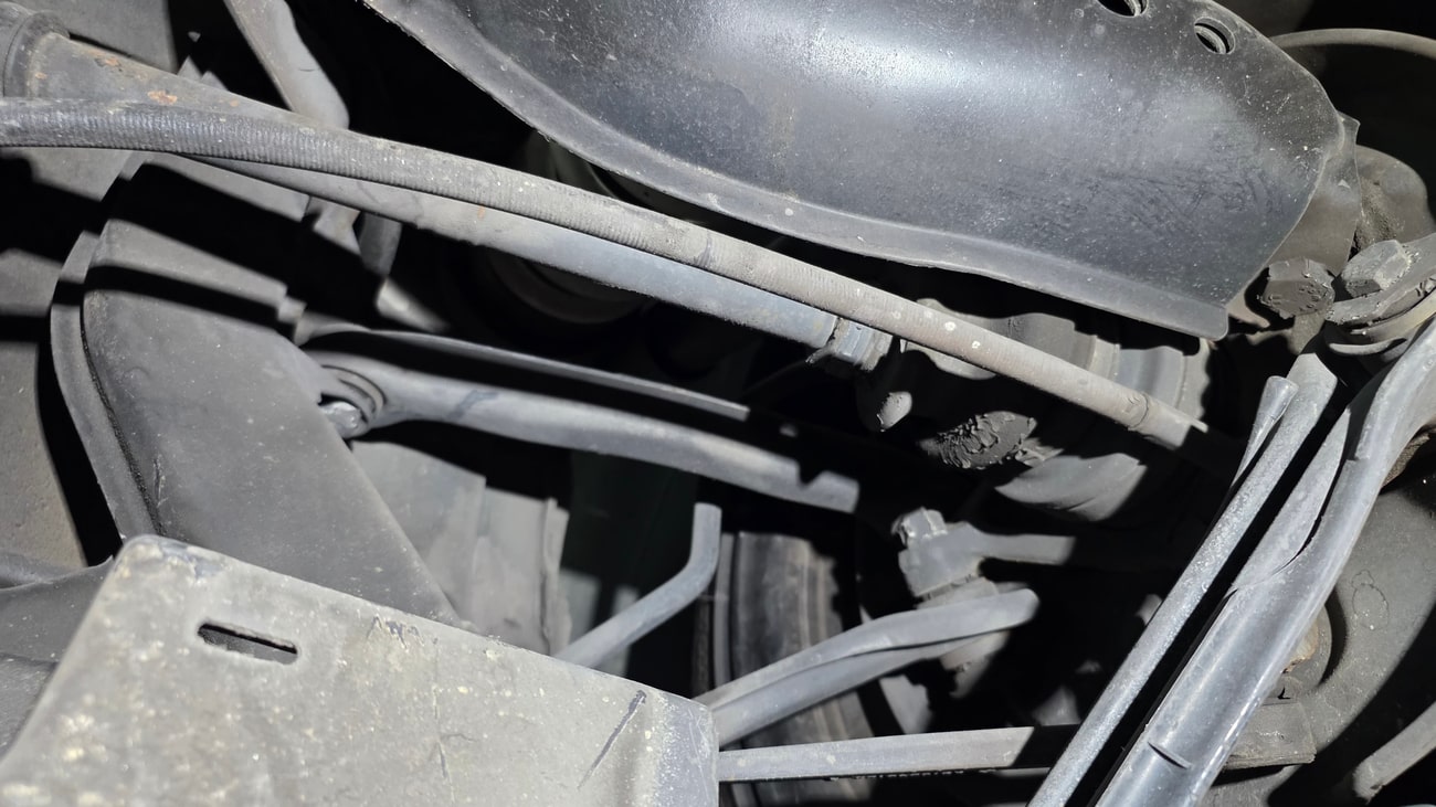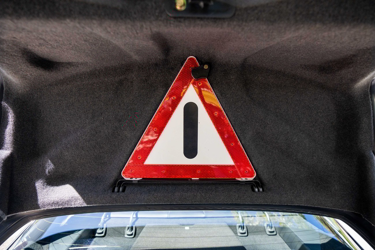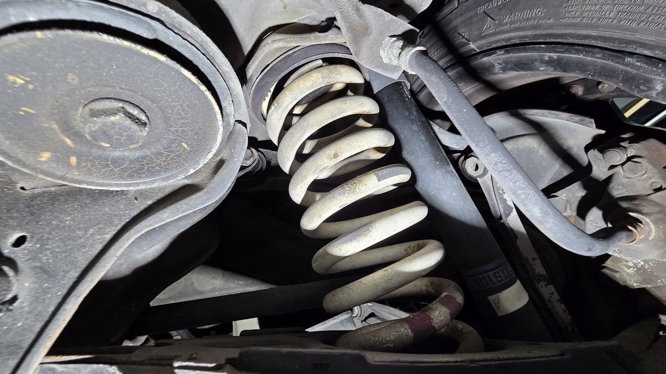 The paint-matched 3-piece 17” AMG Aero III wheels feature original OZ Racing hardware and were resealed in May 2025. BF Goodrich G-Force Comp2 A/S tires are mounted which measure 215/45 up front and 235/45 in the rear. ASR slip control and four-wheel anti-lock disc brakes are fitted as standard. The AMG suspension includes white springs and Bilstein shocks. New control arms and bump stops were installed in 2021. A brake fluid flush was performed in September 2025.