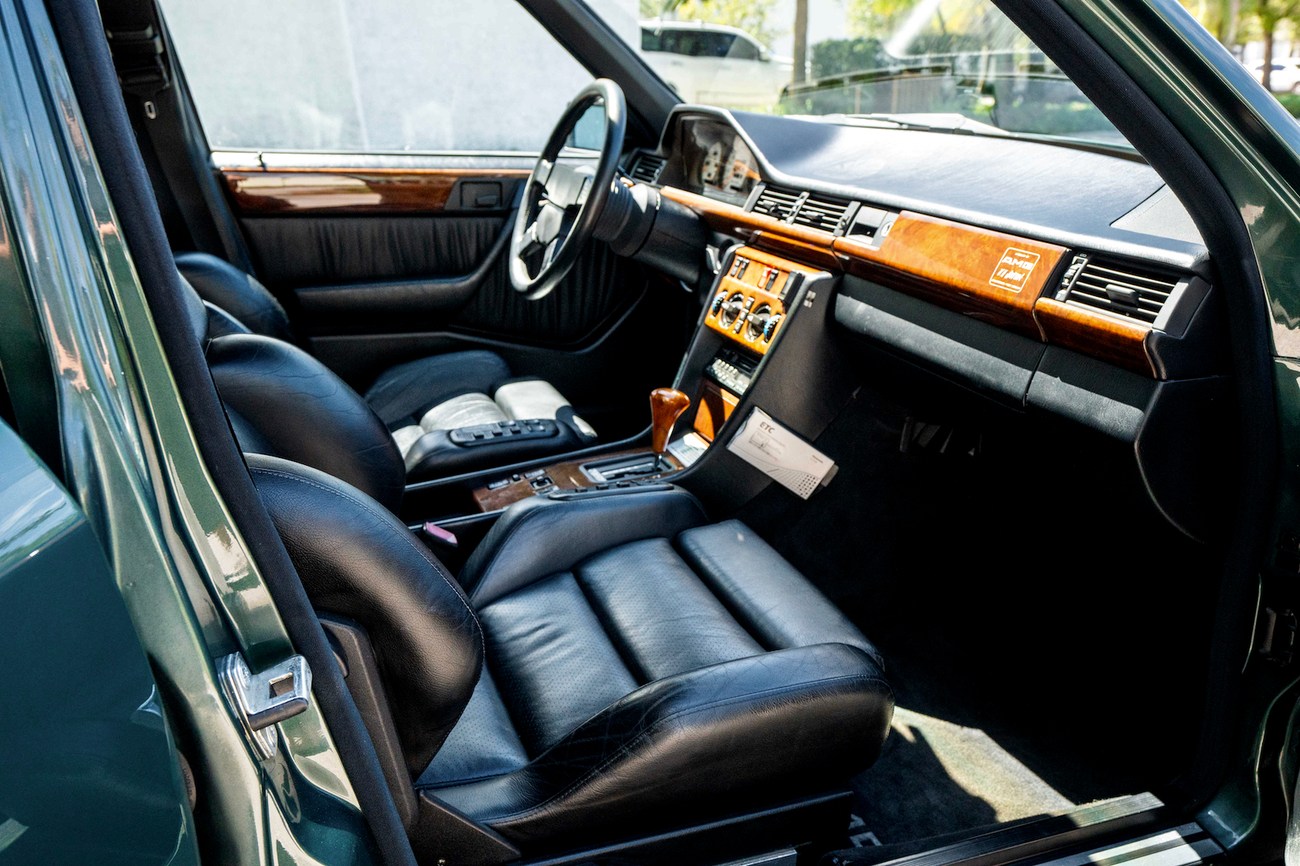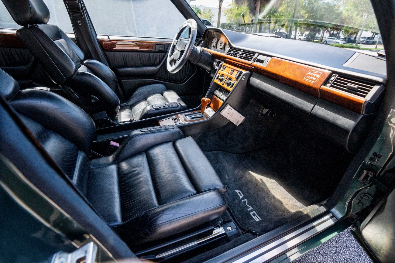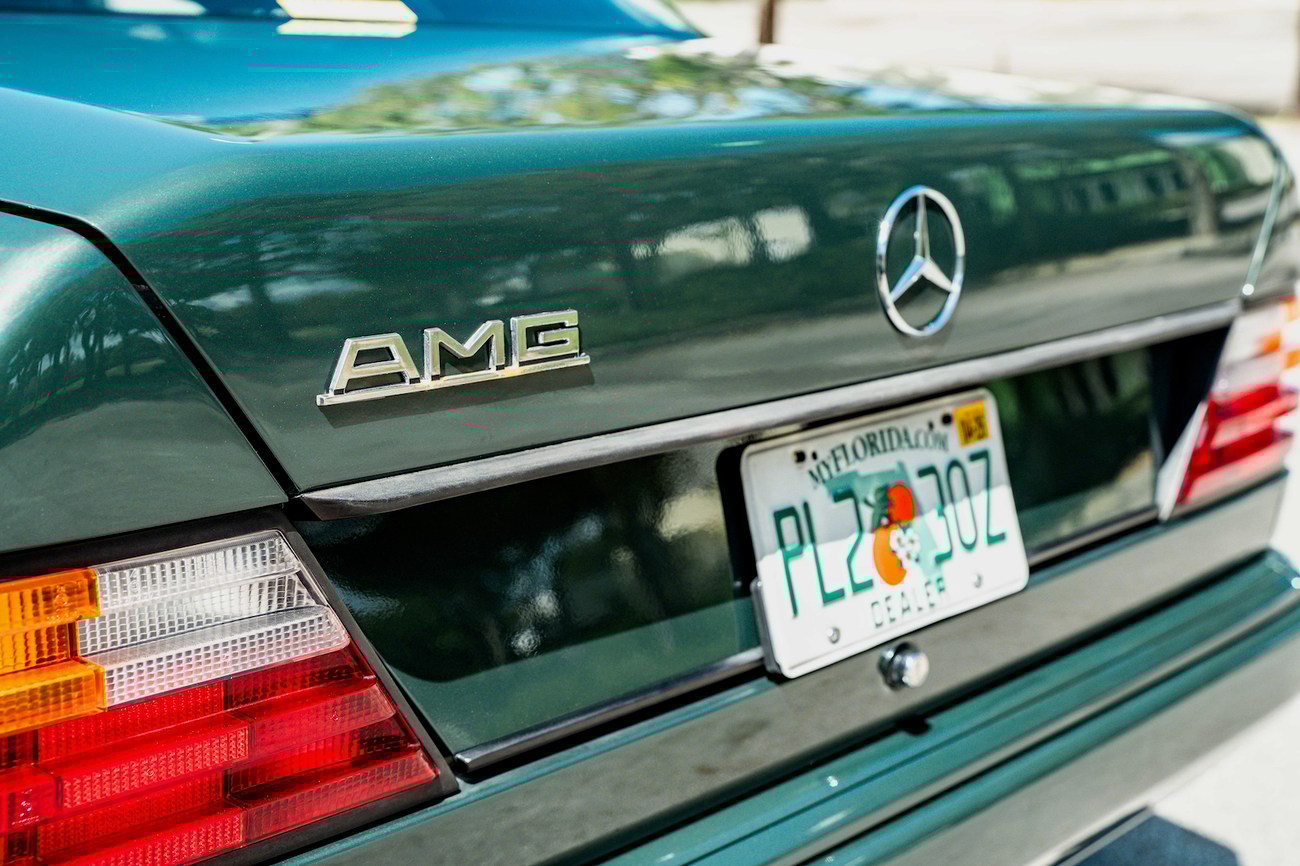 Perhaps the most bang-for-your-buck to be had today in the collector car world, the W124 AMG's have become widely recognized as some of the best AMG builds to ever be produced. The premerger era of AMG was the wild west of tuning and produced some of the most interesting cars. AMG developed the legendary Hammer 6.0L version of this car which was record-breaking at the time, beating even the most exotic of sports cars. This unique W124 3.4L was built by AMG Japan and comes in a stunning Pine Green Metallic paint and paint-matched multi-piece OZ Aero III wheels, an AMG gauge cluster, AMG exhaust, AMG suspension, additional interior wood, Momo M38 steering wheel, and Recaro Classic seats. The bored and stroked 3.4-liter M104 delivers an impressive 268 horsepower in a time when other straight sixes struggled to break 200. Interestingly, this car was ordered without the AMG body kit making it a top tier sleeper. Ordering perfomance enhanced AMG's without the body kit was suprisingly popular in period. No matter the owners preference, you could check as many or as little boxes in the AMG catalog as your heart desired, or as your wallet could afford. As collectors fine tune their appetite today, color has become one of the strongest determination of value; and rightfully so. We wouldn't mind if all of our cars were Pine Green. From the sleeper status to the well-appointed interior and beefed up 3.4 under the hood, this W124 AMG required taste and style to own.