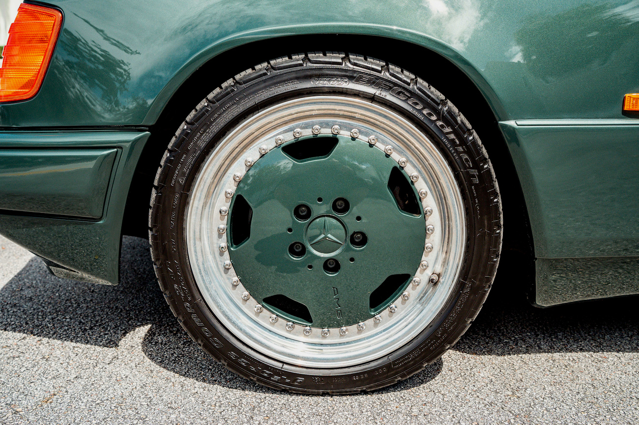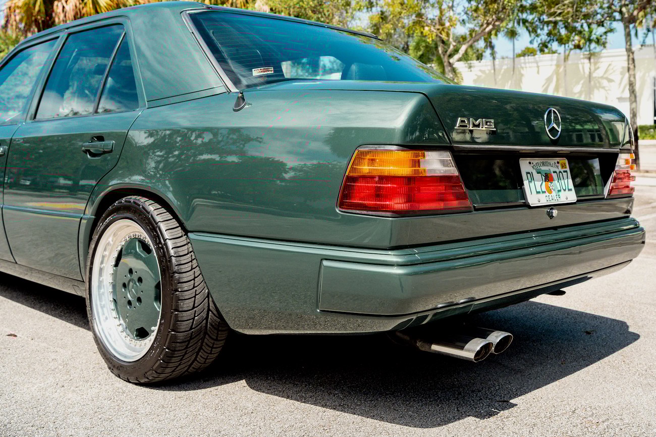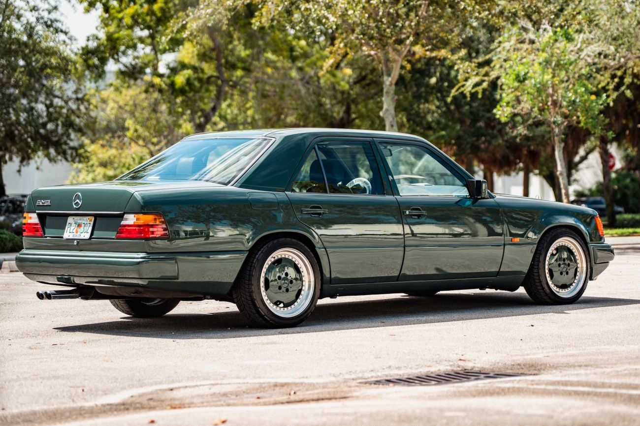 Perhaps the most bang-for-your-buck to be had today in the collector car world, the W124 AMG's have become widely recognized as some of the best AMG builds to ever be produced. The premerger era of AMG was the wild west of tuning and produced some of the most interesting cars. AMG developed the legendary Hammer 6.0L version of this car which was record-breaking at the time, beating even the most exotic of sports cars. This unique W124 3.4L was built by AMG Japan and comes in a stunning Pine Green Metallic paint and paint-matched multi-piece OZ Aero III wheels, an AMG gauge cluster, AMG exhaust, AMG suspension, additional interior wood, Momo M38 steering wheel, and Recaro Classic seats. The bored and stroked 3.4-liter M104 delivers an impressive 268 horsepower in a time when other straight sixes struggled to break 200. Interestingly, this car was ordered without the AMG body kit making it a top tier sleeper. Ordering perfomance enhanced AMG's without the body kit was suprisingly popular in period. No matter the owners preference, you could check as many or as little boxes in the AMG catalog as your heart desired, or as your wallet could afford. As collectors fine tune their appetite today, color has become one of the strongest determination of value; and rightfully so. We wouldn't mind if all of our cars were Pine Green. From the sleeper status to the well-appointed interior and beefed up 3.4 under the hood, this W124 AMG required taste and style to own.