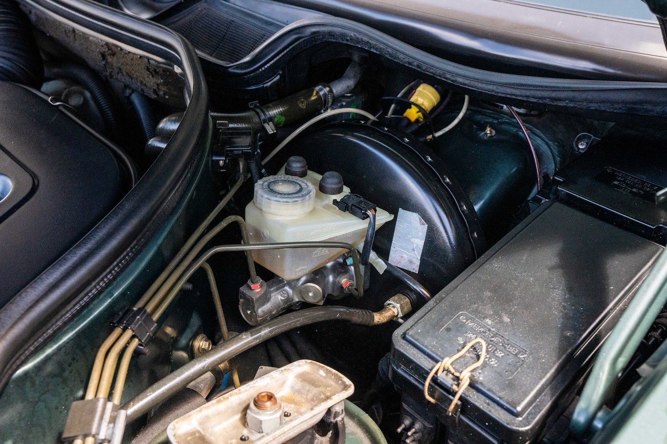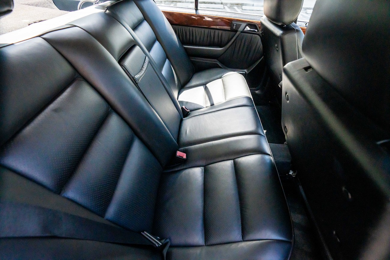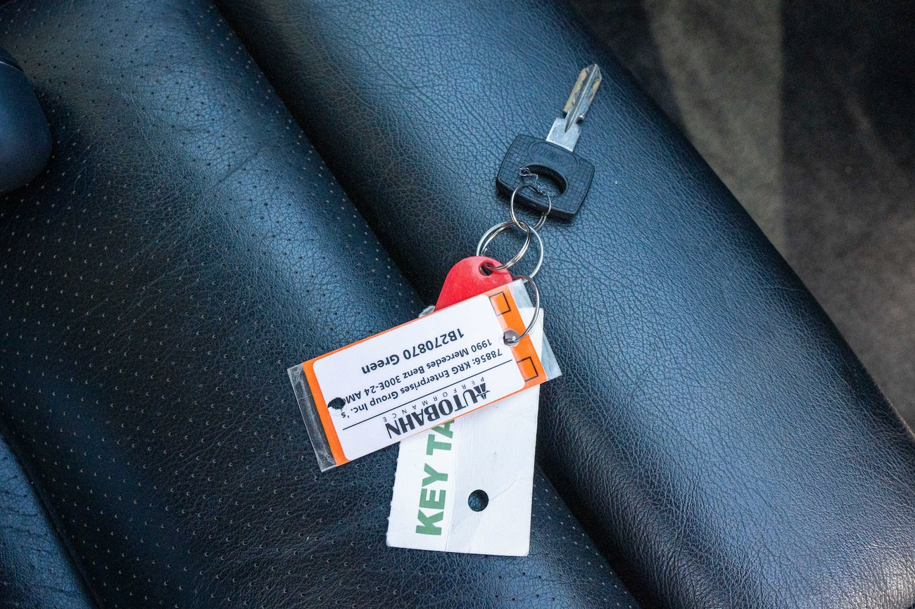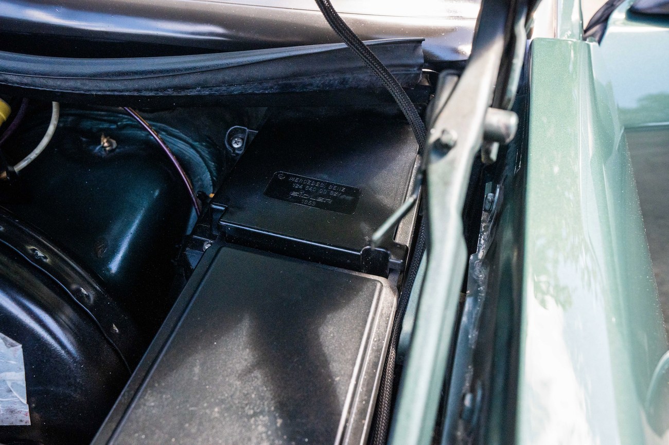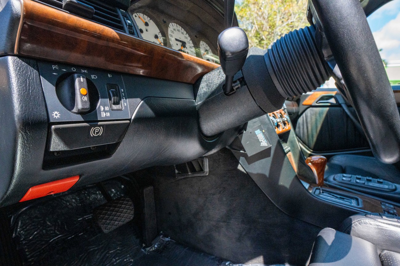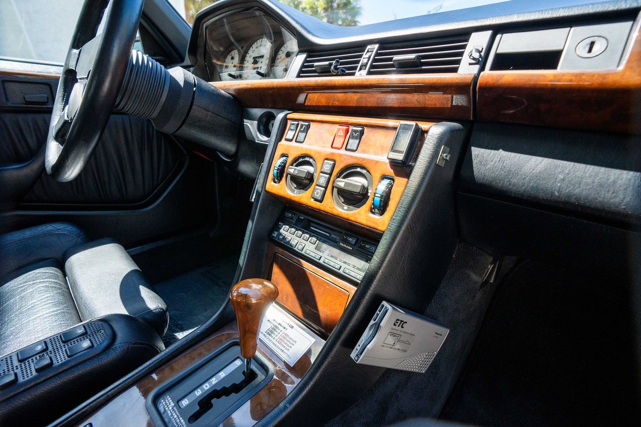 The original 3.0-liter M104 inline-six was bored and stroked to 3.4 liters by AMG in Japan and fitted with custom AMG camshafts which help the engine produce 268 horsepower and 243 lb-ft of torque. Power is sent to the rear wheels through a four-speed automatic transmission. Service upon import in late 2020/early 2021 included all fresh fluids, new tires, engine mounts, transmission mounts, control arms and bump stops. In preparation for the sale, the seller performed a full service on the car which included a top off of all fluids, an oil and filter change, new air filter, new battery, a brake fluid flush and bleed at all calipers, and an A/C R134 recharge. A new hood pad was installed in 2022. The AMG exhaust is stamped and made by Sebring with authentic period correct tips. AMG stickers denoting the engine modifications are found on the valve cover and radiator support.