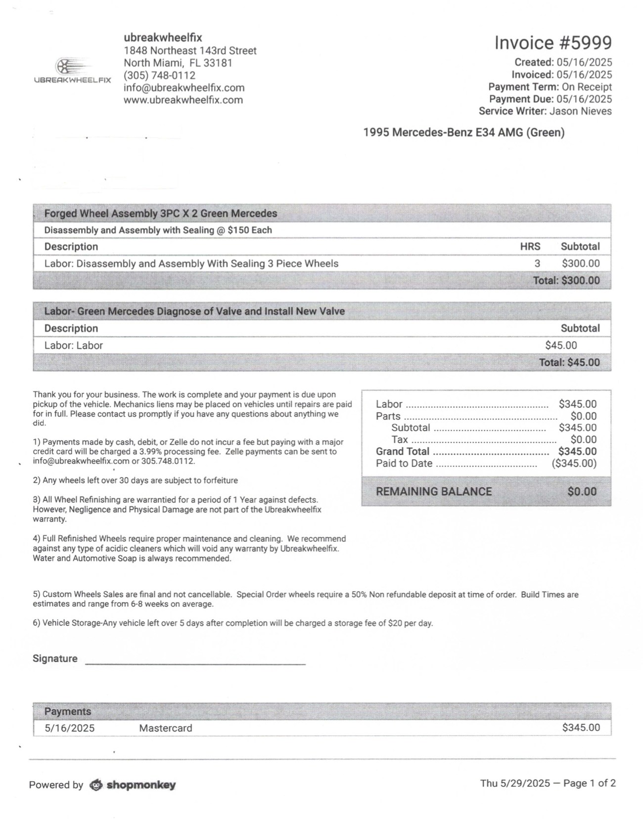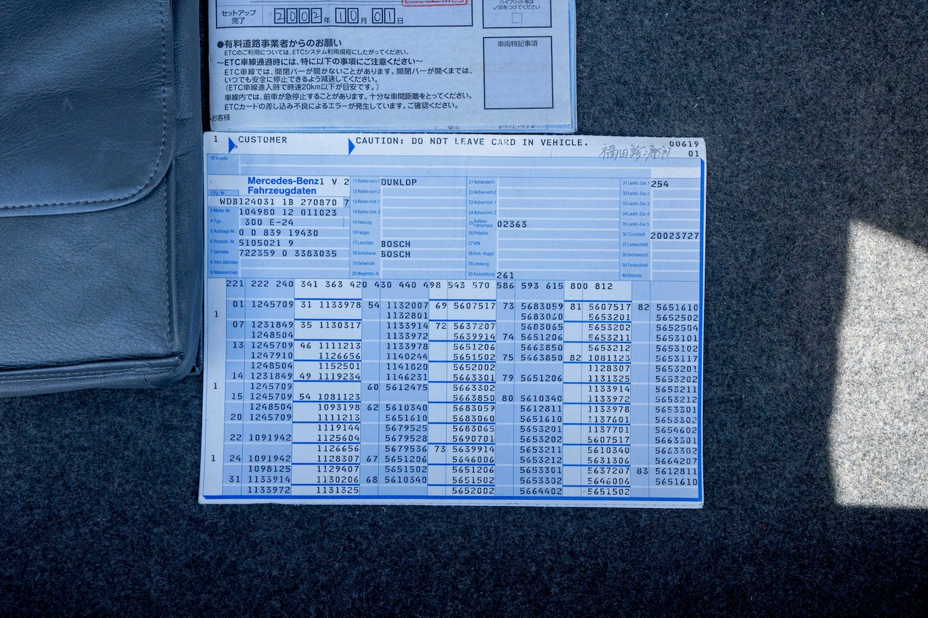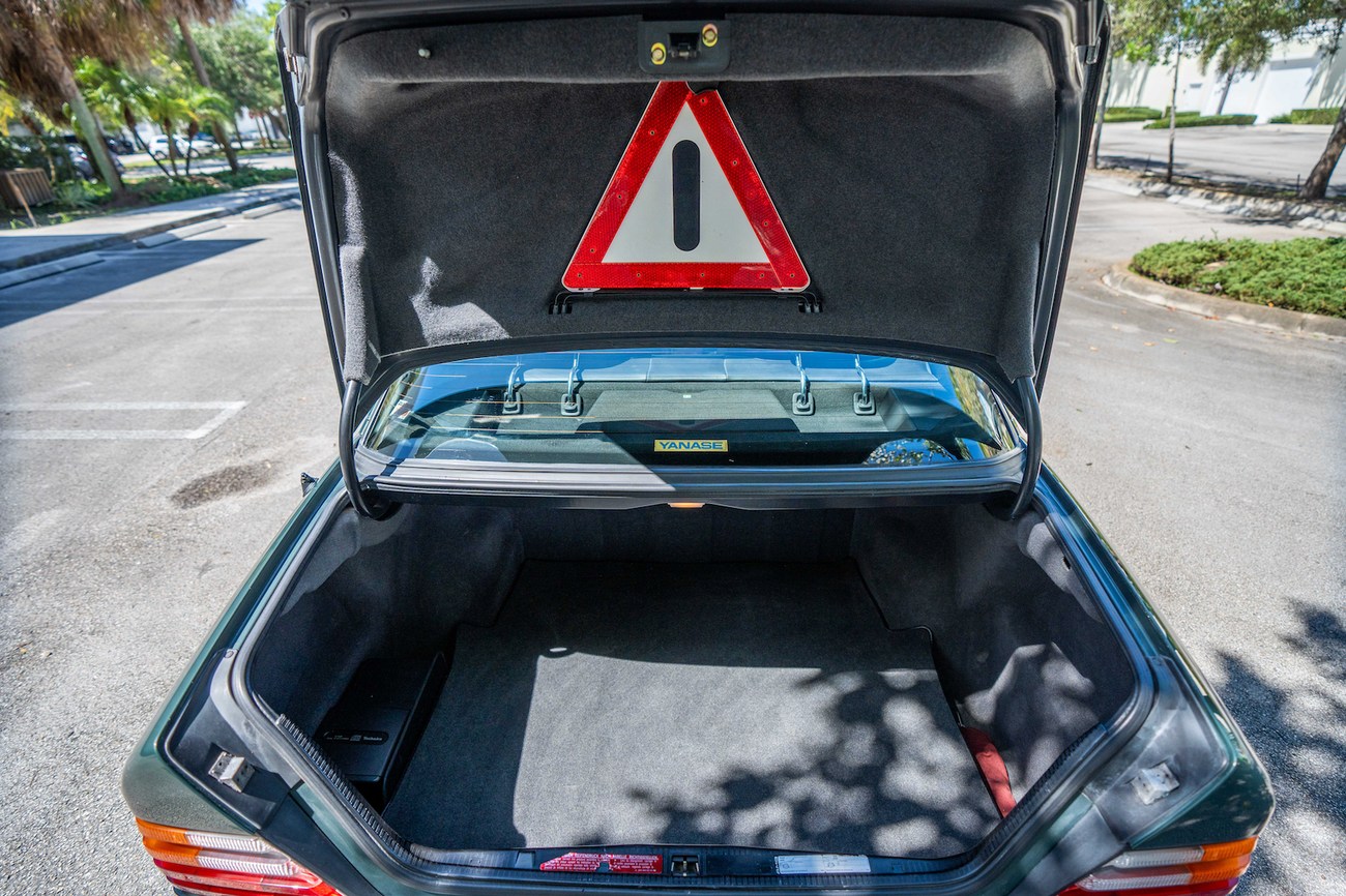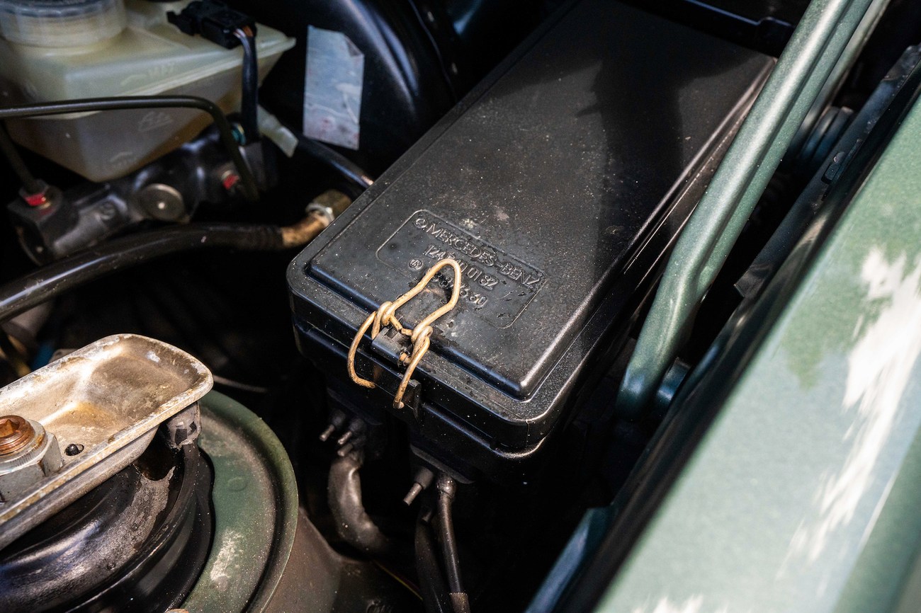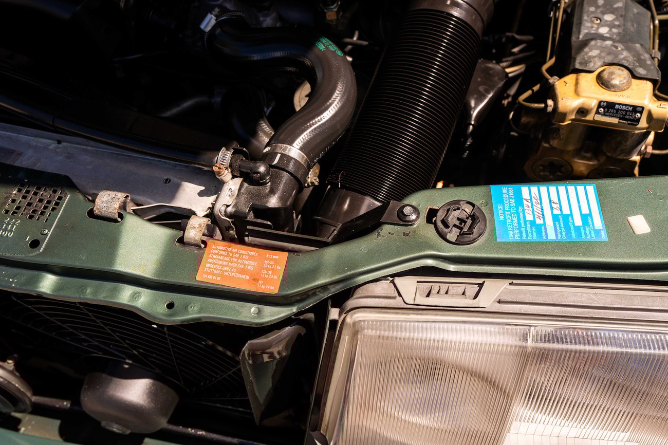 The original 3.0-liter M104 inline-six was bored and stroked to 3.4 liters by AMG in Japan and fitted with custom AMG camshafts which help the engine produce 268 horsepower and 243 lb-ft of torque. Power is sent to the rear wheels through a four-speed automatic transmission. Service upon import in late 2020/early 2021 included all fresh fluids, new tires, engine mounts, transmission mounts, control arms and bump stops. In preparation for the sale, the seller performed a full service on the car which included a top off of all fluids, an oil and filter change, new air filter, new battery, a brake fluid flush and bleed at all calipers, and an A/C R134 recharge. A new hood pad was installed in 2022. The AMG exhaust is stamped and made by Sebring with authentic period correct tips. AMG stickers denoting the engine modifications are found on the valve cover and radiator support.