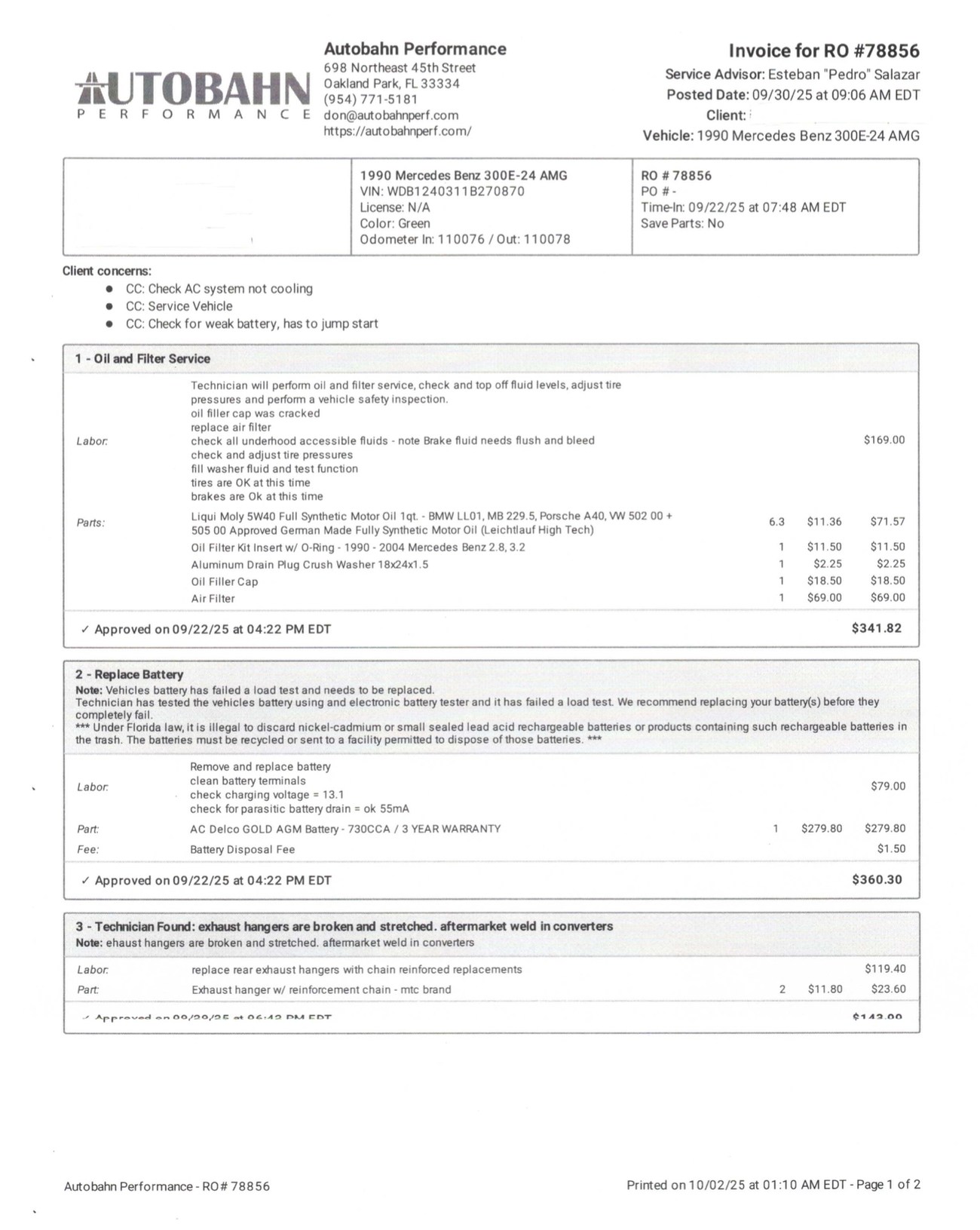 The car comes with service records under the seller's care. Underbody photos showing the AMG suspension and exhaust are provided in the gallery. The Carfax report shows first entry upon import into the United States in September 2020 and an entry from the seller's acquisition in May 2021. This 3.4 AMG is now offered with manufacturer's literature, AMG owner's manual and leather cover, service records, a clean Carfax report, and a clean Florida title.