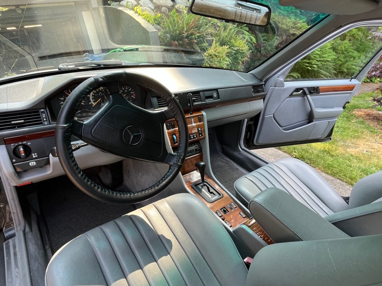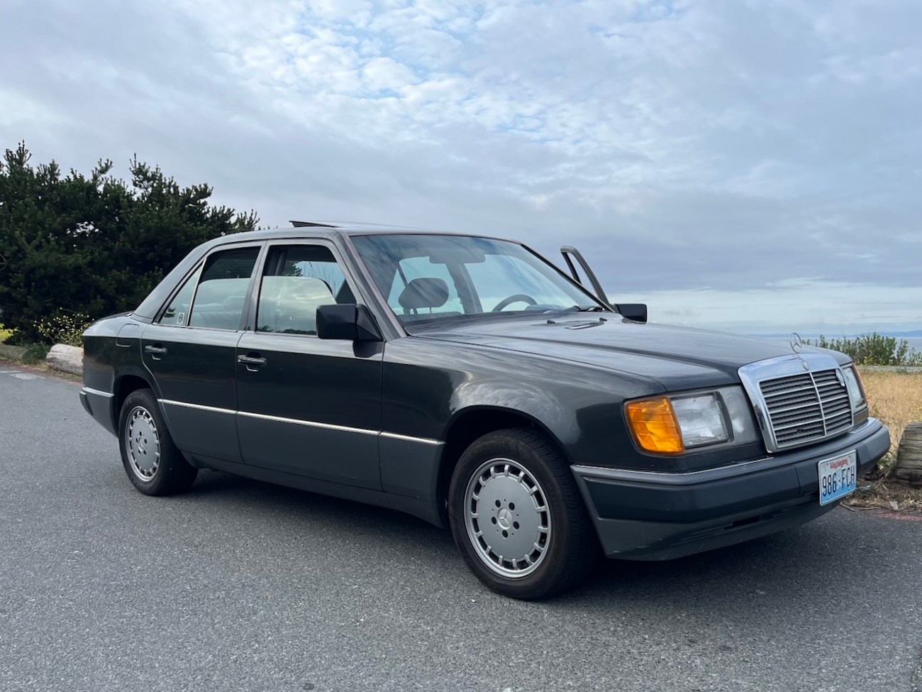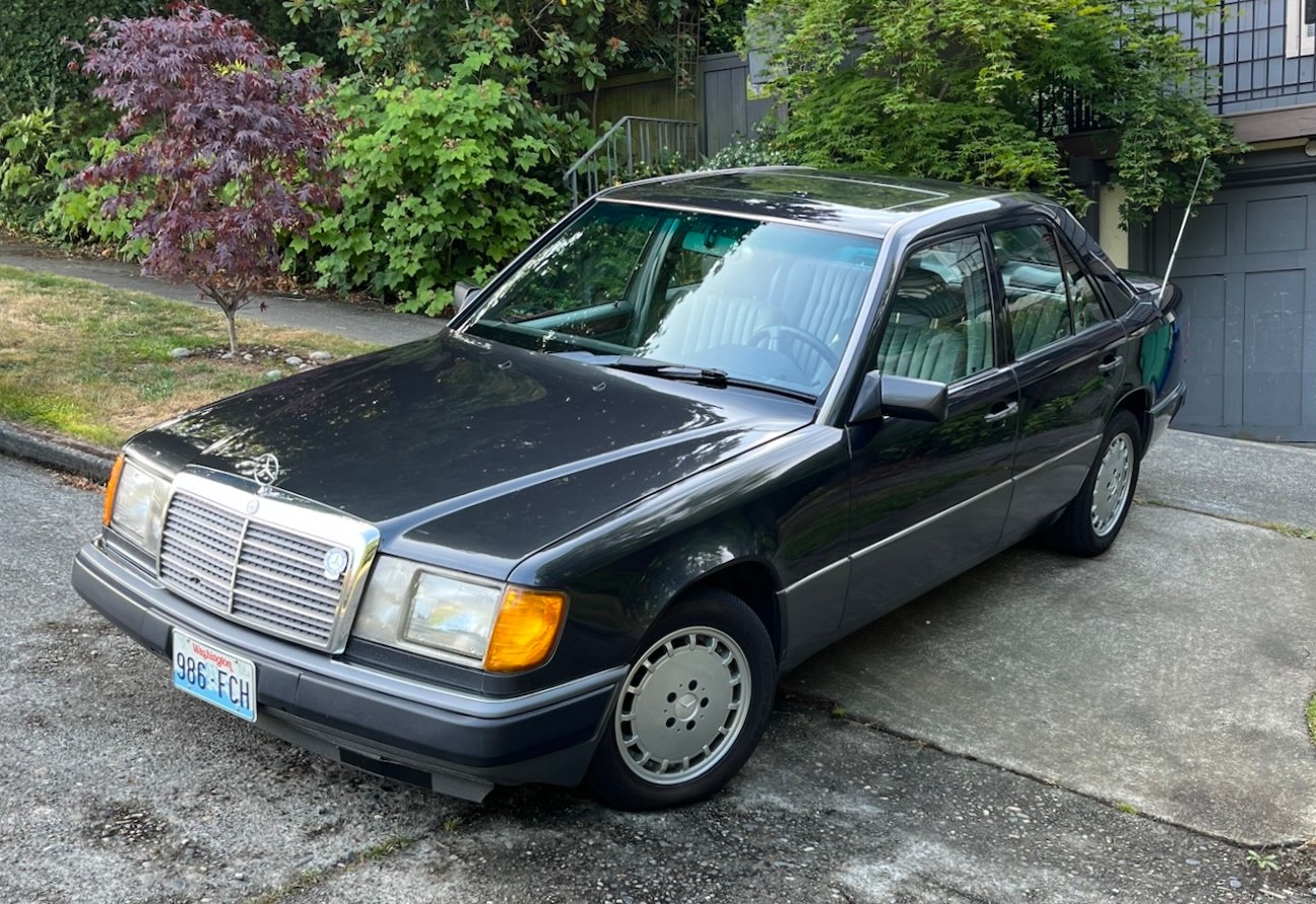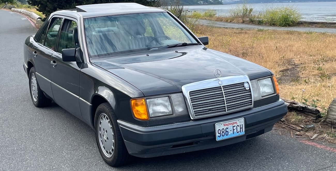 This 1992 Mercedes-Benz 300E shows one owner until 2024 with Oregon and Washington registrations since new. The current owner and seller purchased the car in December of 2024 and has added several hundred miles. It now shows 313k original miles and wears a 500km high-mileage award badge. Finished in Black Pearl Metallic (199) over Gray MB-Tex (178), power is provided by a 2.6-liter inline-six mated to a four-speed automatic transmission driving the rear wheels. Equipment includes a power sliding sunroof, power front seats, cruise control, automatic climate control, a power-adjustable steering column, and an OEM Becker head unit. The included Carfax report shows a few service history records and the car does benefit from an updated wiring harness. The seller reports new suspension and a recent oil service. This 300E is now offered for sale by the current owner in Seattle, Washington with a clean Carfax report and a clean Washington title.