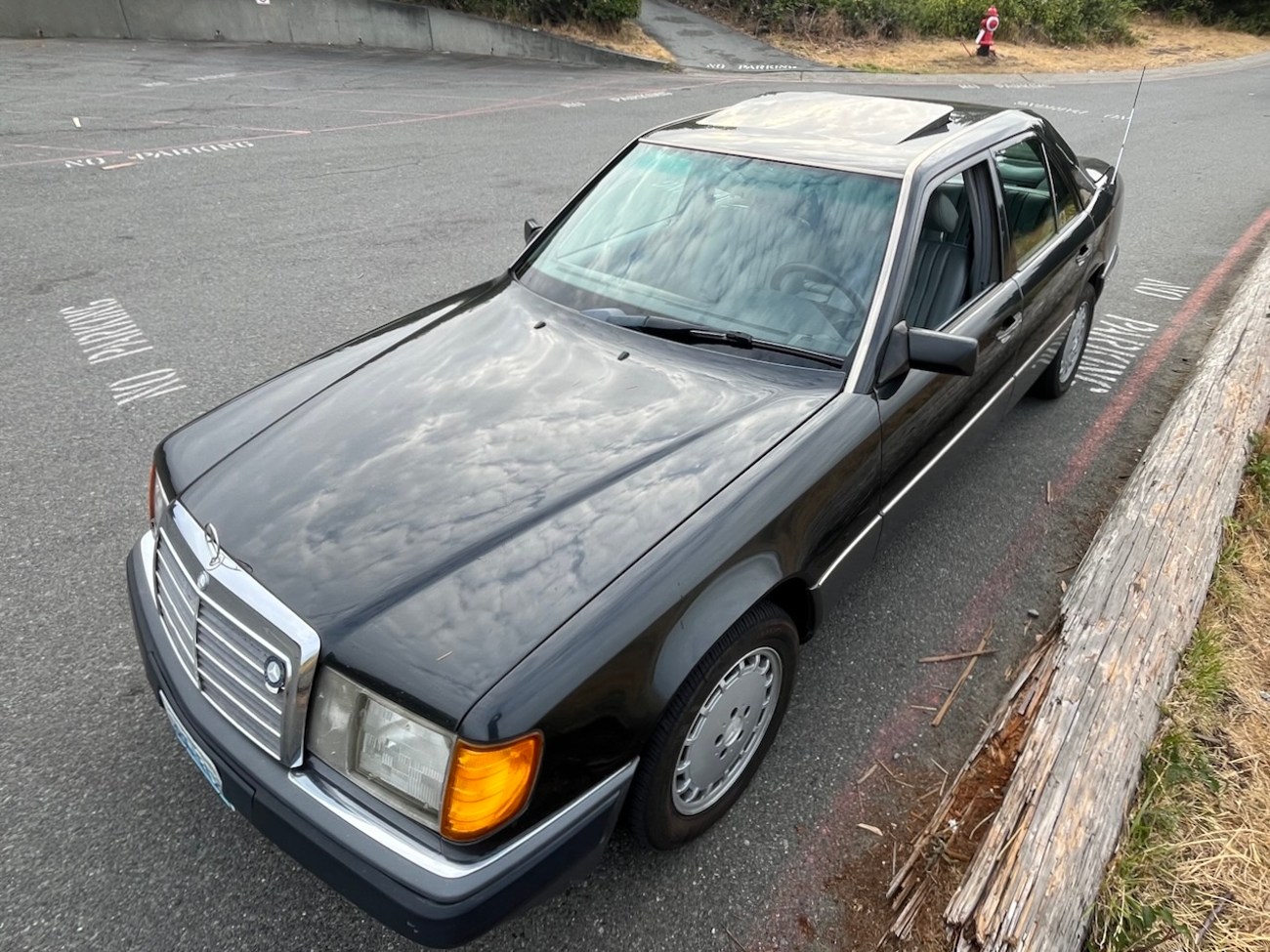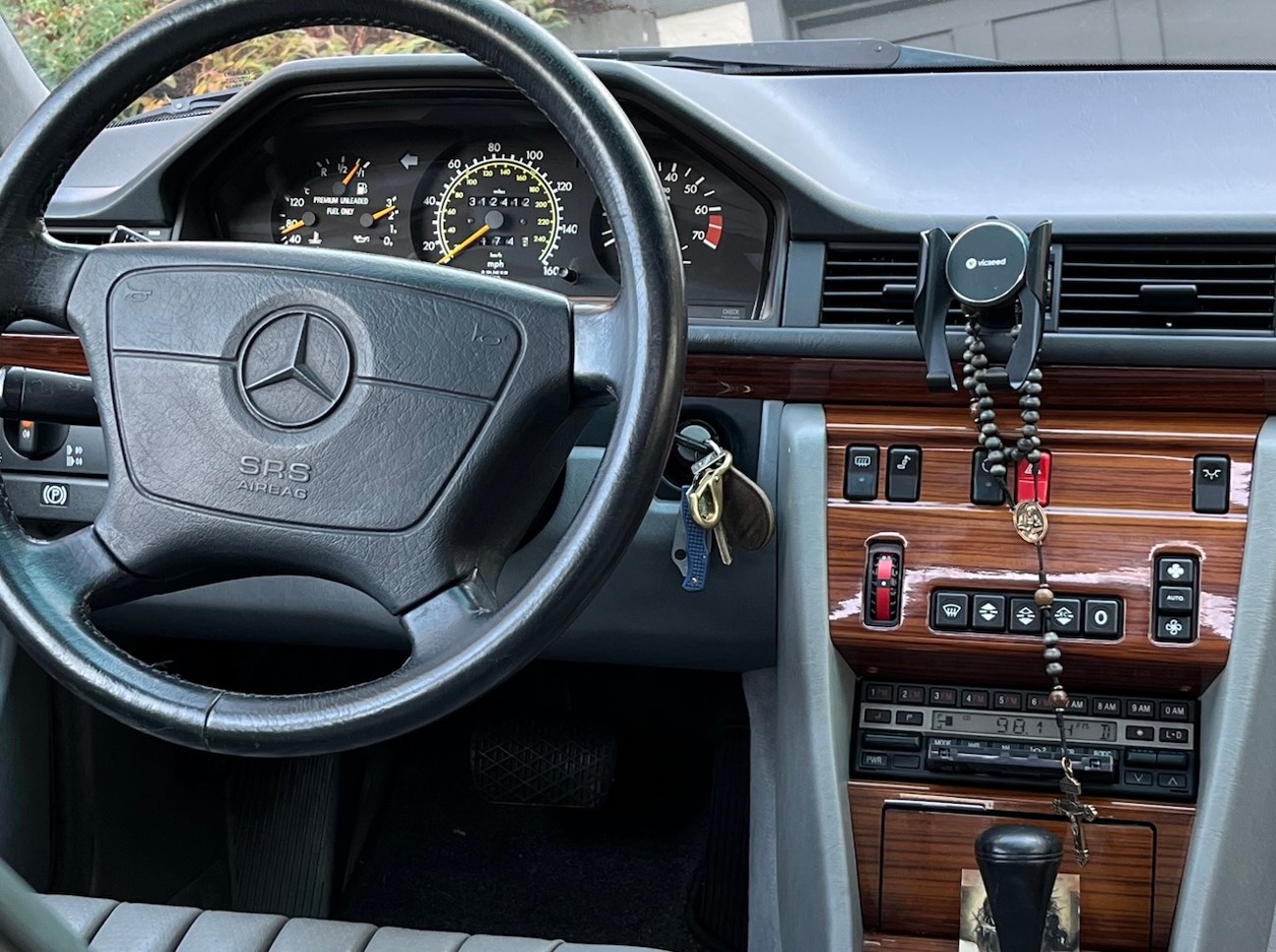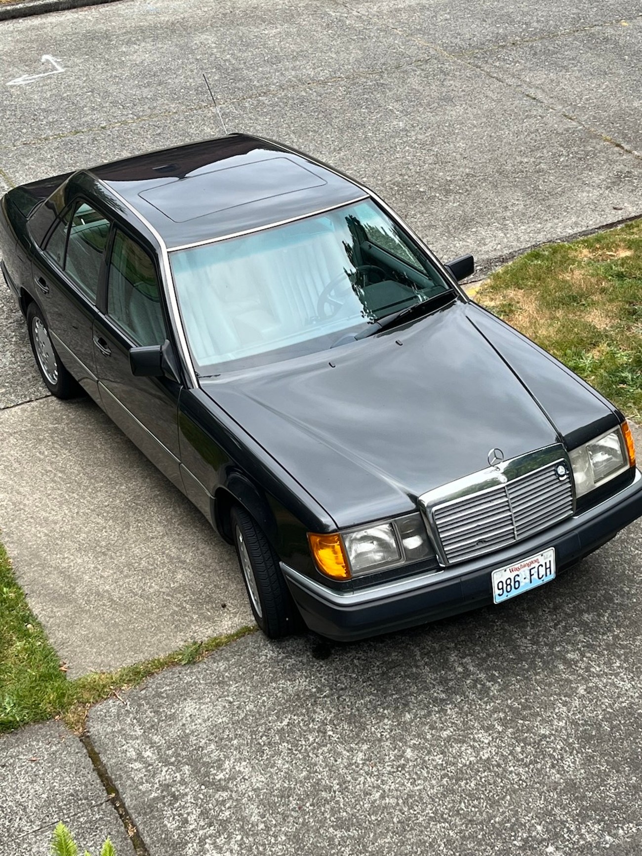 This 1992 Mercedes-Benz 300E shows one owner until 2024 with Oregon and Washington registrations since new. The current owner and seller purchased the car in December of 2024 and has added several hundred miles. It now shows 313k original miles and wears a 500km high-mileage award badge. Finished in Black Pearl Metallic (199) over Gray MB-Tex (178), power is provided by a 2.6-liter inline-six mated to a four-speed automatic transmission driving the rear wheels. Equipment includes a power sliding sunroof, power front seats, cruise control, automatic climate control, a power-adjustable steering column, and an OEM Becker head unit. The included Carfax report shows a few service history records and the car does benefit from an updated wiring harness. The seller reports new suspension and a recent oil service. This 300E is now offered for sale by the current owner in Seattle, Washington with a clean Carfax report and a clean Washington title.