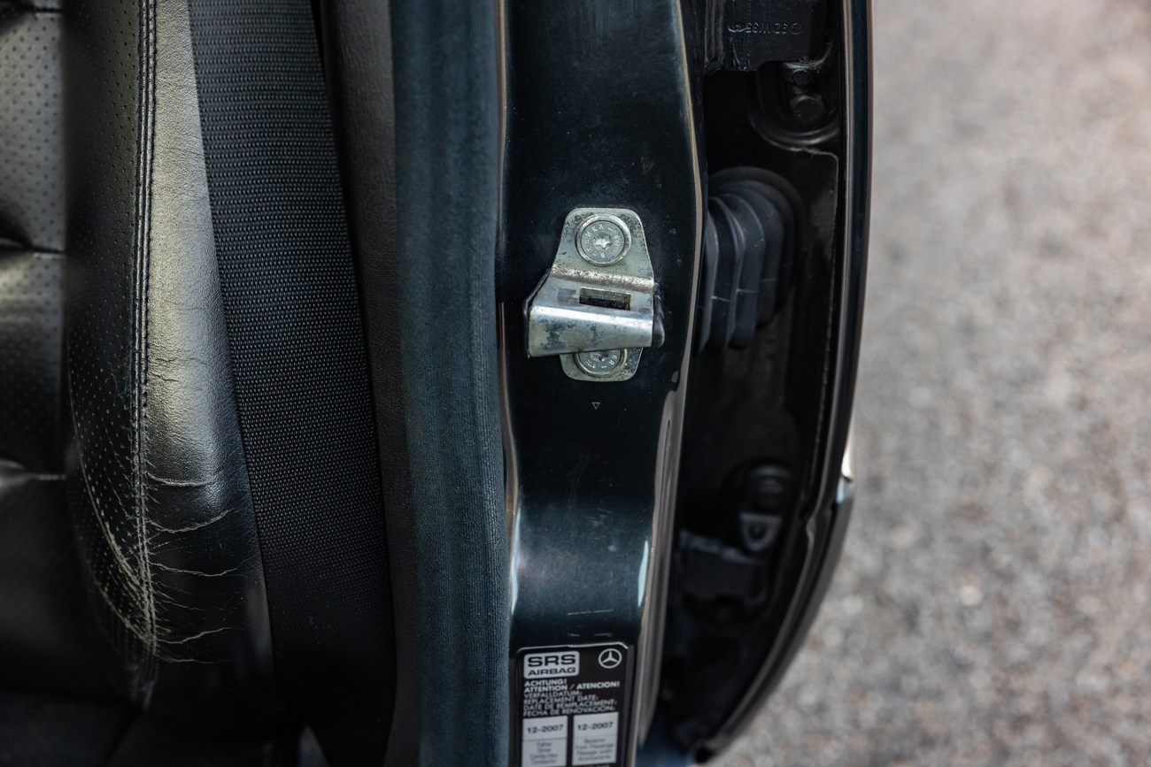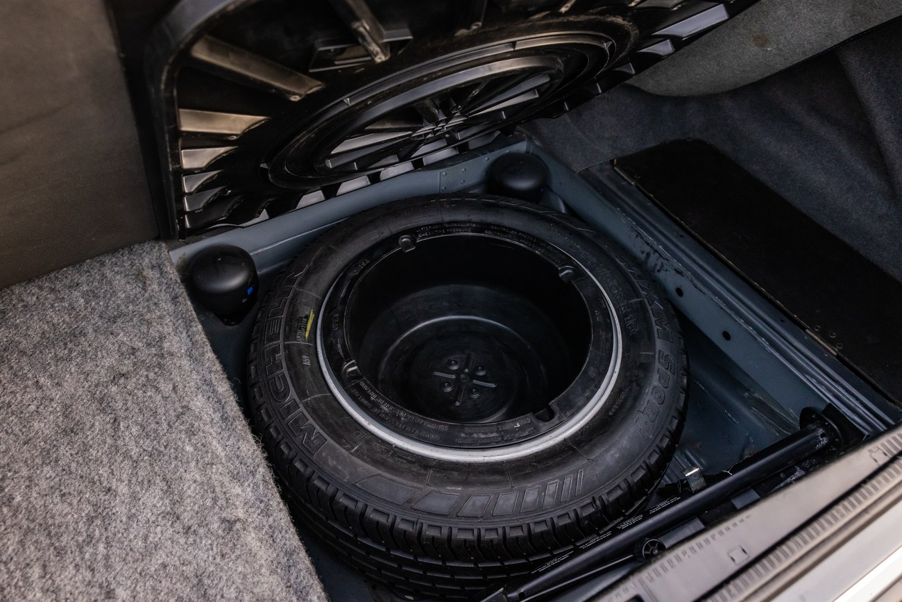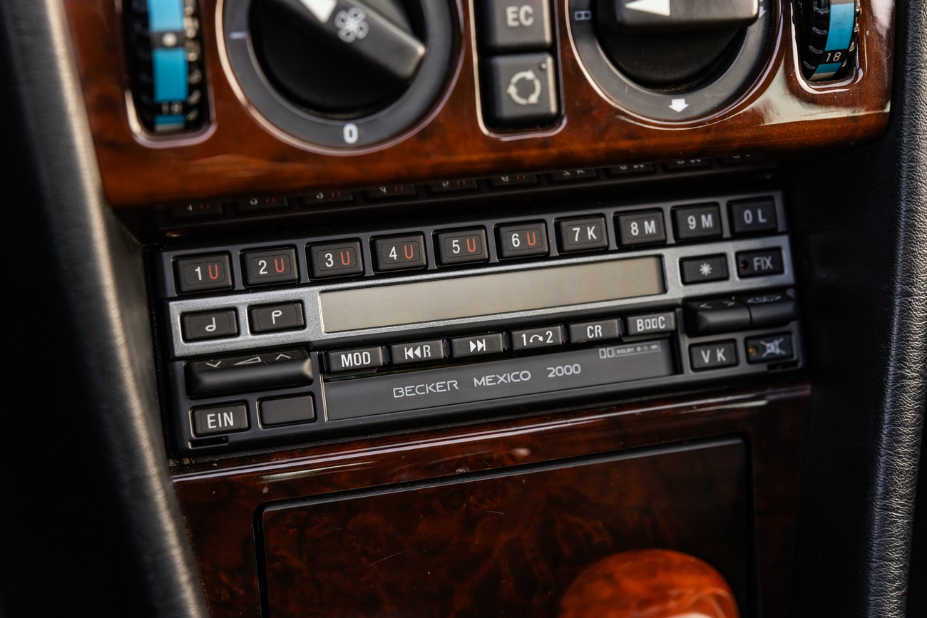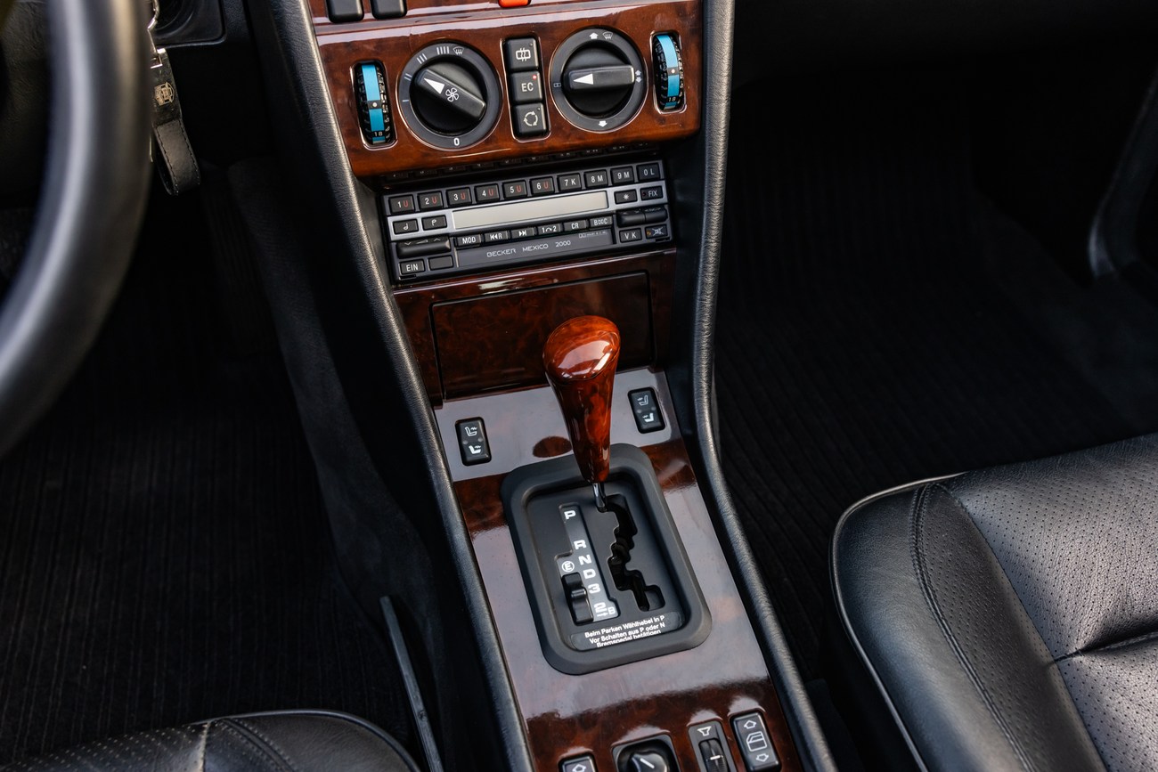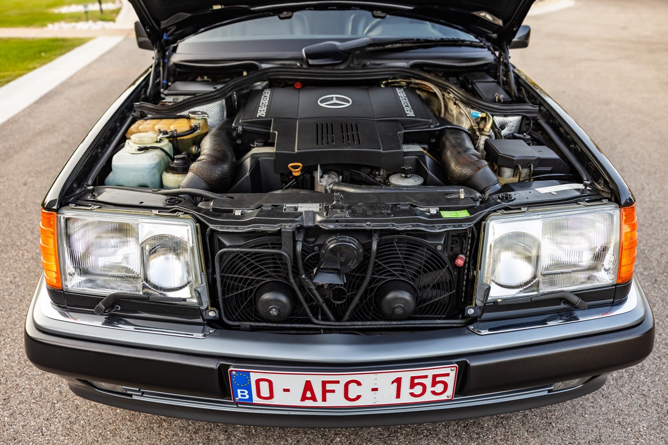 The 5.0-liter M119 DOHC V8 was factory rated at 322 horsepower and 354 lb-ft of torque. Power is sent to the rear wheels through a four-speed automatic transmission. The most recent service in August 2024 included the replacement of the camshaft seals, distributor caps and rotor, and clutch fan, along with a new fuel filter, fuel pump, and fuel lines. Prior service performed included a new air conditioning compressor and receiver/driver in November 2023, new front shocks and tie rods in September 2022, and new spark plugs and engine air filters in February 2022. Underbody photos are provided in the gallery.
