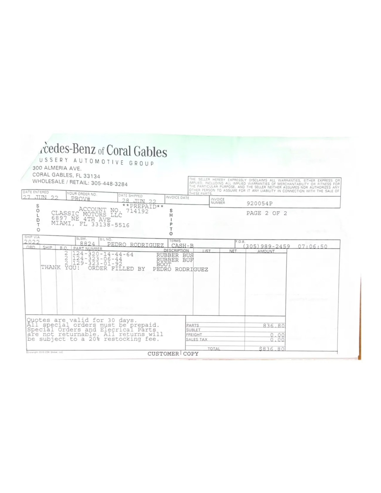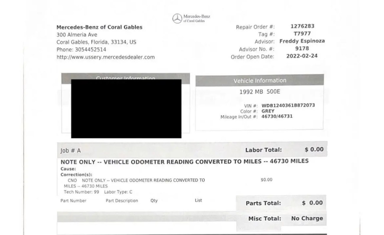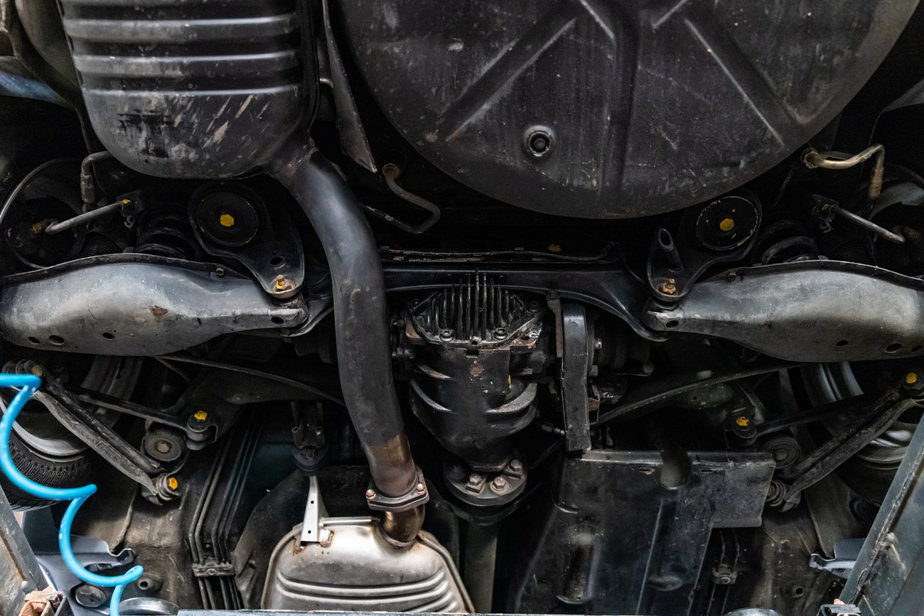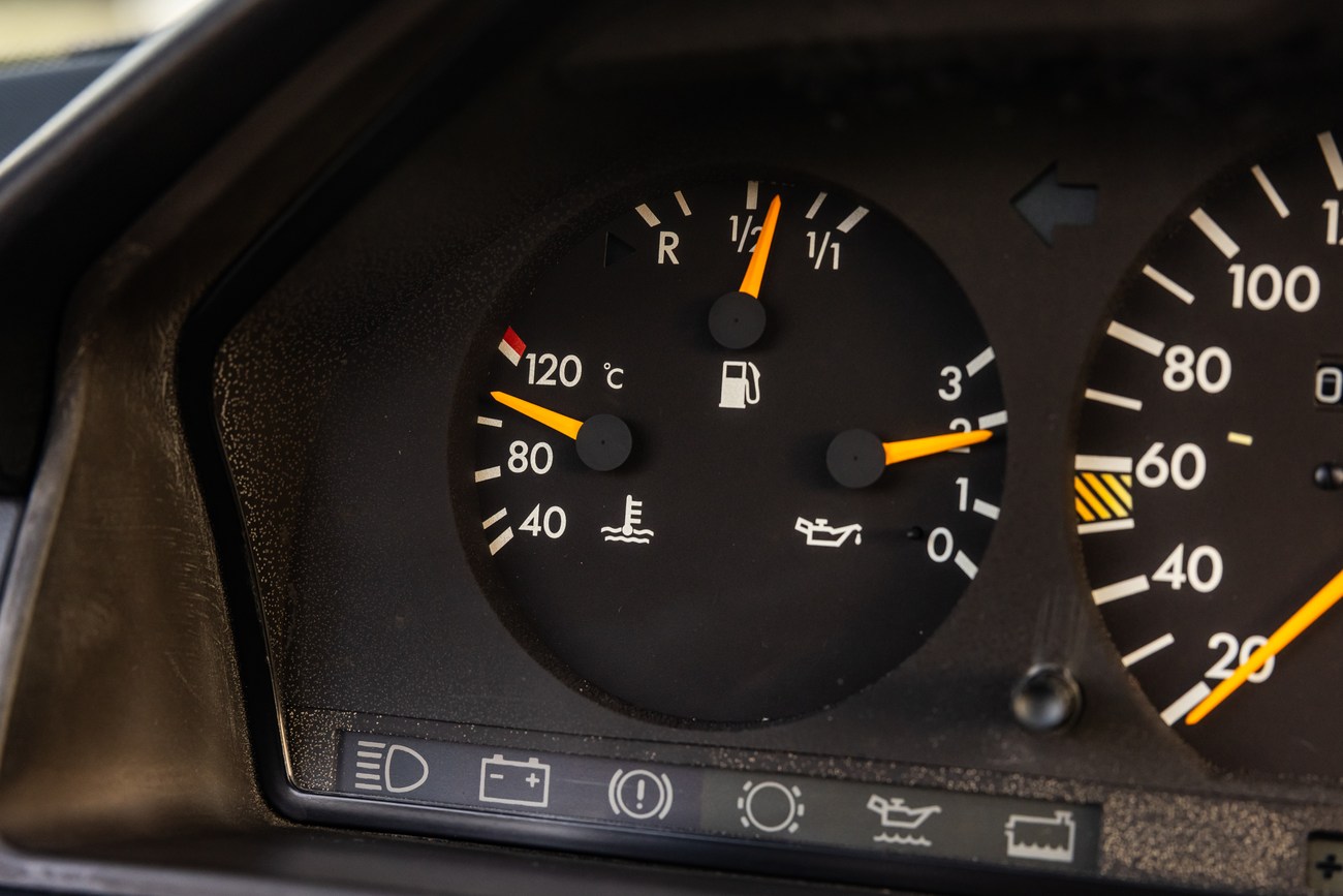 The 5.0-liter M119 DOHC V8 was factory rated at 322 horsepower and 354 lb-ft of torque. Power is sent to the rear wheels through a four-speed automatic transmission. The most recent service in August 2024 included the replacement of the camshaft seals, distributor caps and rotor, and clutch fan, along with a new fuel filter, fuel pump, and fuel lines. Prior service performed included a new air conditioning compressor and receiver/driver in November 2023, new front shocks and tie rods in September 2022, and new spark plugs and engine air filters in February 2022. Underbody photos are provided in the gallery.