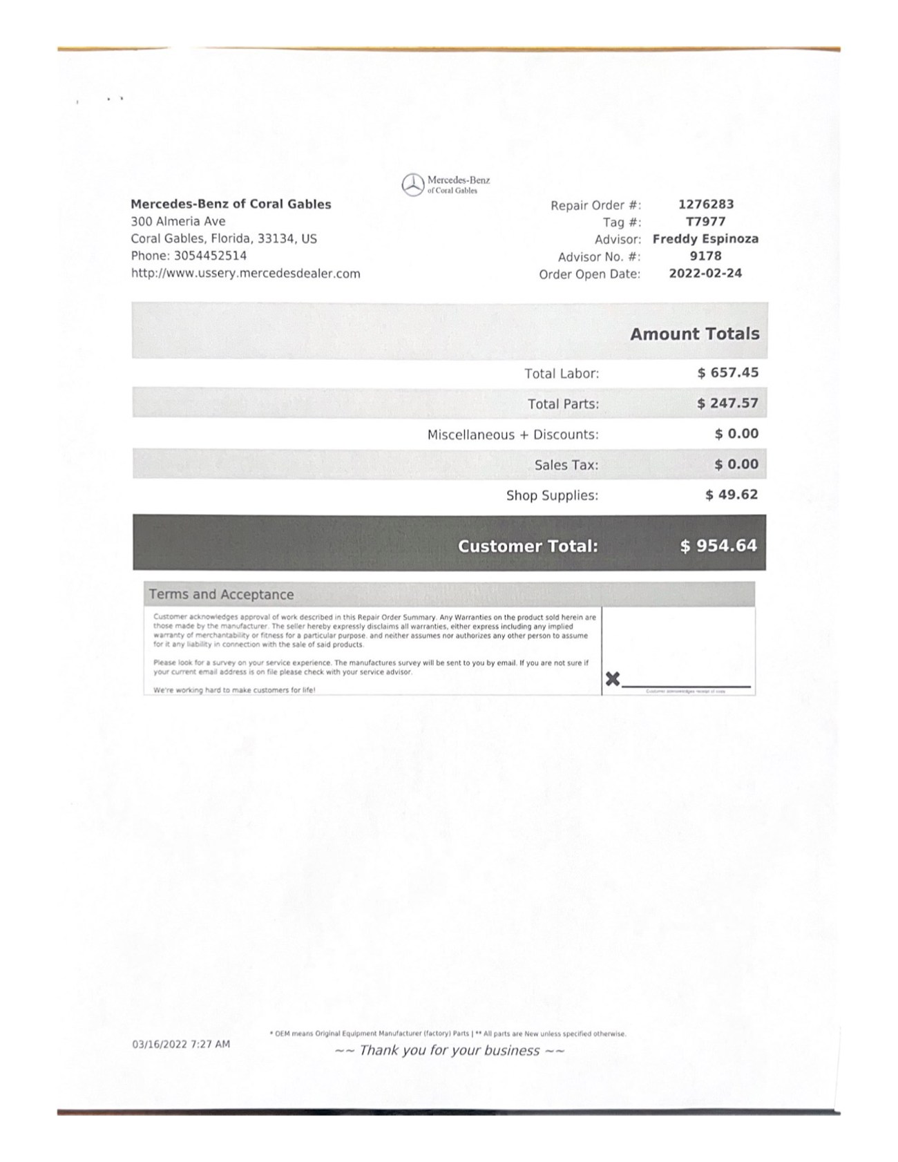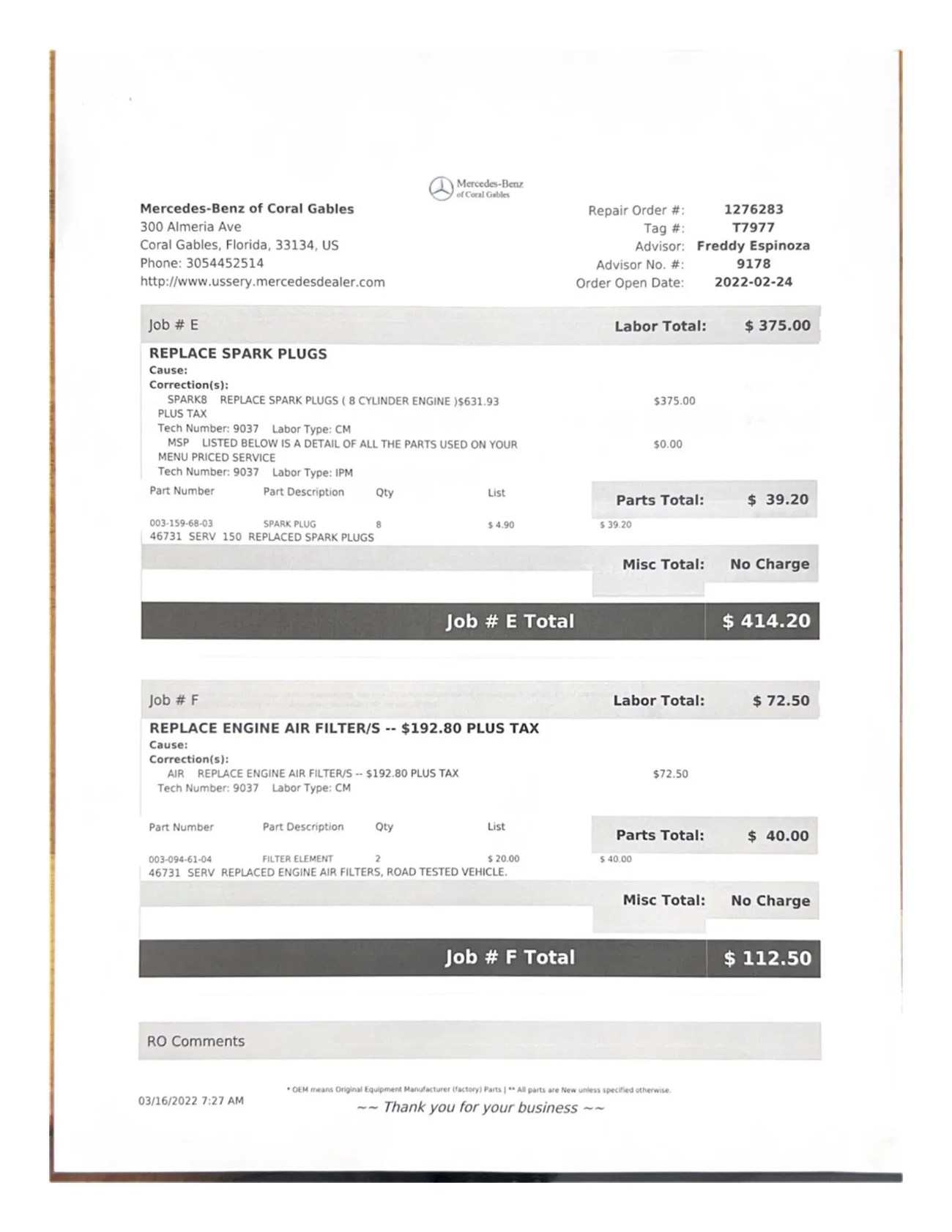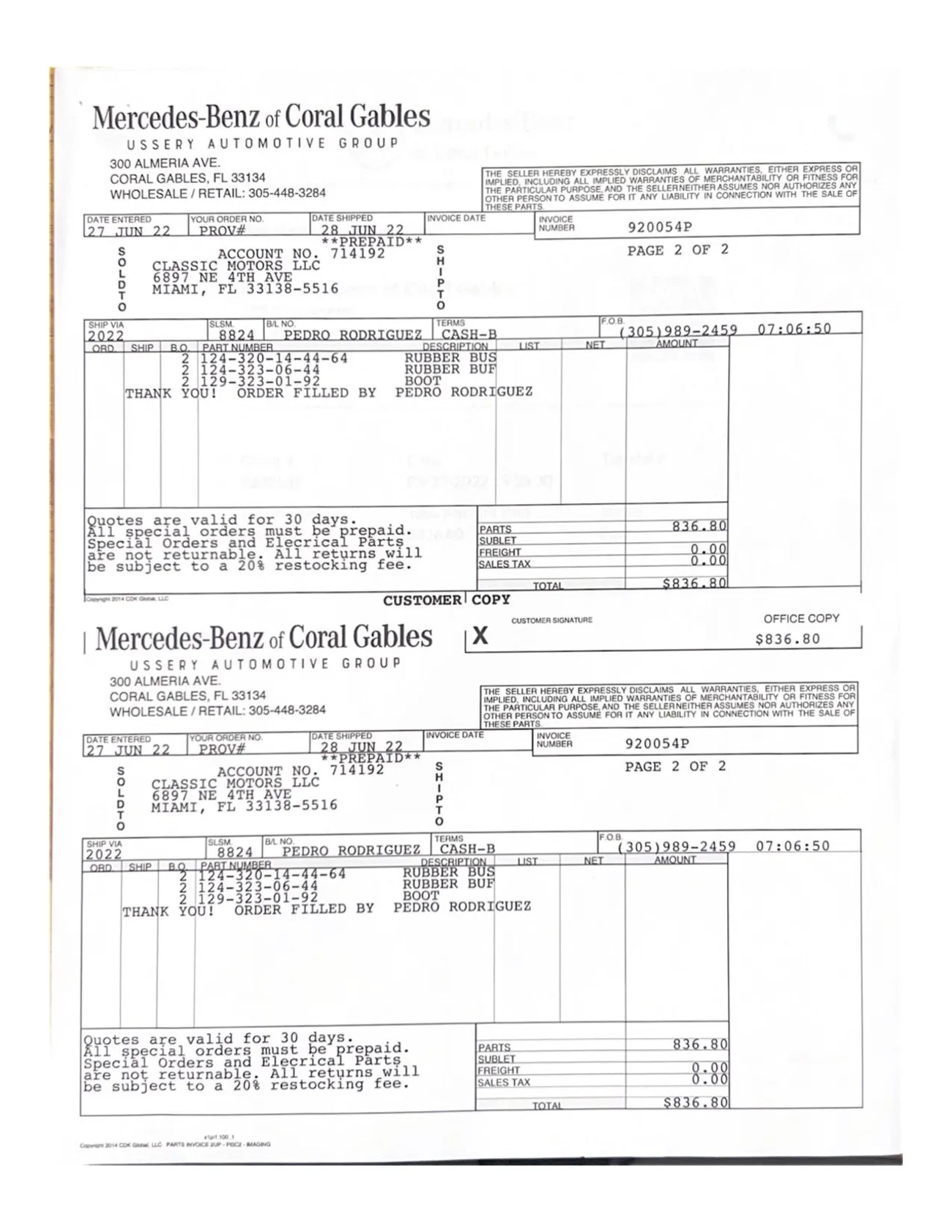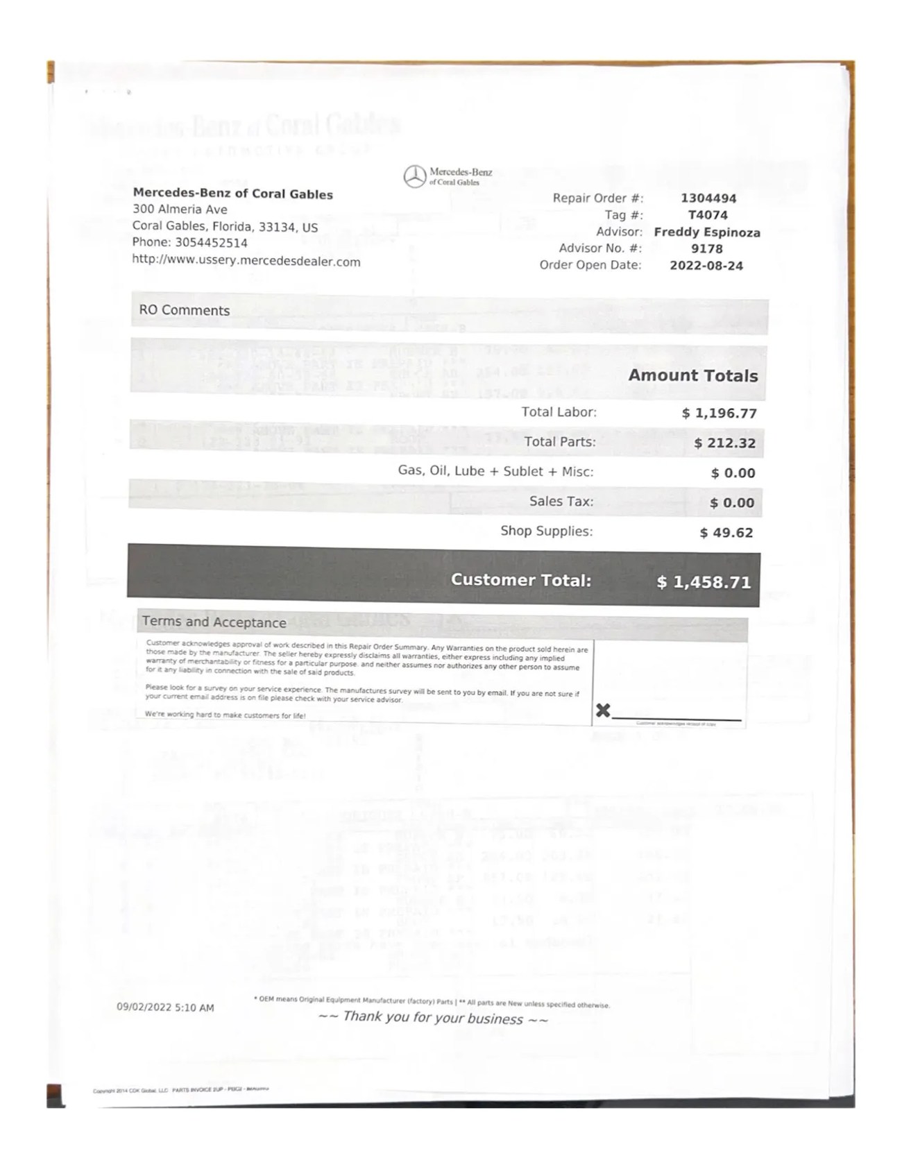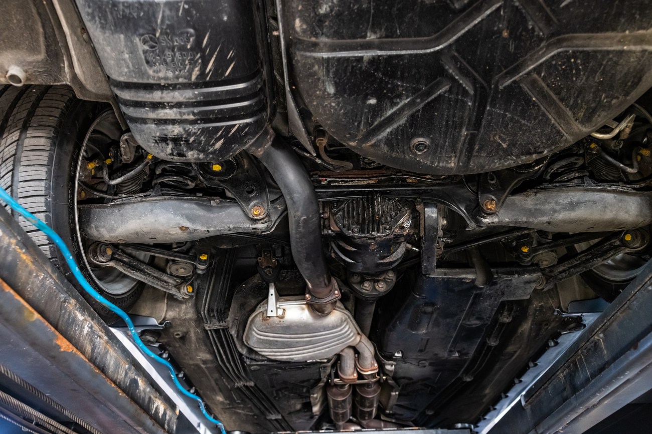 The 5.0-liter M119 DOHC V8 was factory rated at 322 horsepower and 354 lb-ft of torque. Power is sent to the rear wheels through a four-speed automatic transmission. The most recent service in August 2024 included the replacement of the camshaft seals, distributor caps and rotor, and clutch fan, along with a new fuel filter, fuel pump, and fuel lines. Prior service performed included a new air conditioning compressor and receiver/driver in November 2023, new front shocks and tie rods in September 2022, and new spark plugs and engine air filters in February 2022. Underbody photos are provided in the gallery.