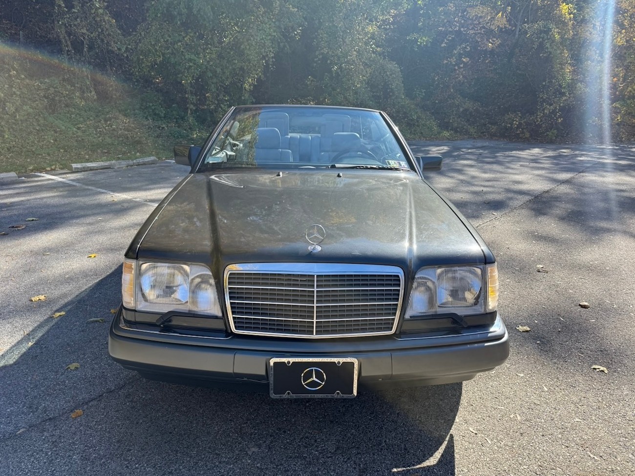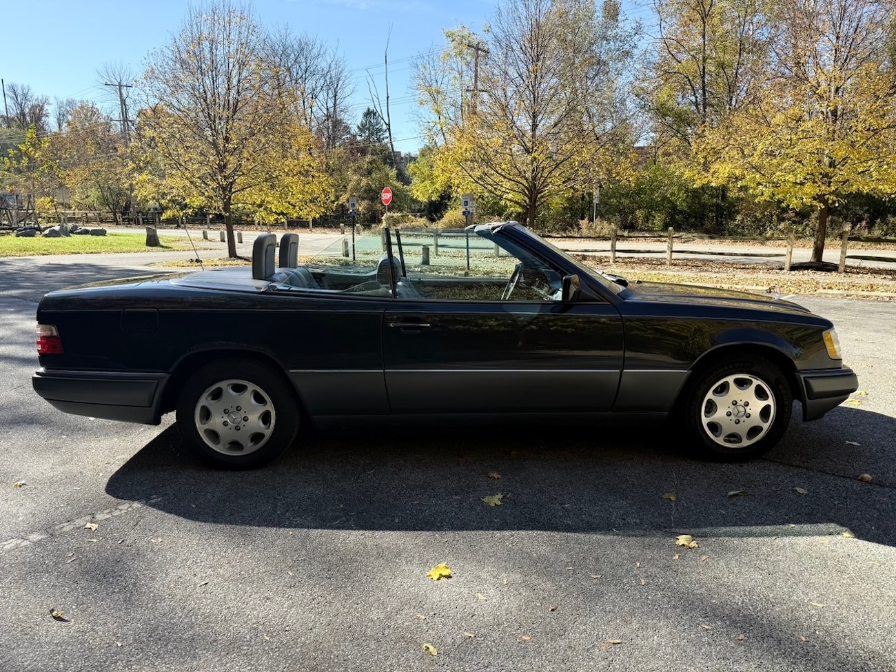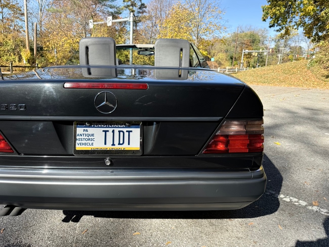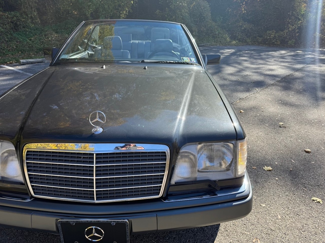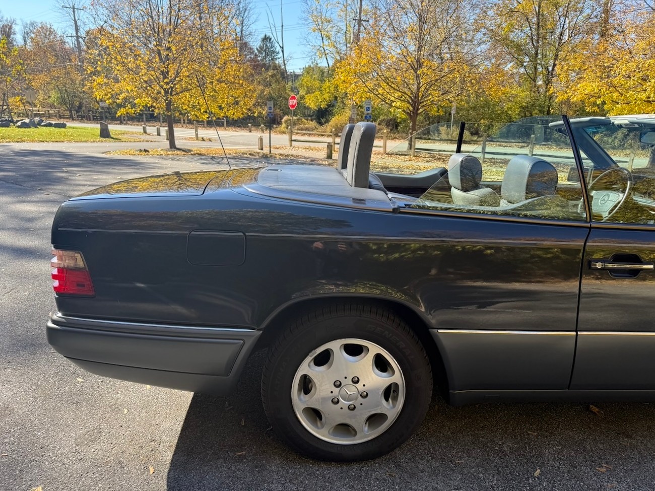 This 1995 Mercedes-Benz E320 Cabriolet was initially sold in Florida and shows subsequent registration in Illinois and Pennsylvania most recently. The current owner purchased the car in early 2025 and the odometer shows an original 75k miles. Finished in Black Pearl Metallic (199) over Gray Leather (268), power is provided by a 3.2-liter inline-six paired with a four-speed automatic transmission driving the rear wheels. Equipment includes heated and power-adjustable front seats with memory, a power-operated black soft top, power mirrors, cruise control, a driver and passenger airbag, central locking, and an aftermarket head unit. The included Carfax report shows 18 service records and no accident damage. Big service items are a new valve cover gasket, oil pressure sending unit, front brake pads and rotors, a new power antenna, a new coolant temp sensor, a new blower motor, and regular maintenance. This cabrio is offered for sale by the current owner in Pennsylvania with one key, factory literature, recent service records, a clean Carfax, and a clean PA title.