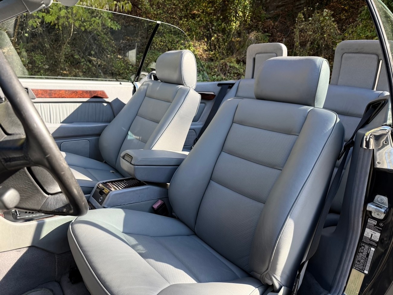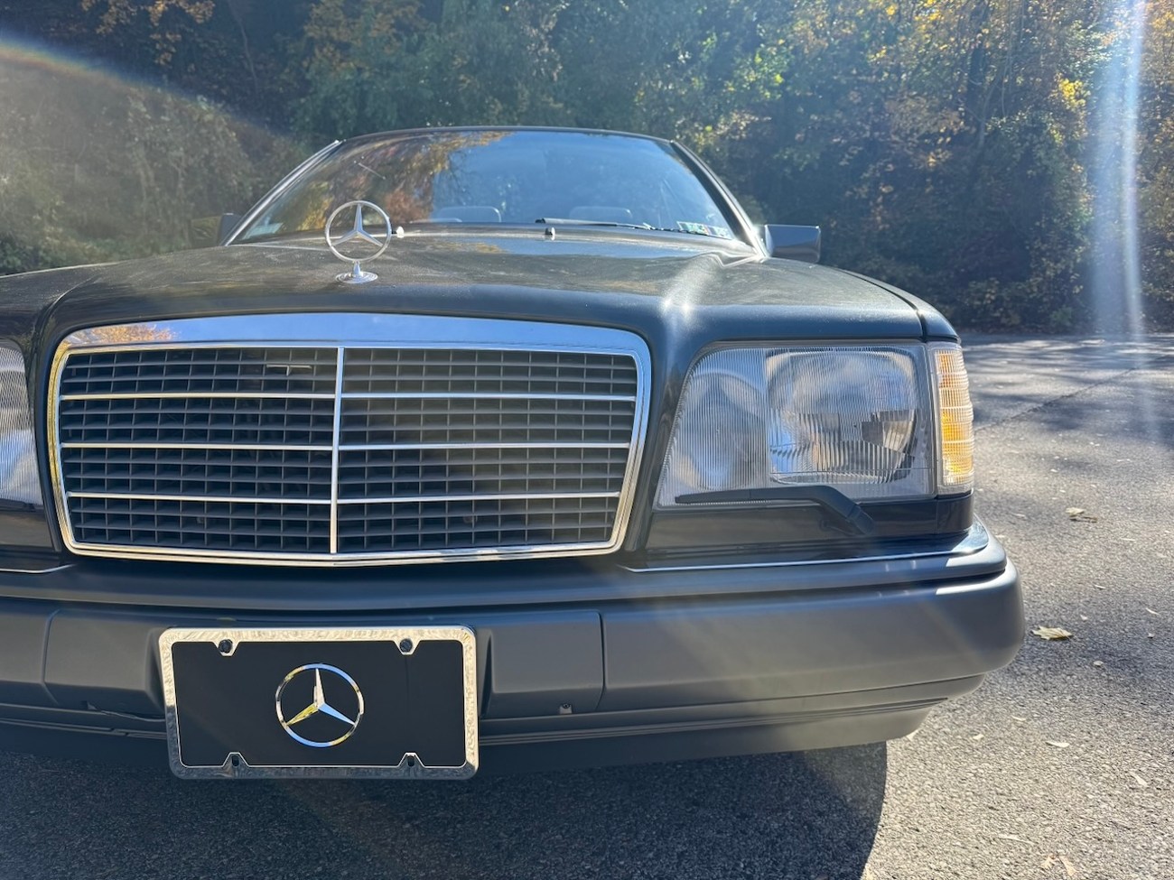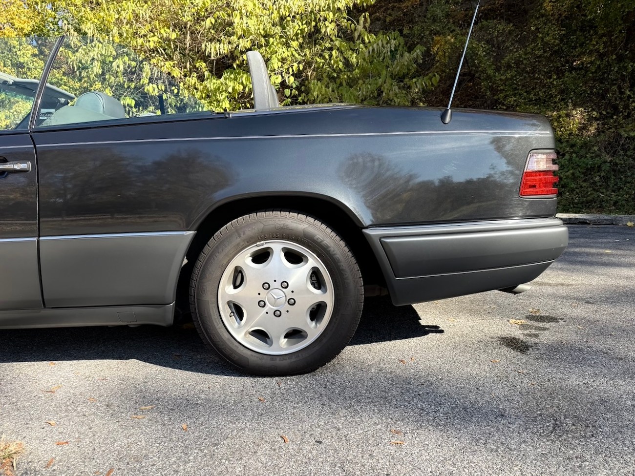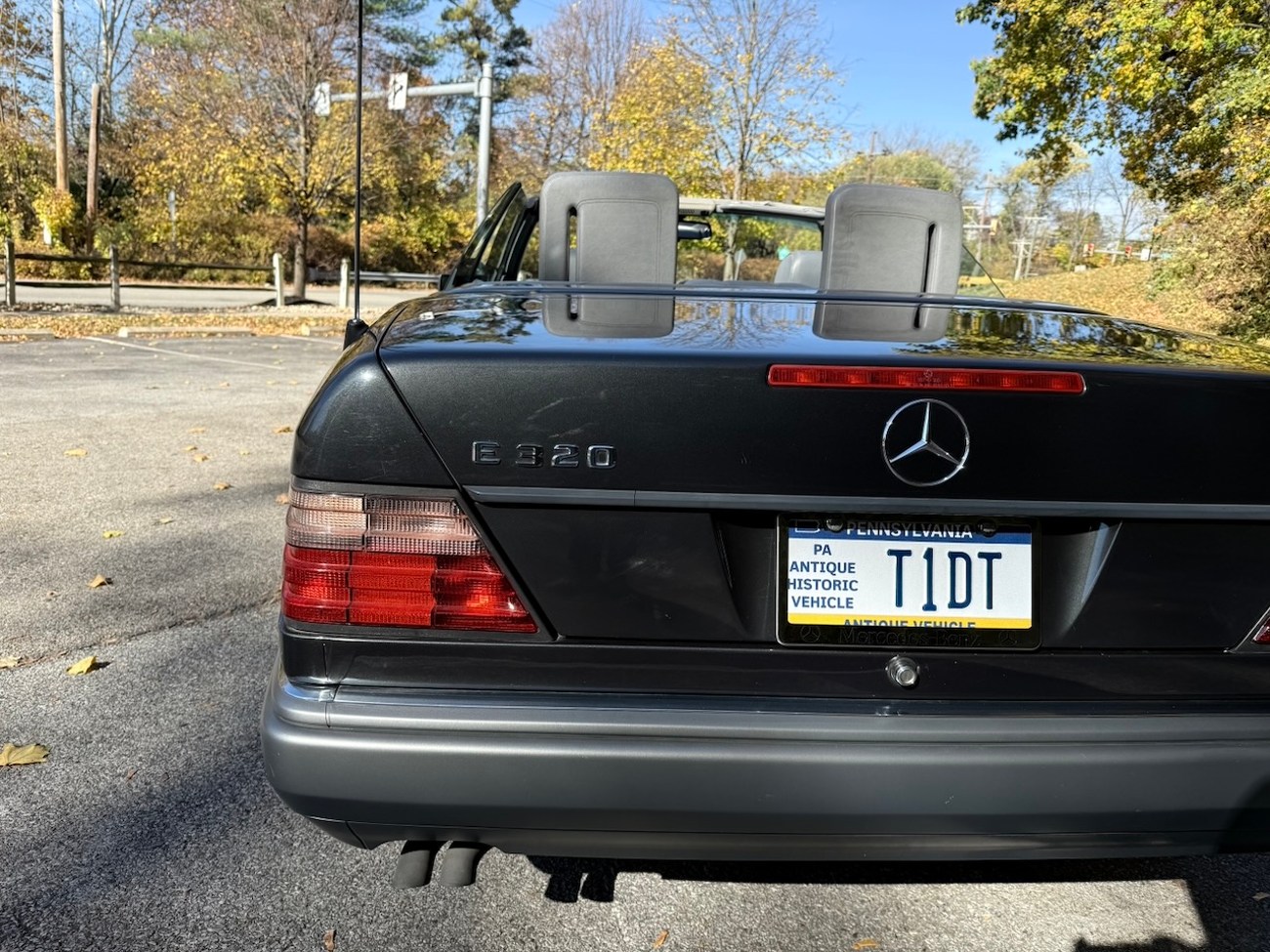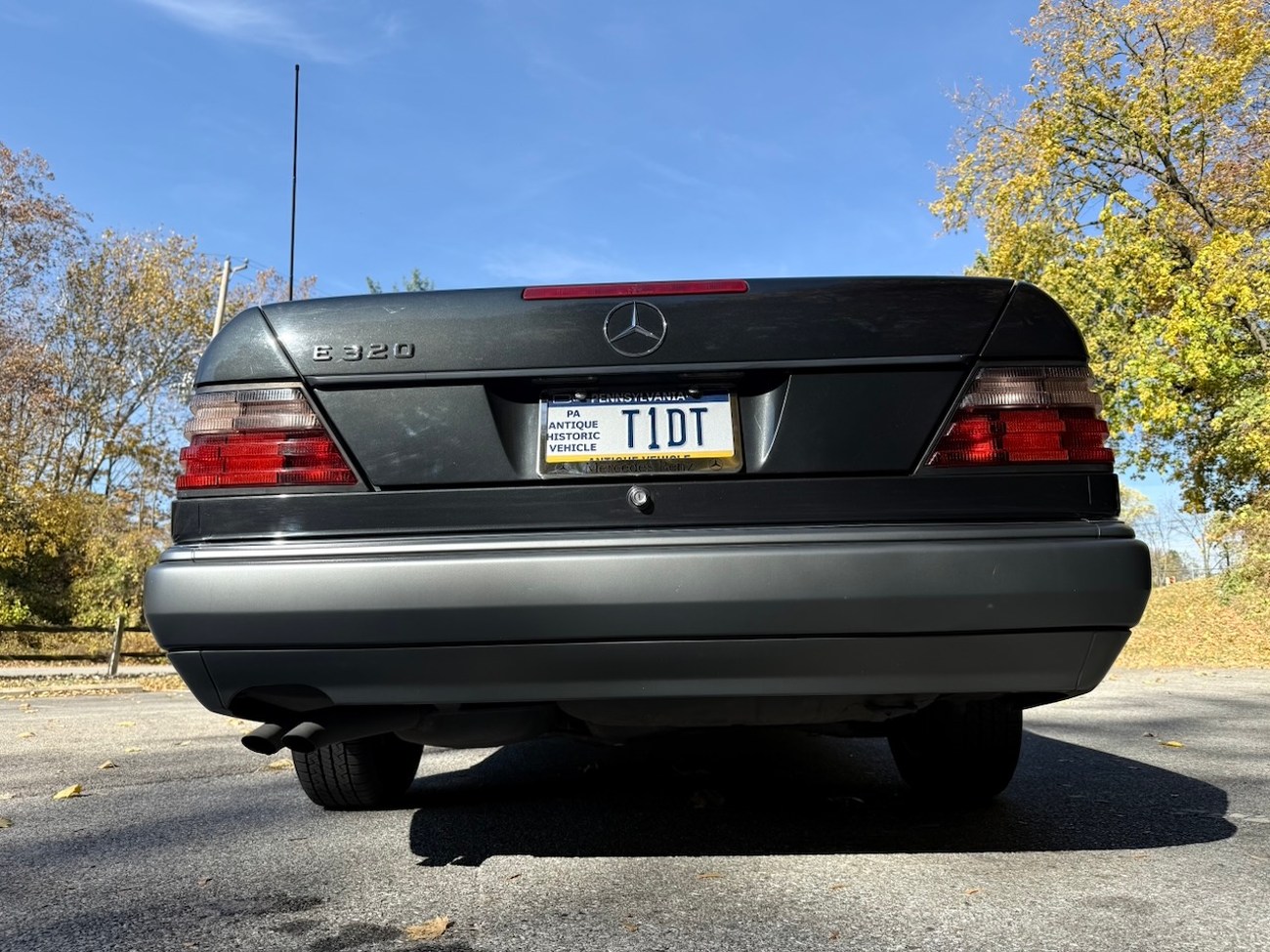 This 1995 Mercedes-Benz E320 Cabriolet was initially sold in Florida and shows subsequent registration in Illinois and Pennsylvania most recently. The current owner purchased the car in early 2025 and the odometer shows an original 75k miles. Finished in Black Pearl Metallic (199) over Gray Leather (268), power is provided by a 3.2-liter inline-six paired with a four-speed automatic transmission driving the rear wheels. Equipment includes heated and power-adjustable front seats with memory, a power-operated black soft top, power mirrors, cruise control, a driver and passenger airbag, central locking, and an aftermarket head unit. The included Carfax report shows 18 service records and no accident damage. Big service items are a new valve cover gasket, oil pressure sending unit, front brake pads and rotors, a new power antenna, a new coolant temp sensor, a new blower motor, and regular maintenance. This cabrio is offered for sale by the current owner in Pennsylvania with one key, factory literature, recent service records, a clean Carfax, and a clean PA title.