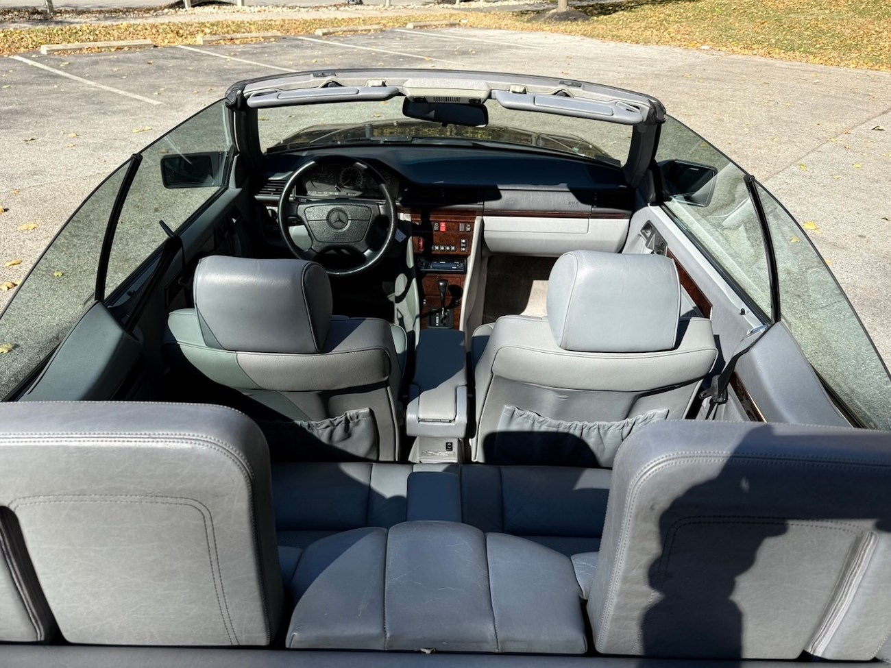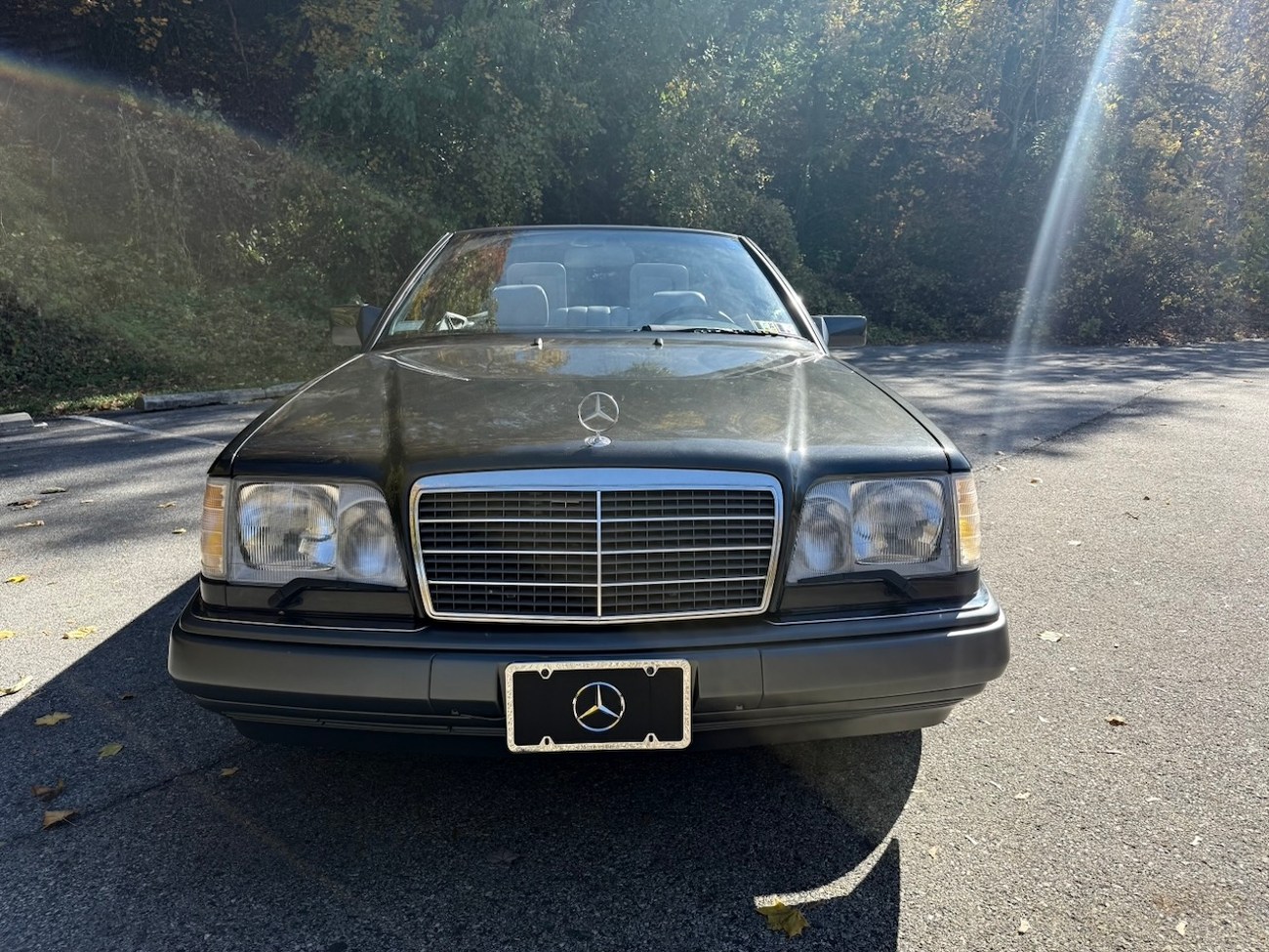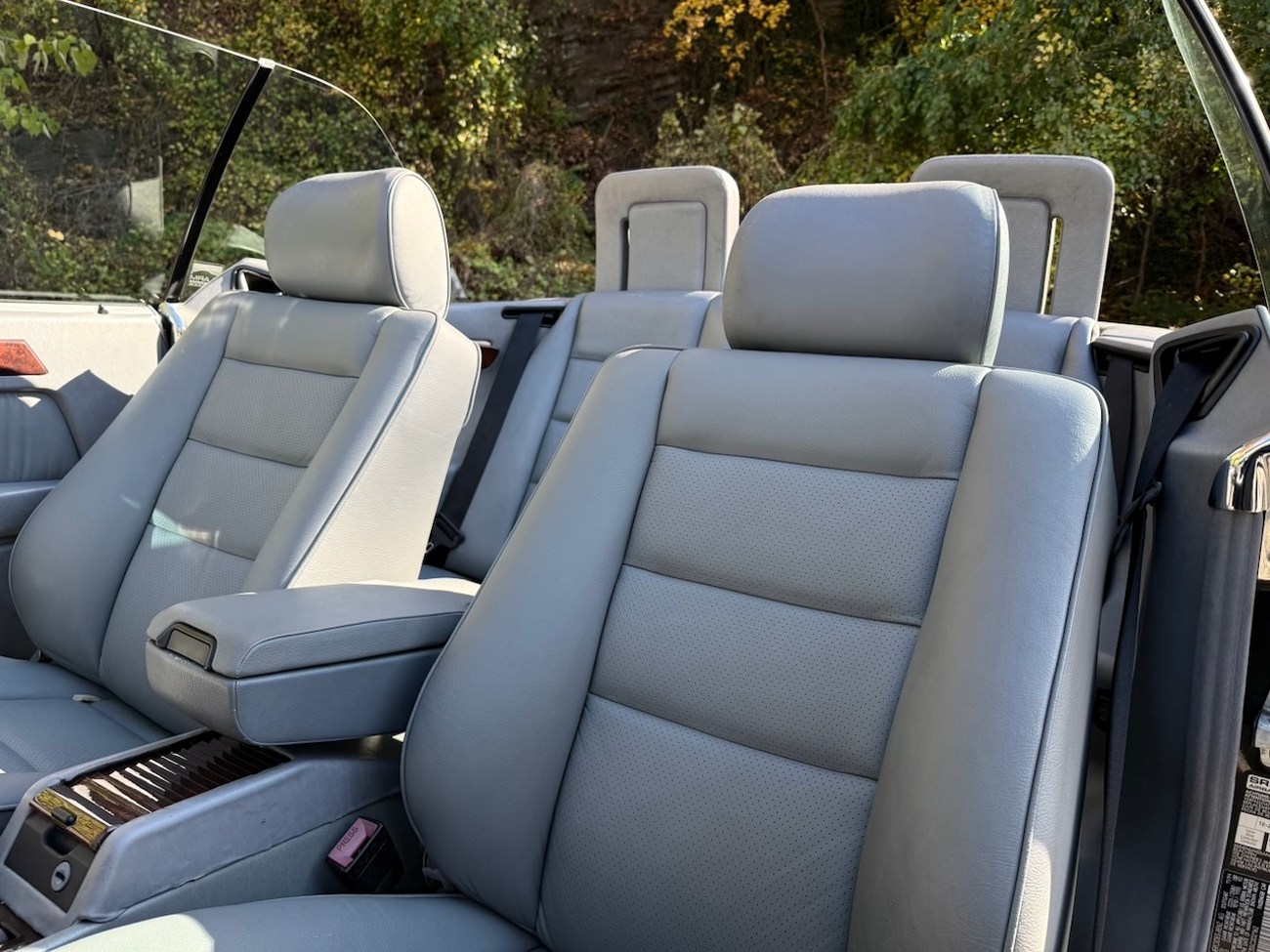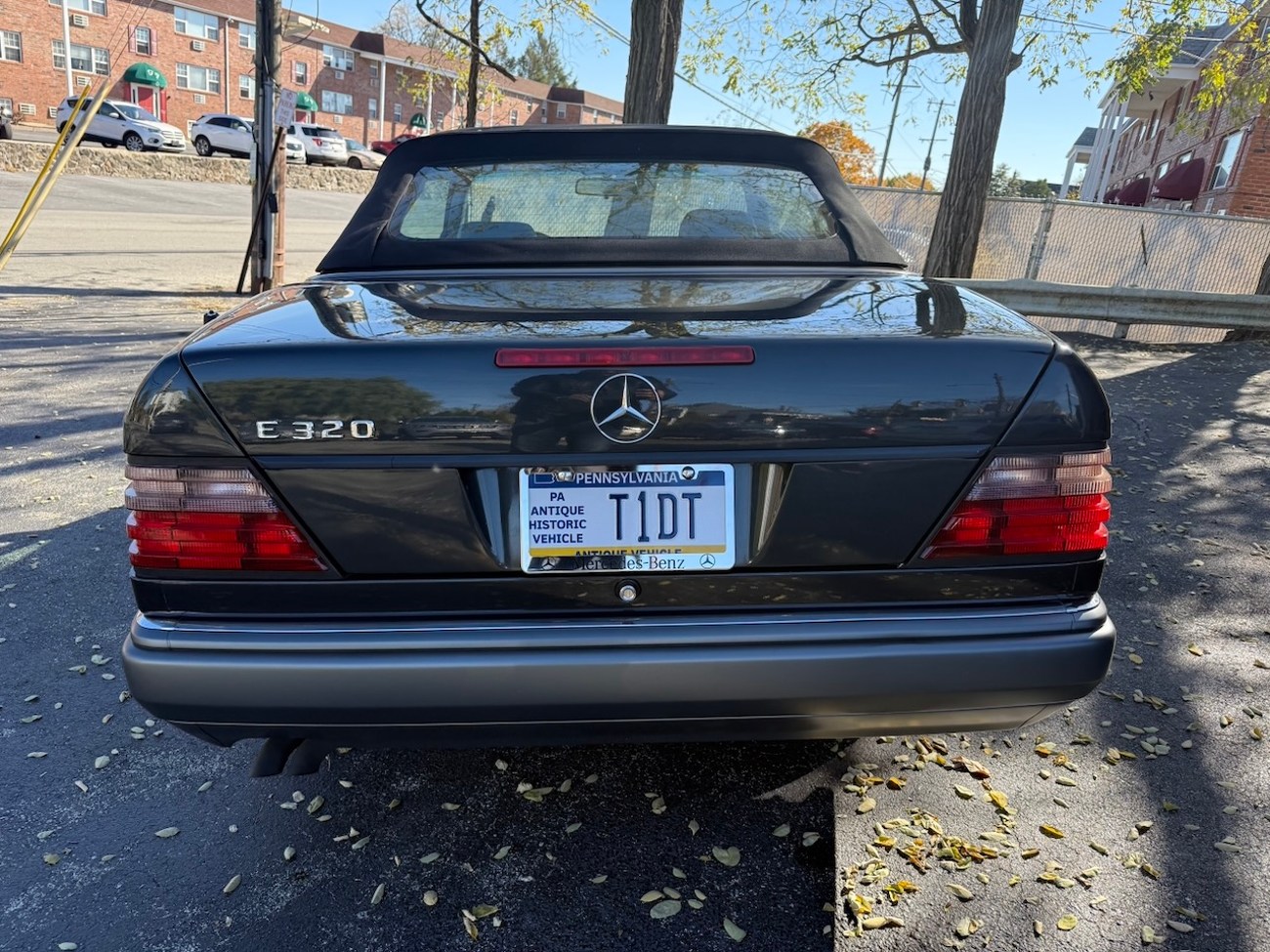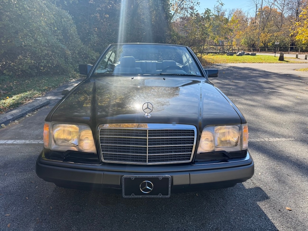 This 1995 Mercedes-Benz E320 Cabriolet was initially sold in Florida and shows subsequent registration in Illinois and Pennsylvania most recently. The current owner purchased the car in early 2025 and the odometer shows an original 75k miles. Finished in Black Pearl Metallic (199) over Gray Leather (268), power is provided by a 3.2-liter inline-six paired with a four-speed automatic transmission driving the rear wheels. Equipment includes heated and power-adjustable front seats with memory, a power-operated black soft top, power mirrors, cruise control, a driver and passenger airbag, central locking, and an aftermarket head unit. The included Carfax report shows 18 service records and no accident damage. Big service items are a new valve cover gasket, oil pressure sending unit, front brake pads and rotors, a new power antenna, a new coolant temp sensor, a new blower motor, and regular maintenance. This cabrio is offered for sale by the current owner in Pennsylvania with one key, factory literature, recent service records, a clean Carfax, and a clean PA title.