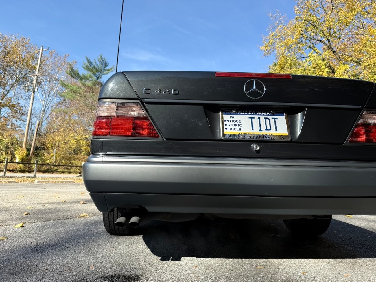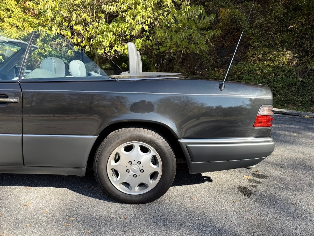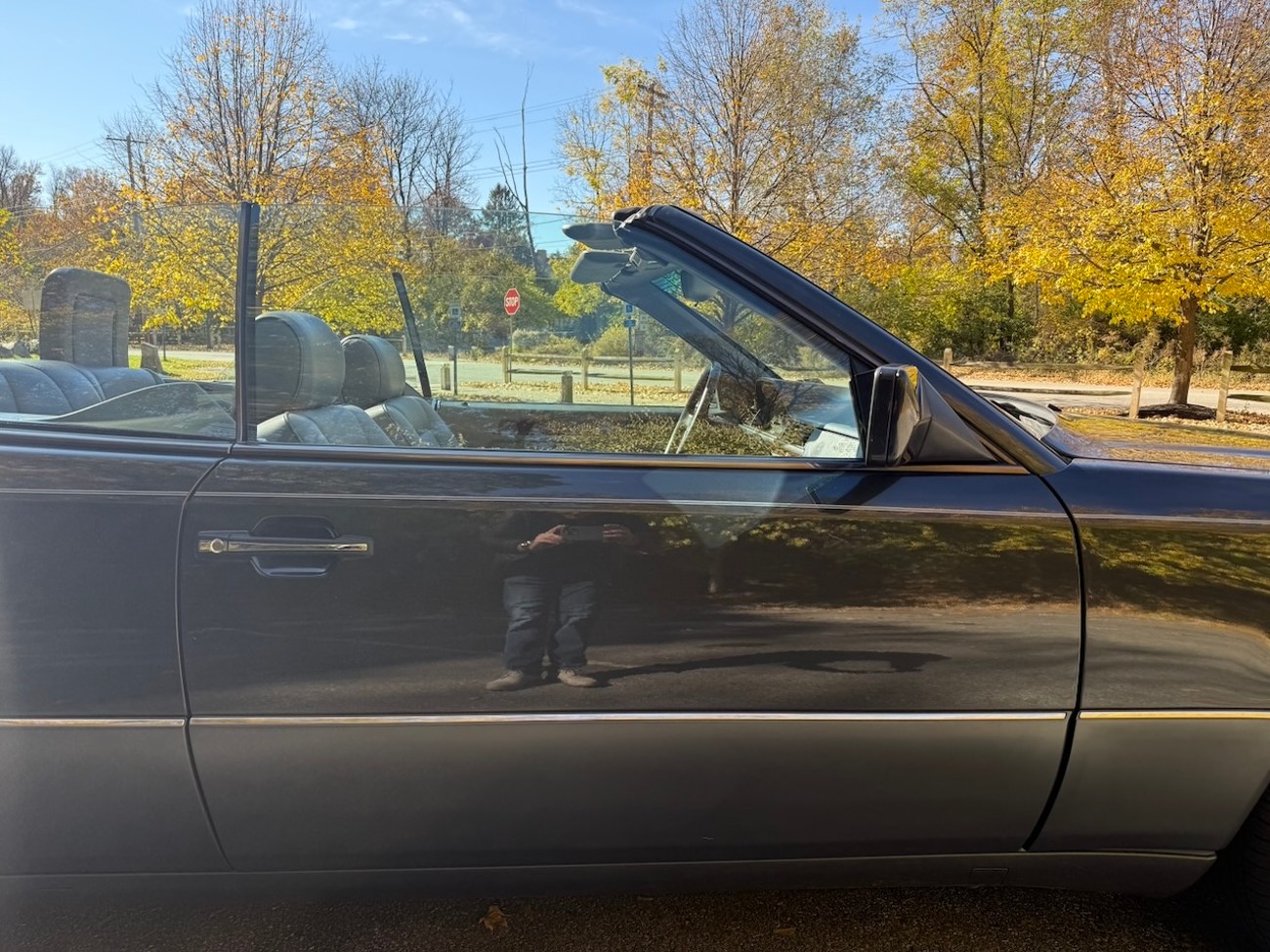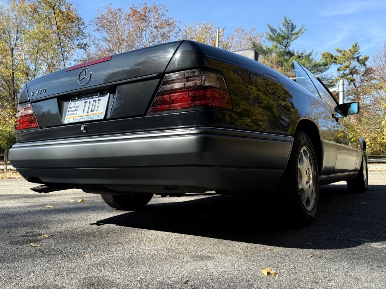 This 1995 Mercedes-Benz E320 Cabriolet was initially sold in Florida and shows subsequent registration in Illinois and Pennsylvania most recently. The current owner purchased the car in early 2025 and the odometer shows an original 75k miles. Finished in Black Pearl Metallic (199) over Gray Leather (268), power is provided by a 3.2-liter inline-six paired with a four-speed automatic transmission driving the rear wheels. Equipment includes heated and power-adjustable front seats with memory, a power-operated black soft top, power mirrors, cruise control, a driver and passenger airbag, central locking, and an aftermarket head unit. The included Carfax report shows 18 service records and no accident damage. Big service items are a new valve cover gasket, oil pressure sending unit, front brake pads and rotors, a new power antenna, a new coolant temp sensor, a new blower motor, and regular maintenance. This cabrio is offered for sale by the current owner in Pennsylvania with one key, factory literature, recent service records, a clean Carfax, and a clean PA title.