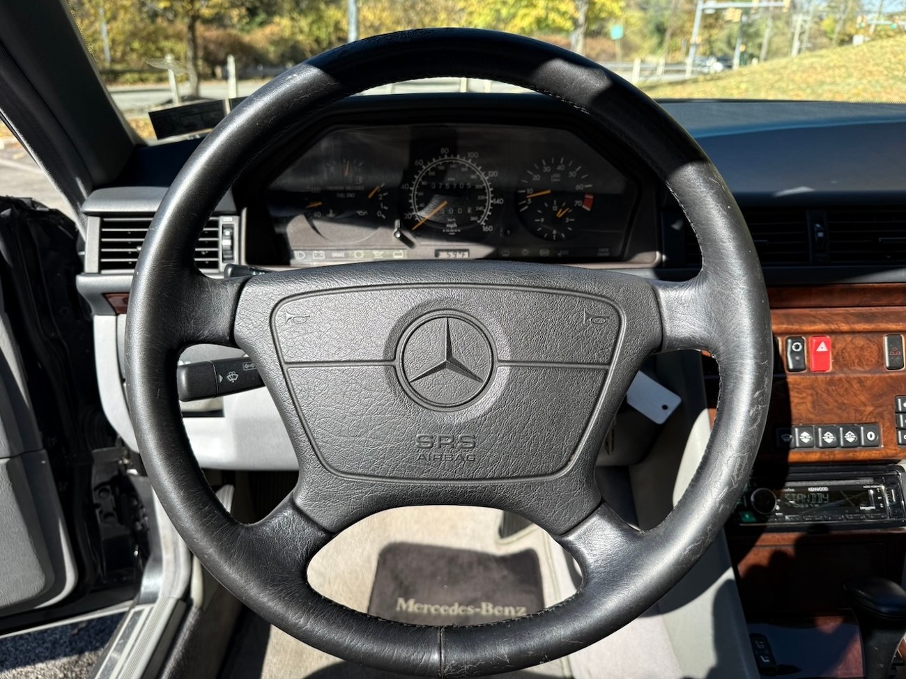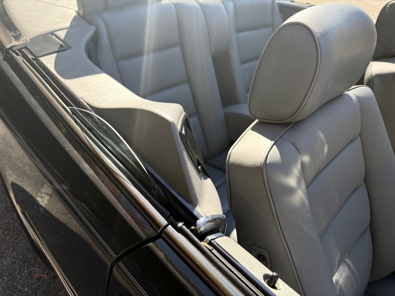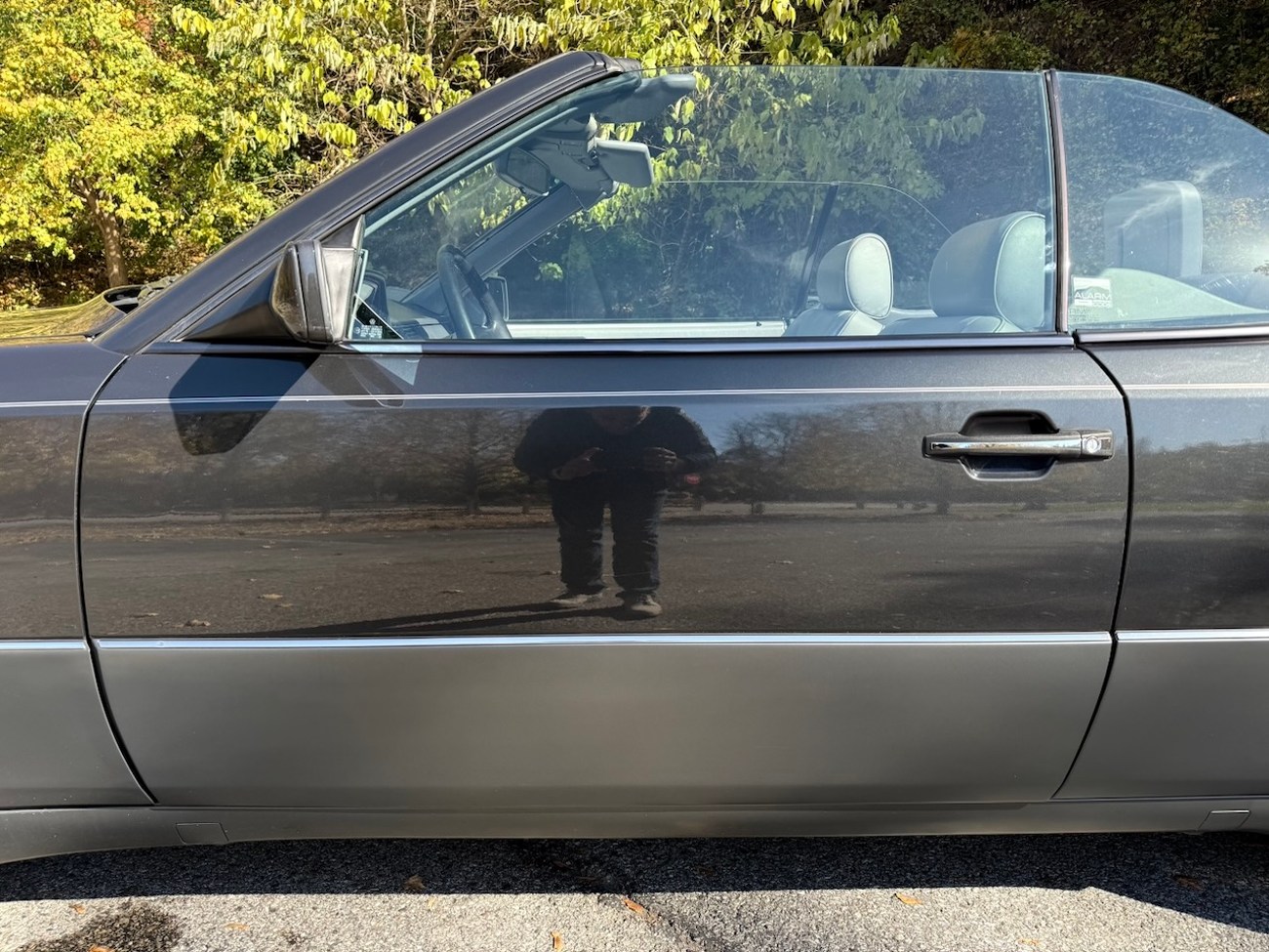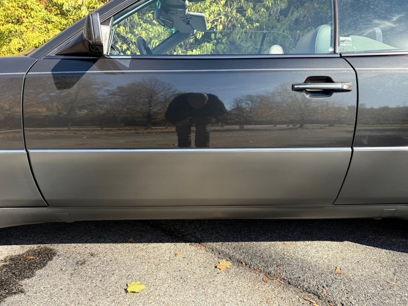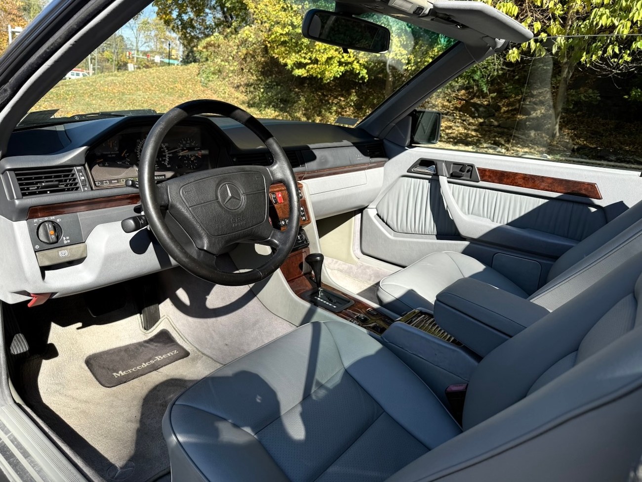 This 1995 Mercedes-Benz E320 Cabriolet was initially sold in Florida and shows subsequent registration in Illinois and Pennsylvania most recently. The current owner purchased the car in early 2025 and the odometer shows an original 75k miles. Finished in Black Pearl Metallic (199) over Gray Leather (268), power is provided by a 3.2-liter inline-six paired with a four-speed automatic transmission driving the rear wheels. Equipment includes heated and power-adjustable front seats with memory, a power-operated black soft top, power mirrors, cruise control, a driver and passenger airbag, central locking, and an aftermarket head unit. The included Carfax report shows 18 service records and no accident damage. Big service items are a new valve cover gasket, oil pressure sending unit, front brake pads and rotors, a new power antenna, a new coolant temp sensor, a new blower motor, and regular maintenance. This cabrio is offered for sale by the current owner in Pennsylvania with one key, factory literature, recent service records, a clean Carfax, and a clean PA title.