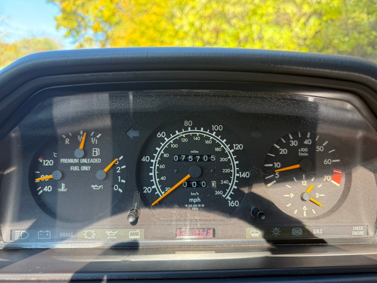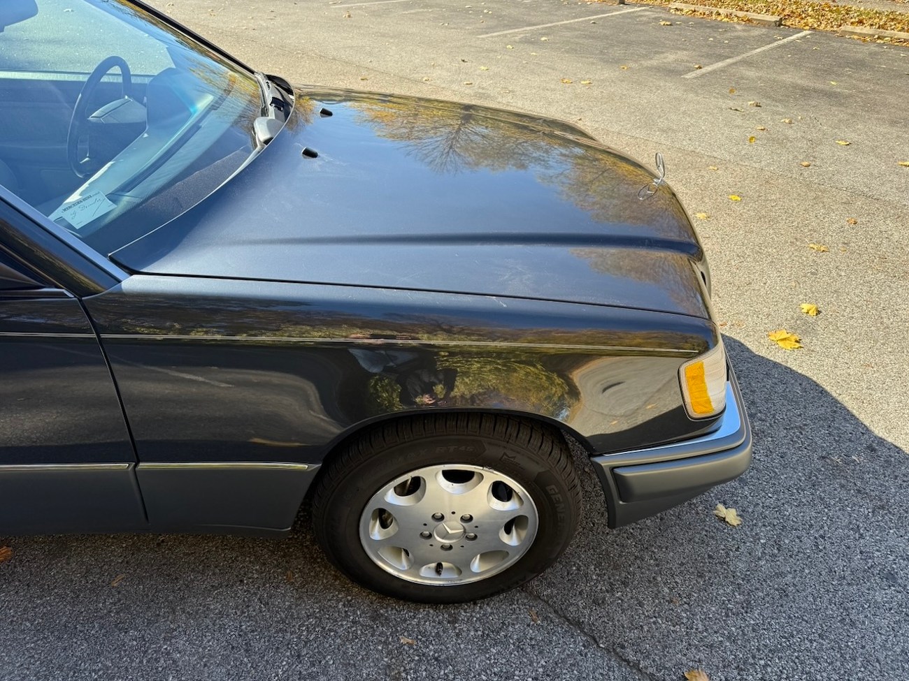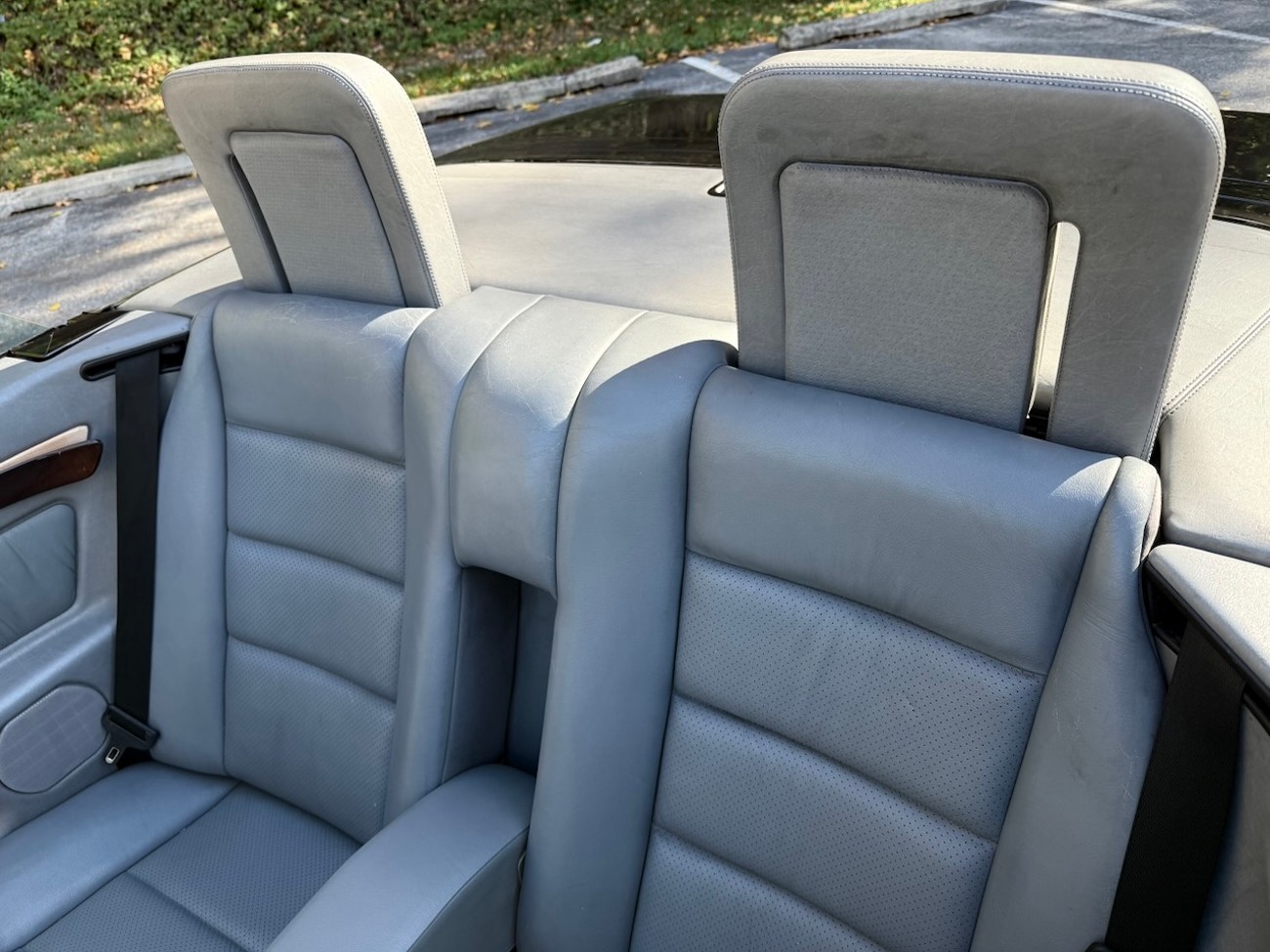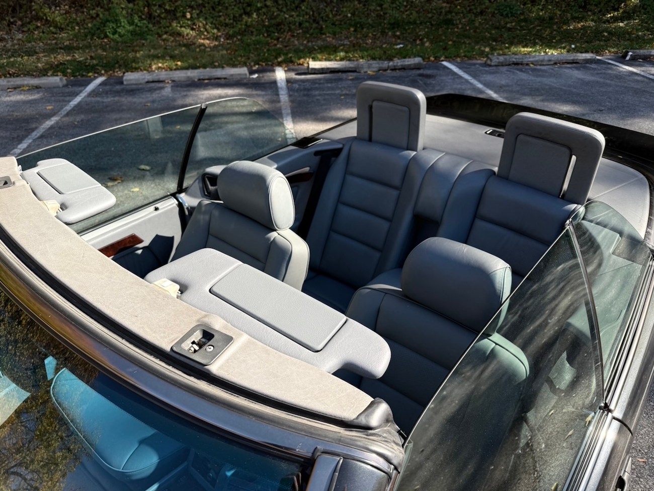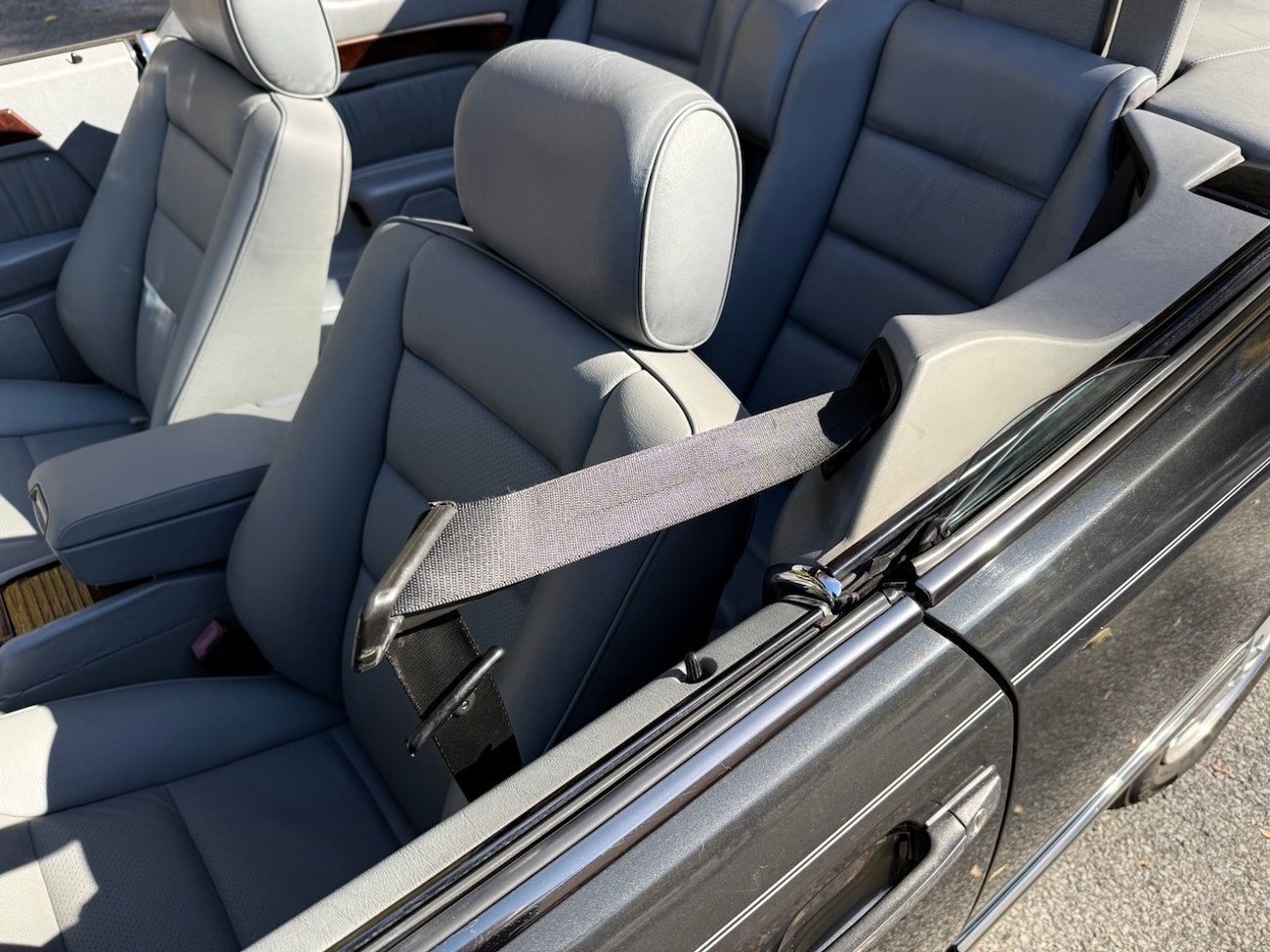 This 1995 Mercedes-Benz E320 Cabriolet was initially sold in Florida and shows subsequent registration in Illinois and Pennsylvania most recently. The current owner purchased the car in early 2025 and the odometer shows an original 75k miles. Finished in Black Pearl Metallic (199) over Gray Leather (268), power is provided by a 3.2-liter inline-six paired with a four-speed automatic transmission driving the rear wheels. Equipment includes heated and power-adjustable front seats with memory, a power-operated black soft top, power mirrors, cruise control, a driver and passenger airbag, central locking, and an aftermarket head unit. The included Carfax report shows 18 service records and no accident damage. Big service items are a new valve cover gasket, oil pressure sending unit, front brake pads and rotors, a new power antenna, a new coolant temp sensor, a new blower motor, and regular maintenance. This cabrio is offered for sale by the current owner in Pennsylvania with one key, factory literature, recent service records, a clean Carfax, and a clean PA title.