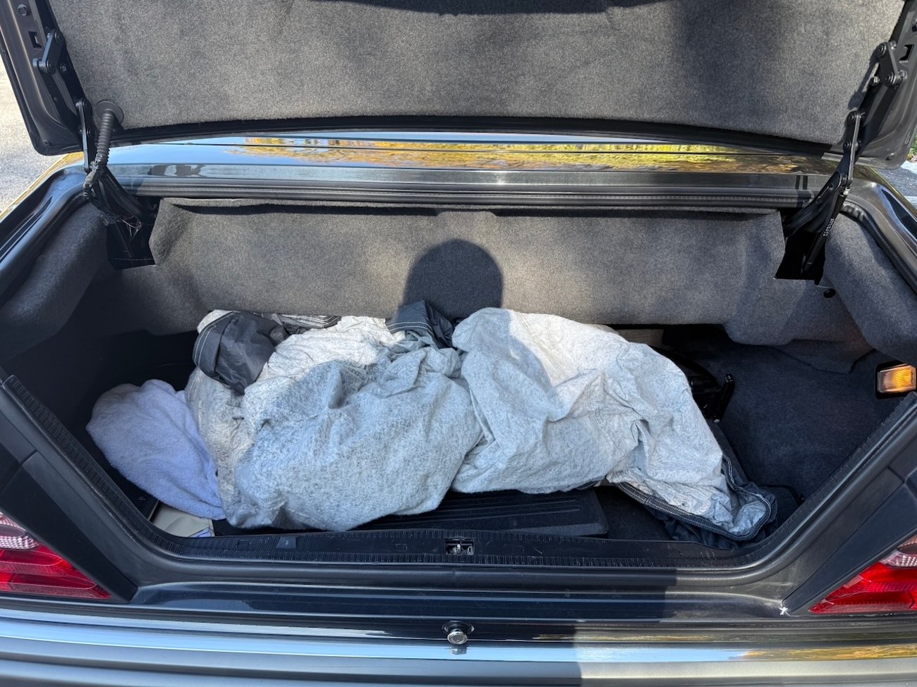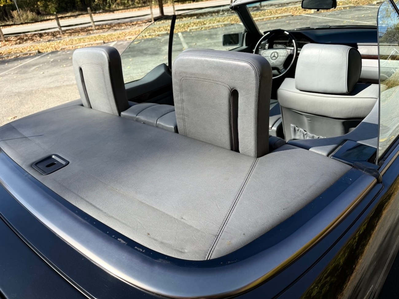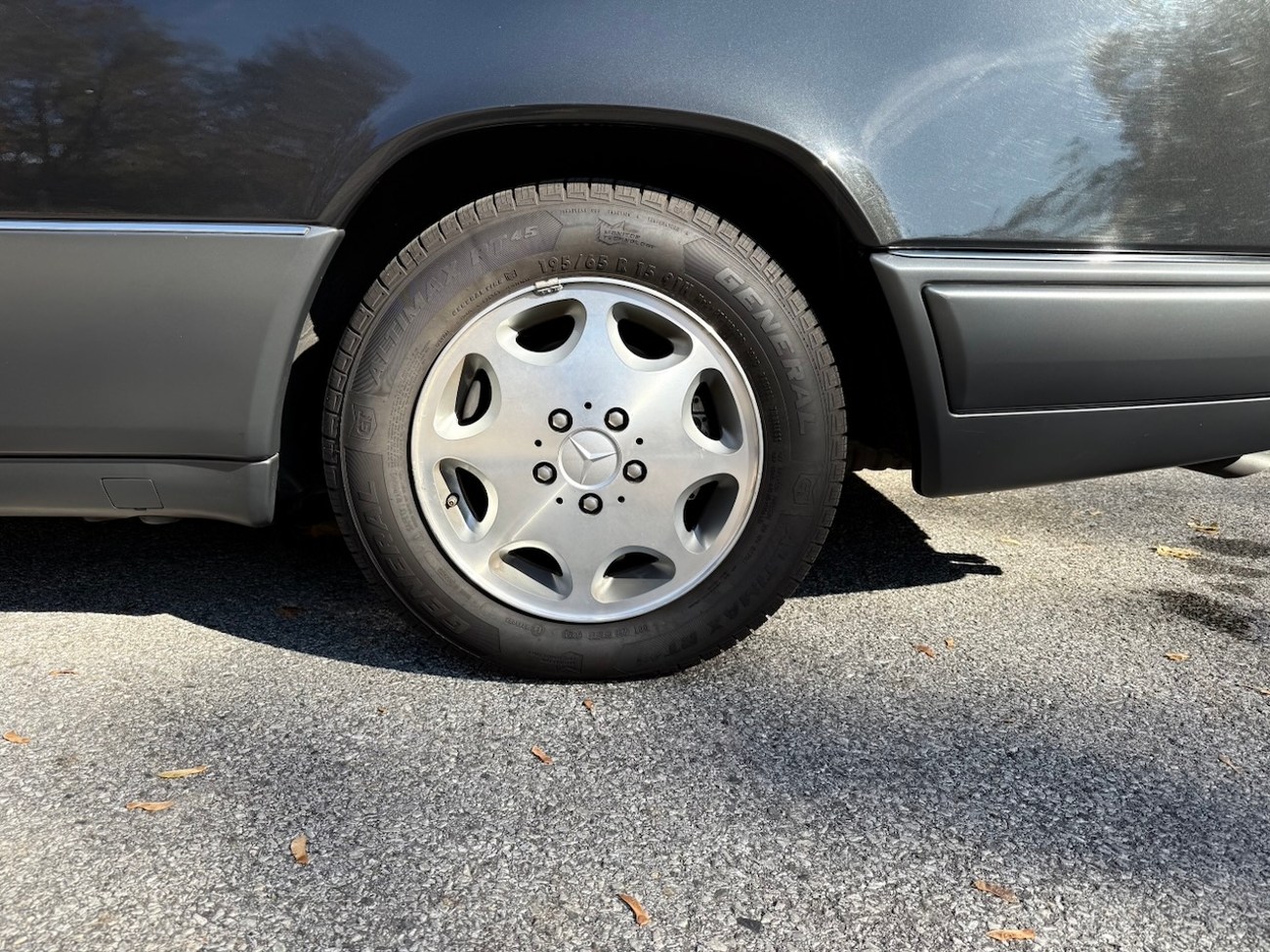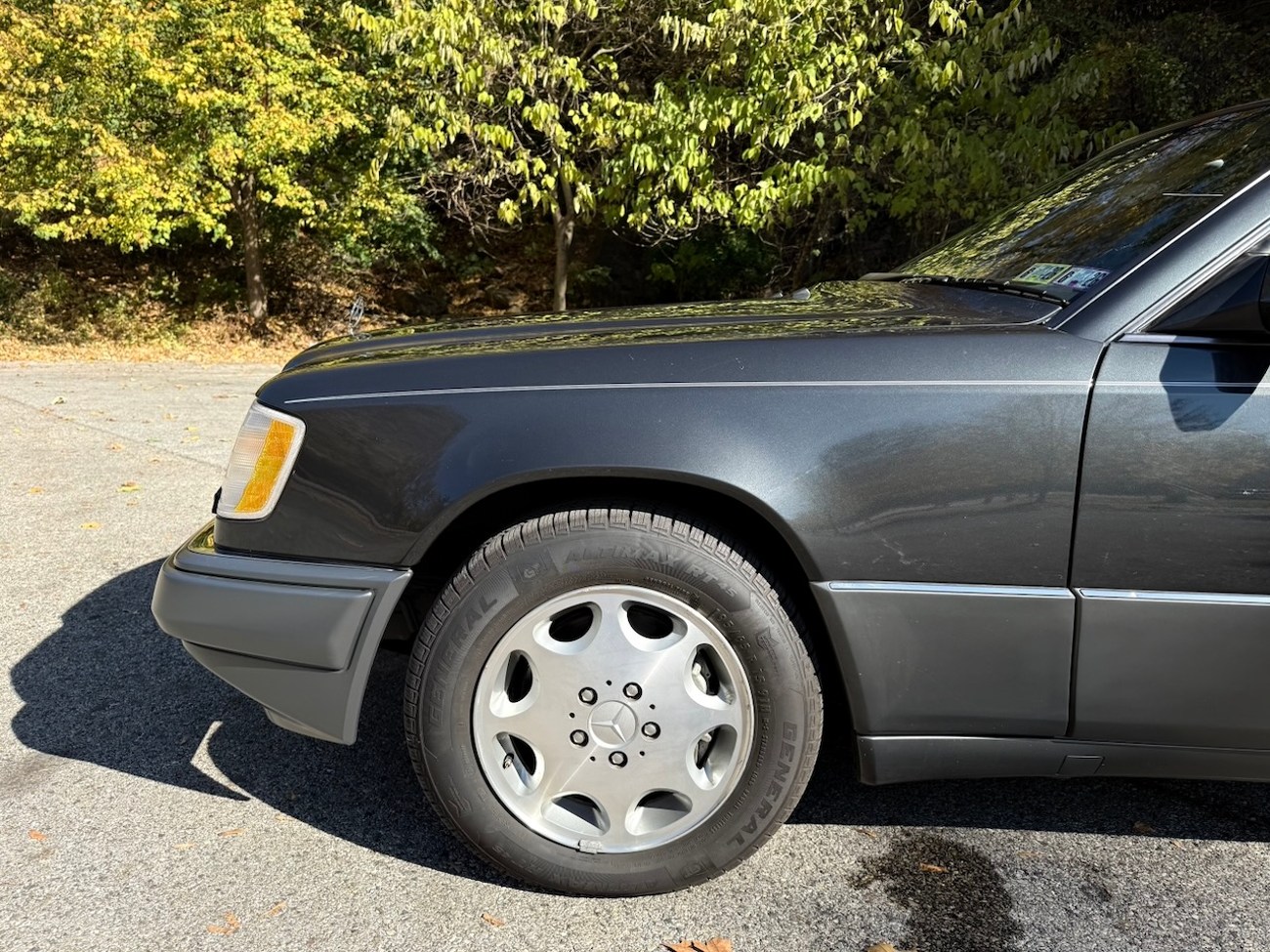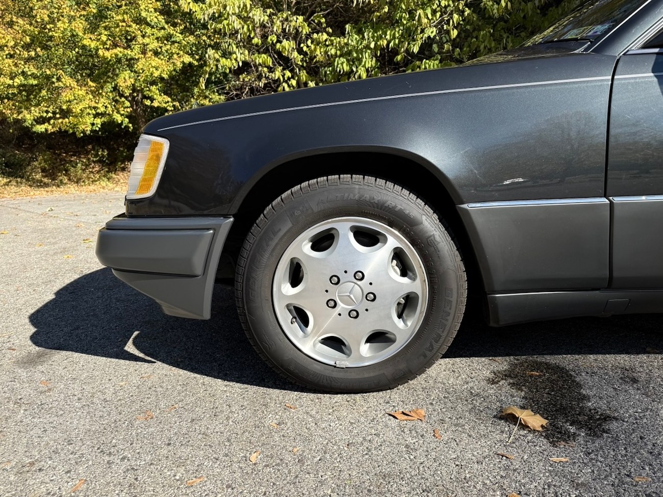 This 1995 Mercedes-Benz E320 Cabriolet was initially sold in Florida and shows subsequent registration in Illinois and Pennsylvania most recently. The current owner purchased the car in early 2025 and the odometer shows an original 75k miles. Finished in Black Pearl Metallic (199) over Gray Leather (268), power is provided by a 3.2-liter inline-six paired with a four-speed automatic transmission driving the rear wheels. Equipment includes heated and power-adjustable front seats with memory, a power-operated black soft top, power mirrors, cruise control, a driver and passenger airbag, central locking, and an aftermarket head unit. The included Carfax report shows 18 service records and no accident damage. Big service items are a new valve cover gasket, oil pressure sending unit, front brake pads and rotors, a new power antenna, a new coolant temp sensor, a new blower motor, and regular maintenance. This cabrio is offered for sale by the current owner in Pennsylvania with one key, factory literature, recent service records, a clean Carfax, and a clean PA title.