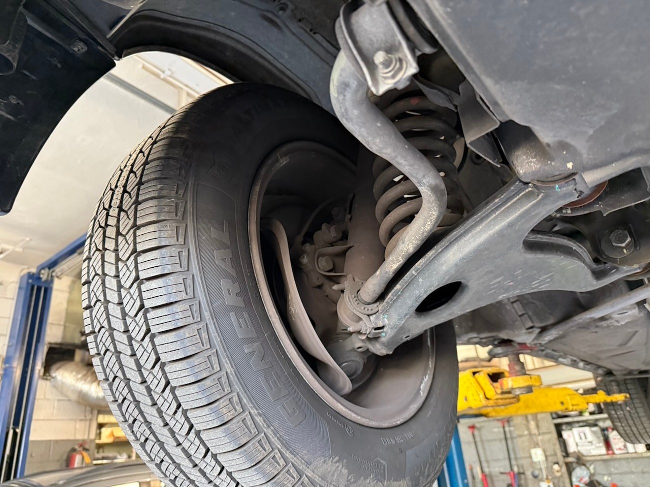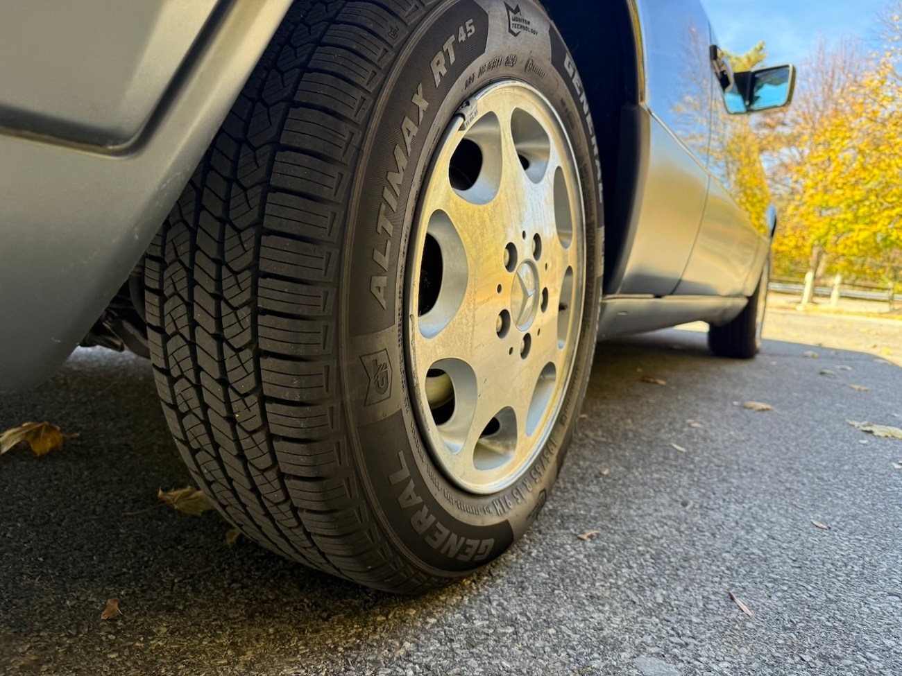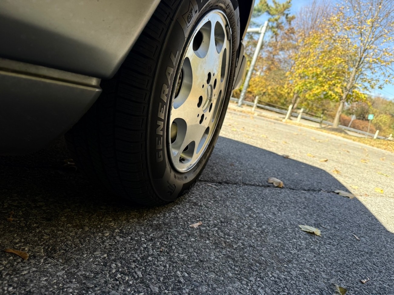 OEM machine-finish 8-hole wheels are mounted and wear General tires with 2024 date codes on all four corners. Some wheels show light curb rash. The A124 came standard with ABS. Underside photos have been provided in the gallery.