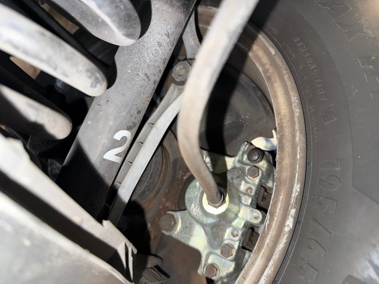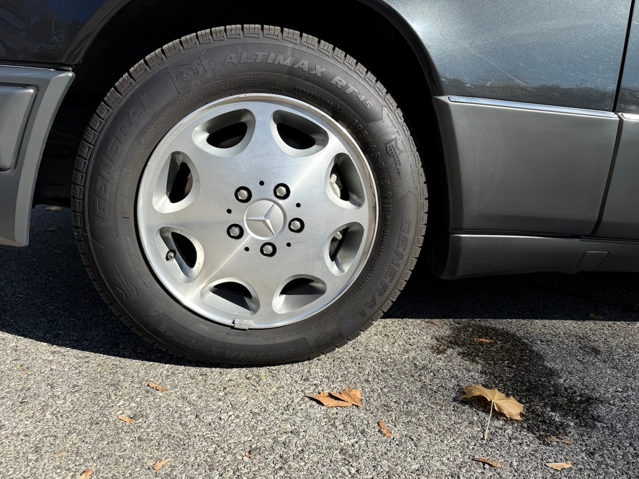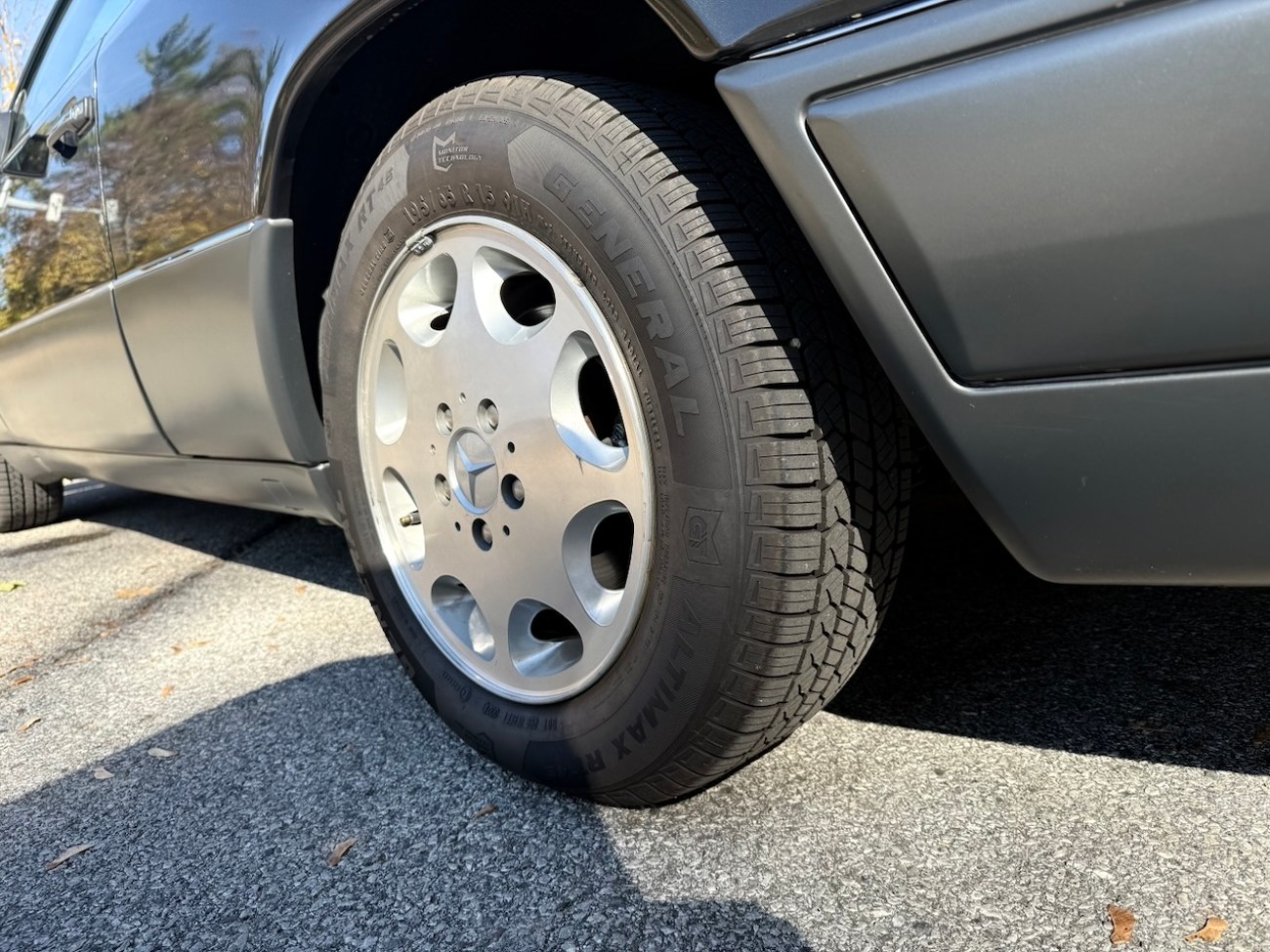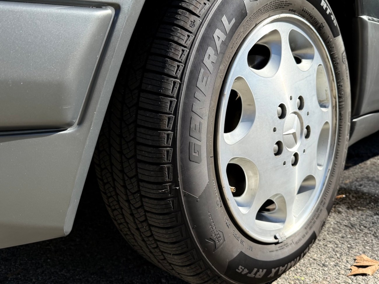 OEM machine-finish 8-hole wheels are mounted and wear General tires with 2024 date codes on all four corners. Some wheels show light curb rash. The A124 came standard with ABS. Underside photos have been provided in the gallery.
