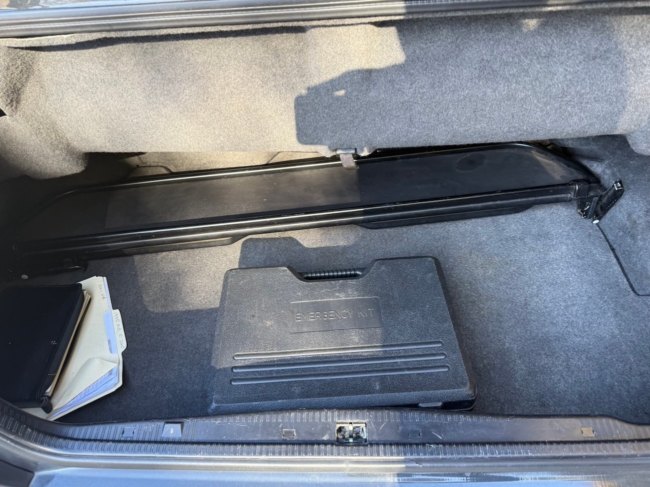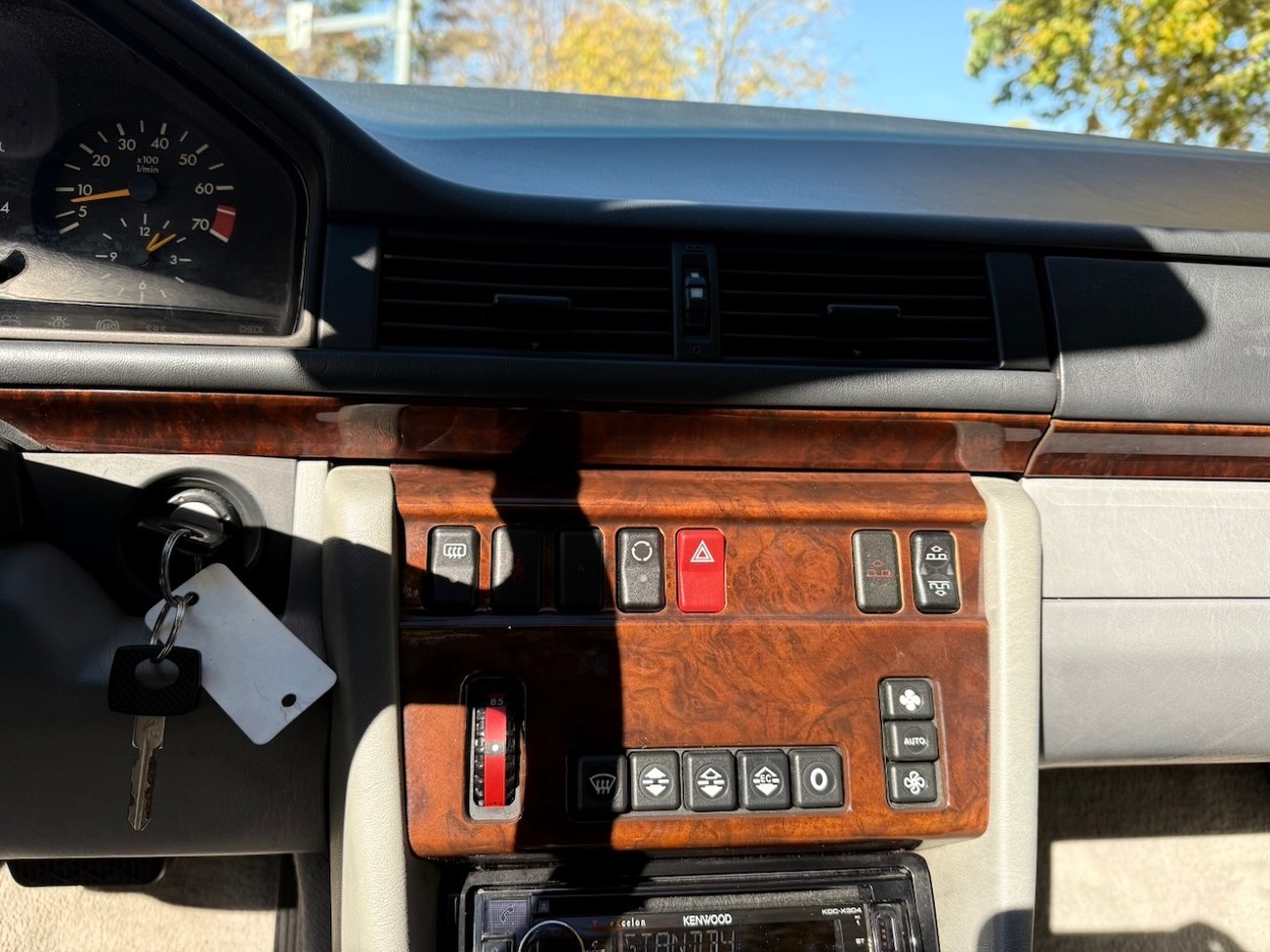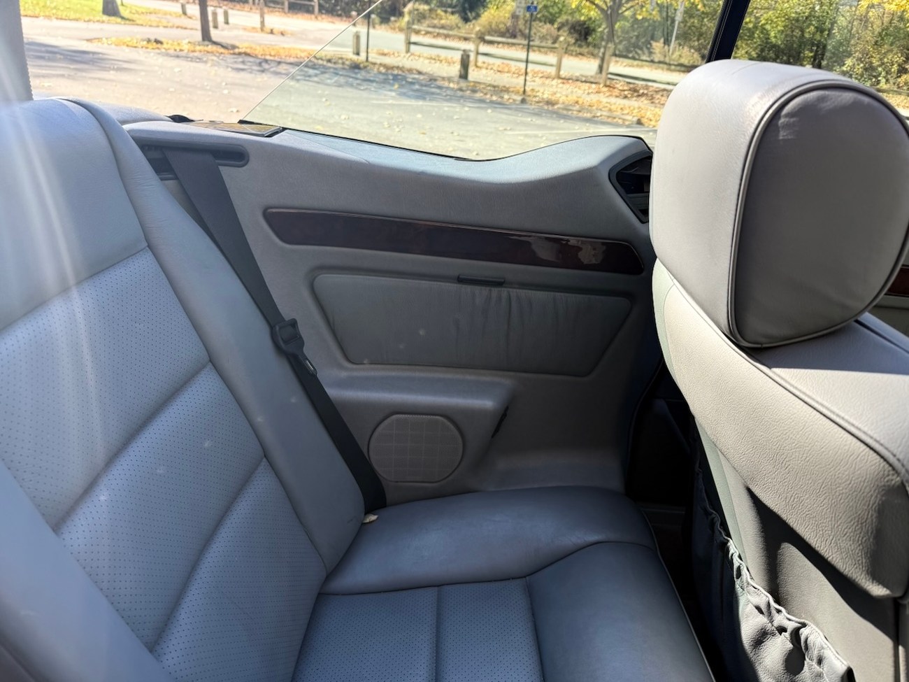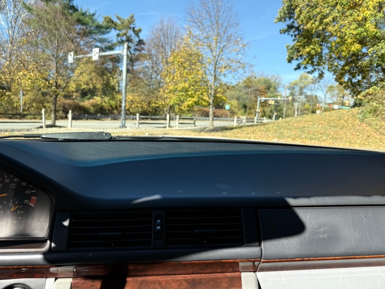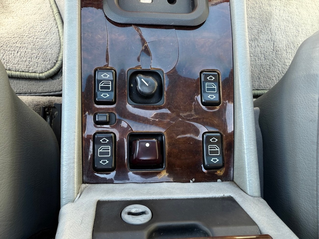 The cabin is upholstered in Gray Leather (268) and features matching carpets and Burl Walnut wood trim which lines the center console, dashboard and door panels. Both front seats are heated and power operated with memory and show some wear. Interior appointments include automatic climate control, functional cruise control, a passenger and driver airbag, automatic seat belt presenters, and an aftermarket head unit.